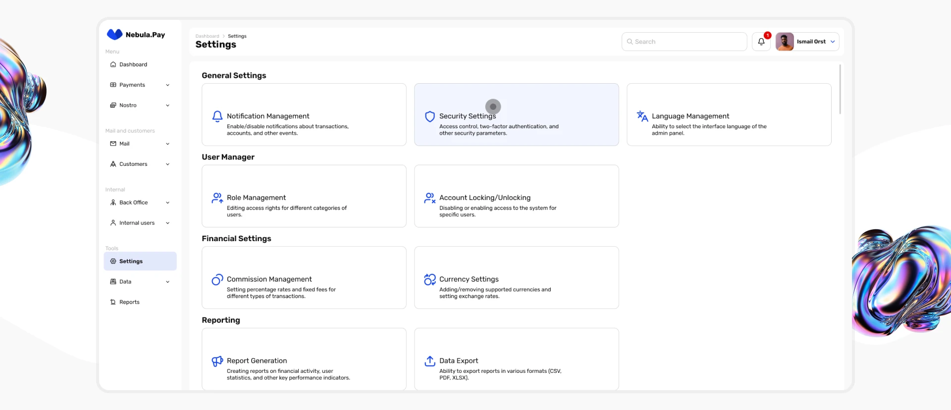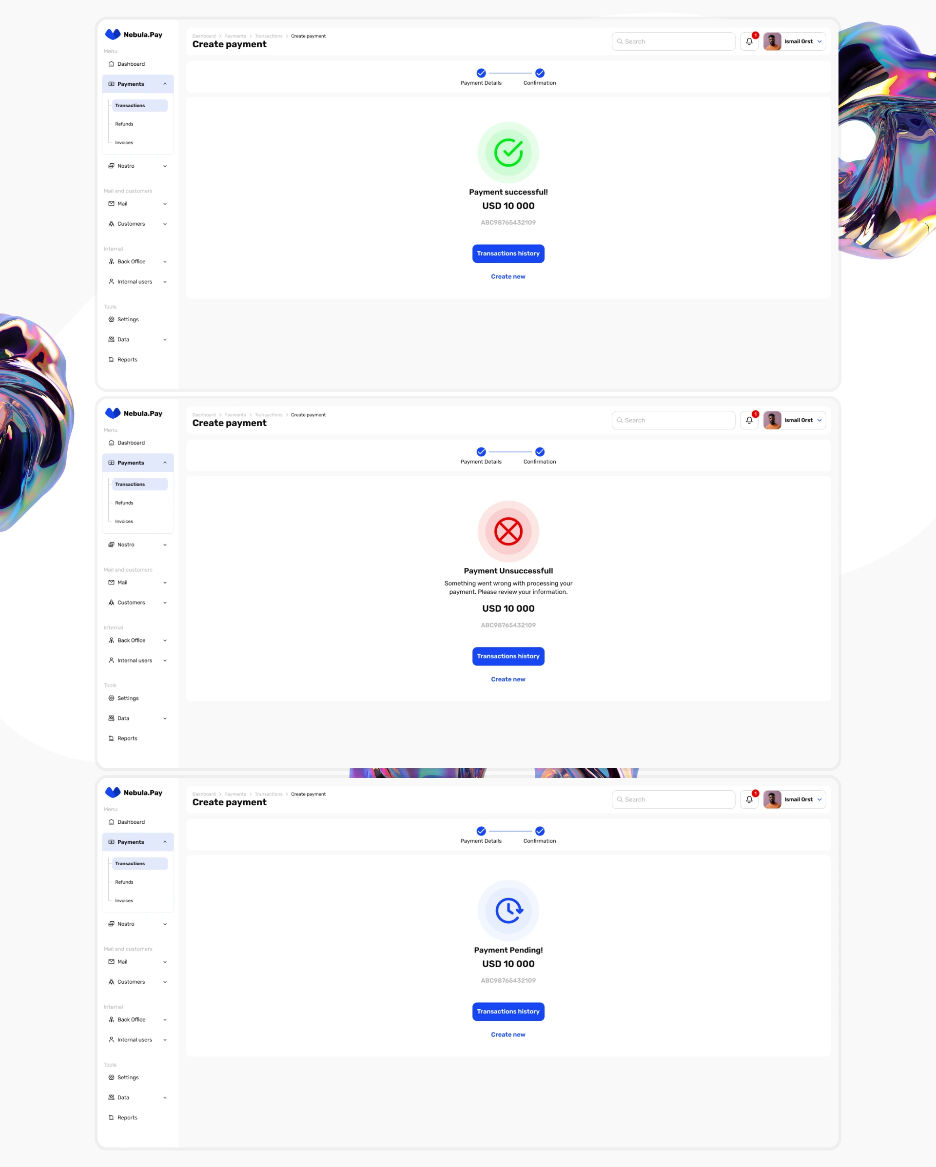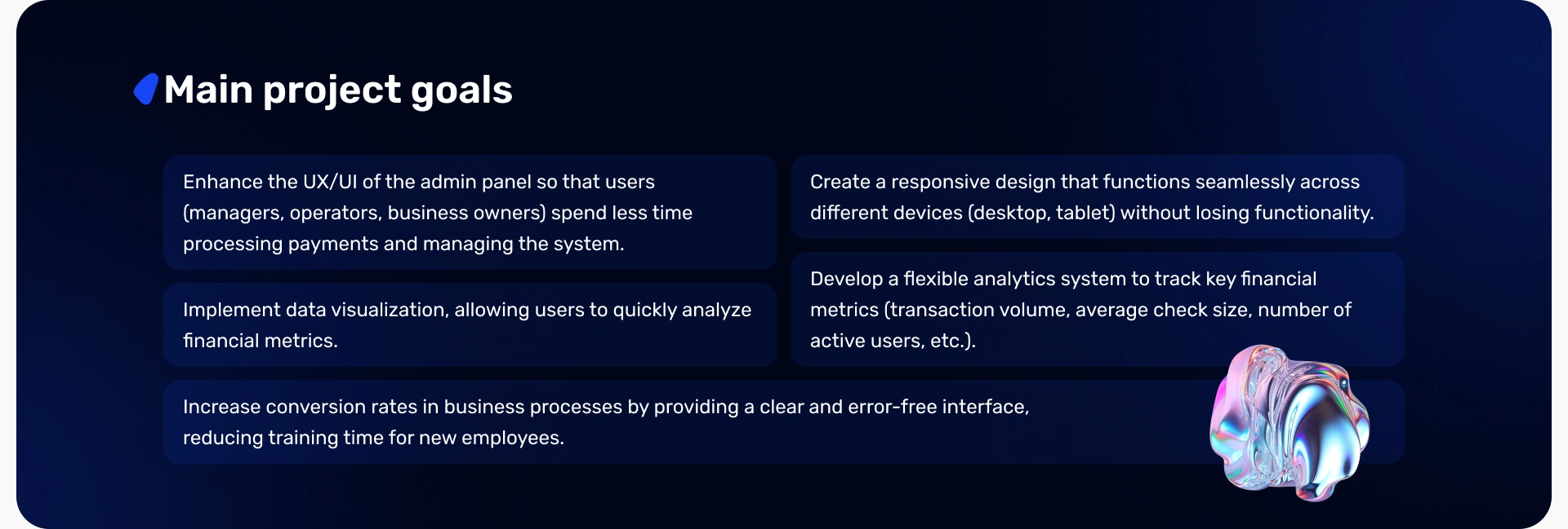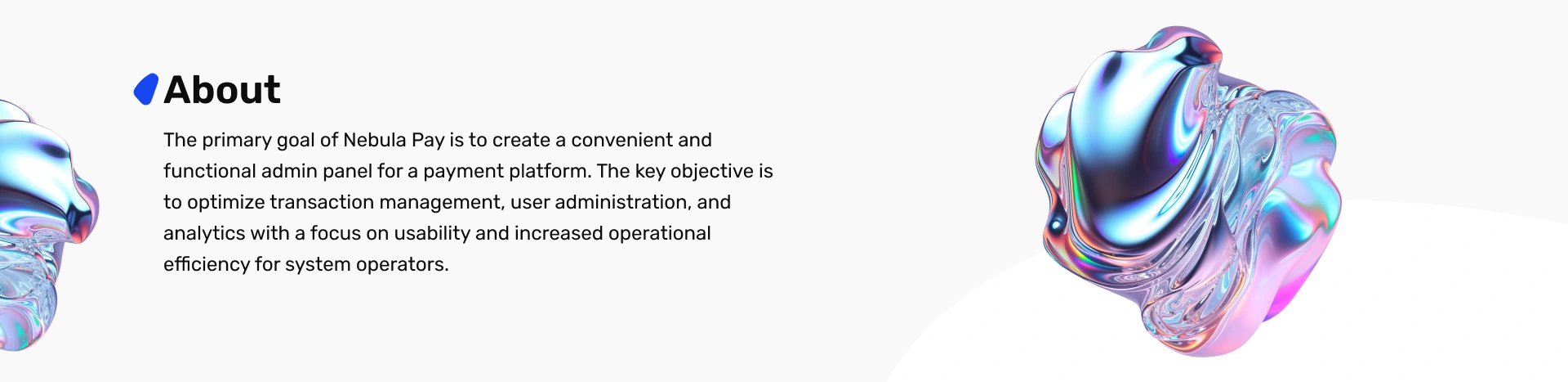 The primary goal of Nebula Pay is to create a convenient and functional admin panel for a payment platform.