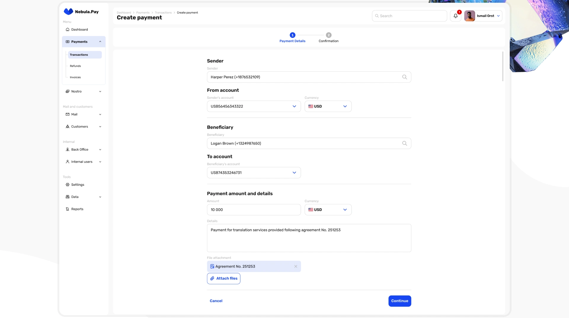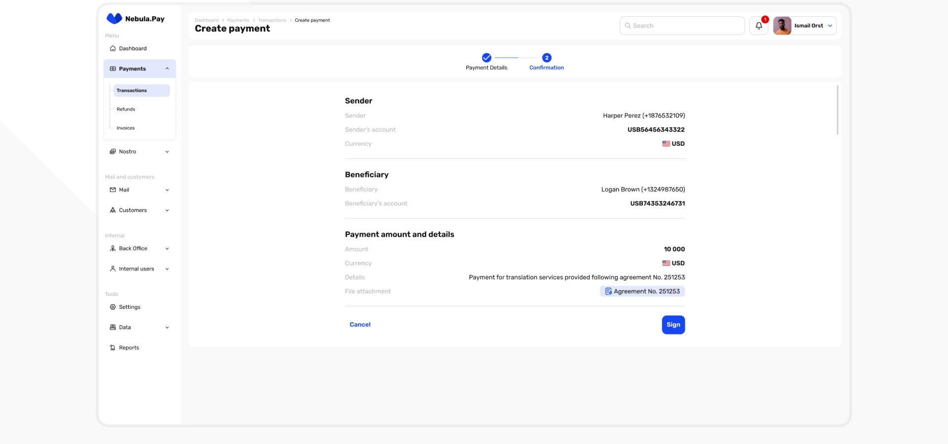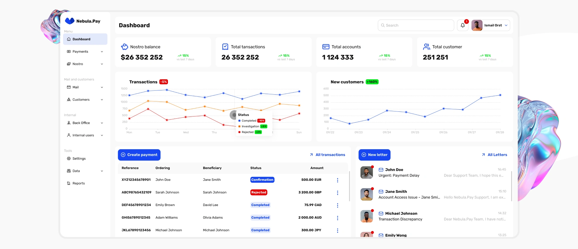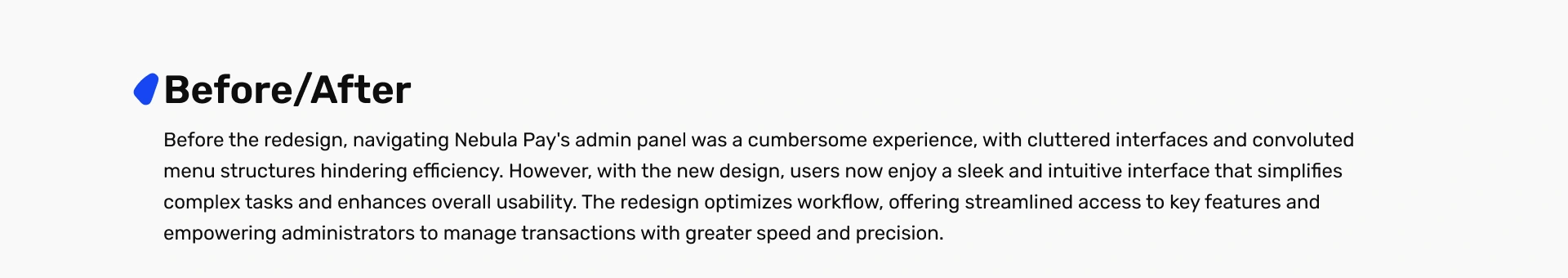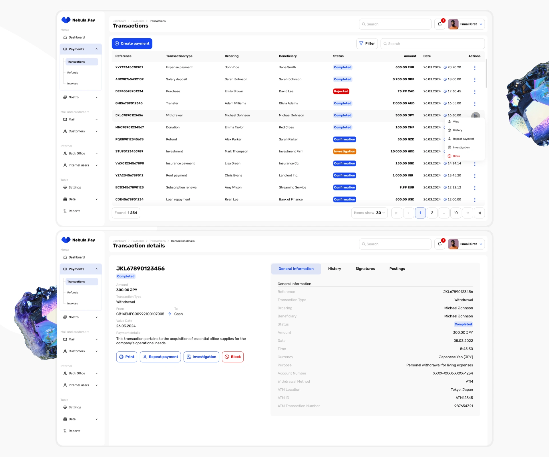 The primary goal of Nebula Pay is to create a convenient and functional admin panel for a payment platform.