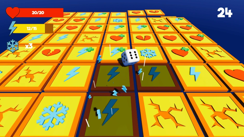 This game, made for the GMTK 2022 game jam with the theme "Roll of the Dice," involves rolling dice to activate tile effects multiplied by the rolled number. It proudly placed in the top 500 out of 3000 submissions.