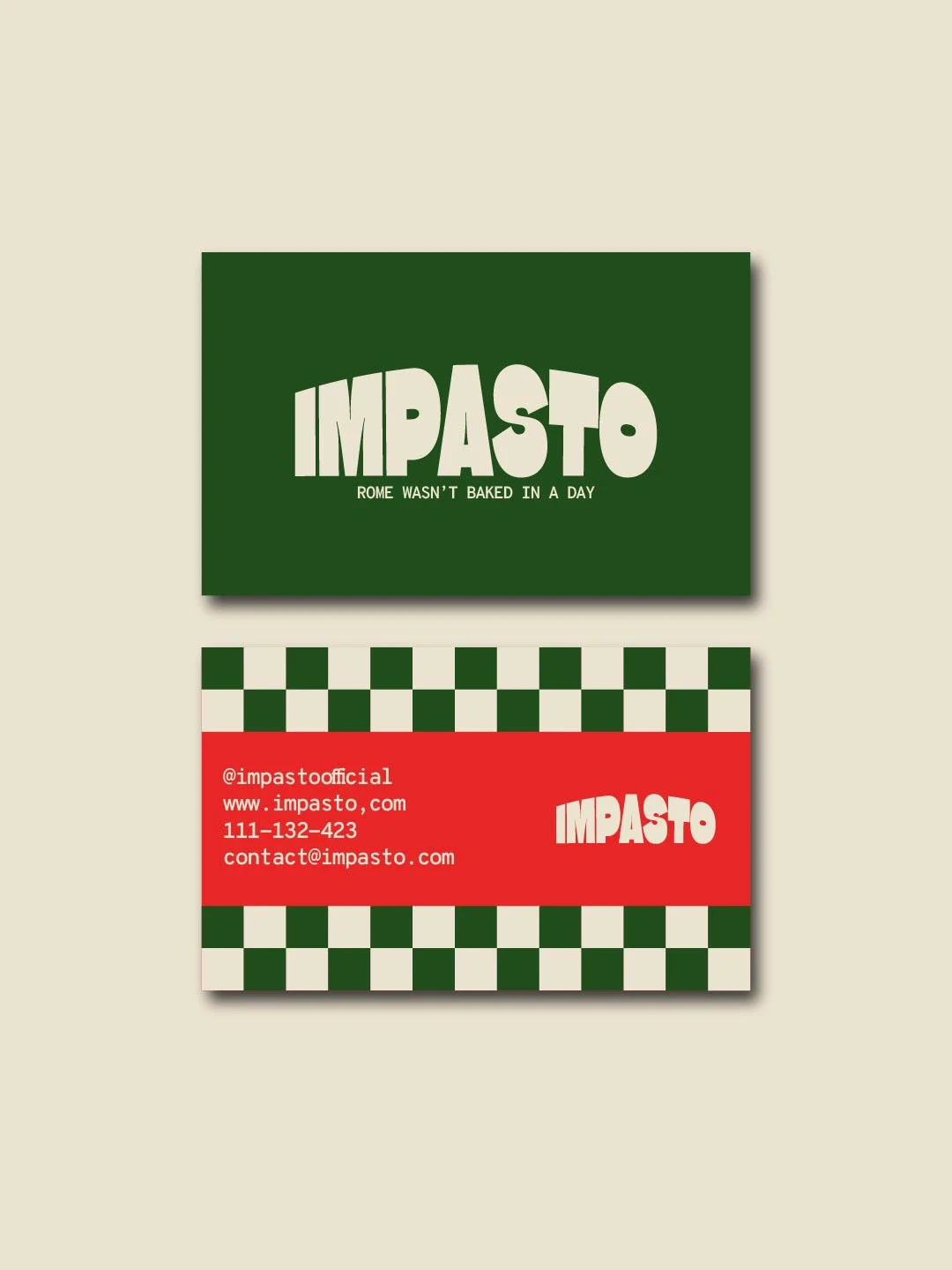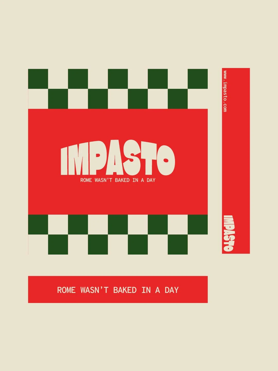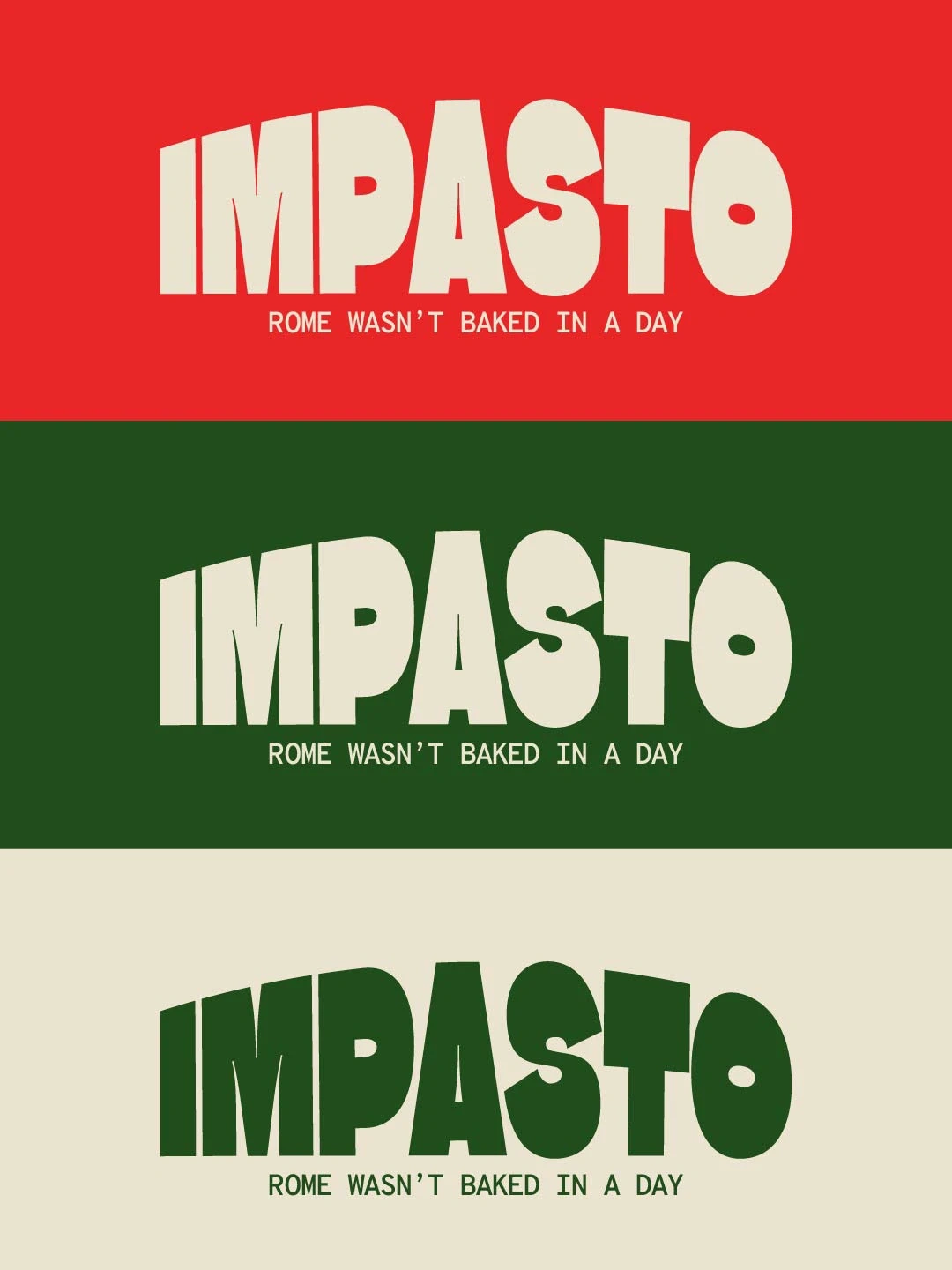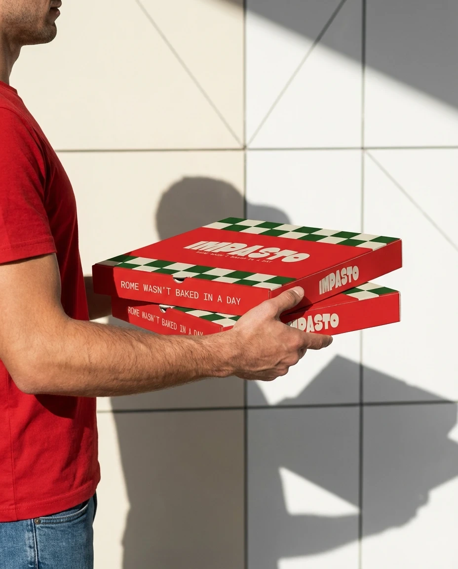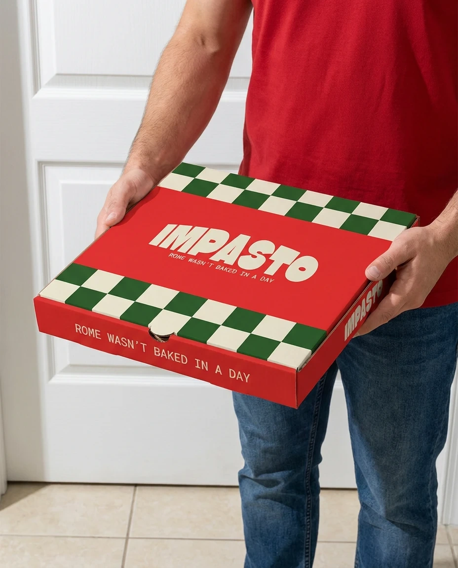 I designed a bold pizza brand for Impasto with strong typography, Italian inspired colours, and a modern identity built around craft, tradition, and warmth.