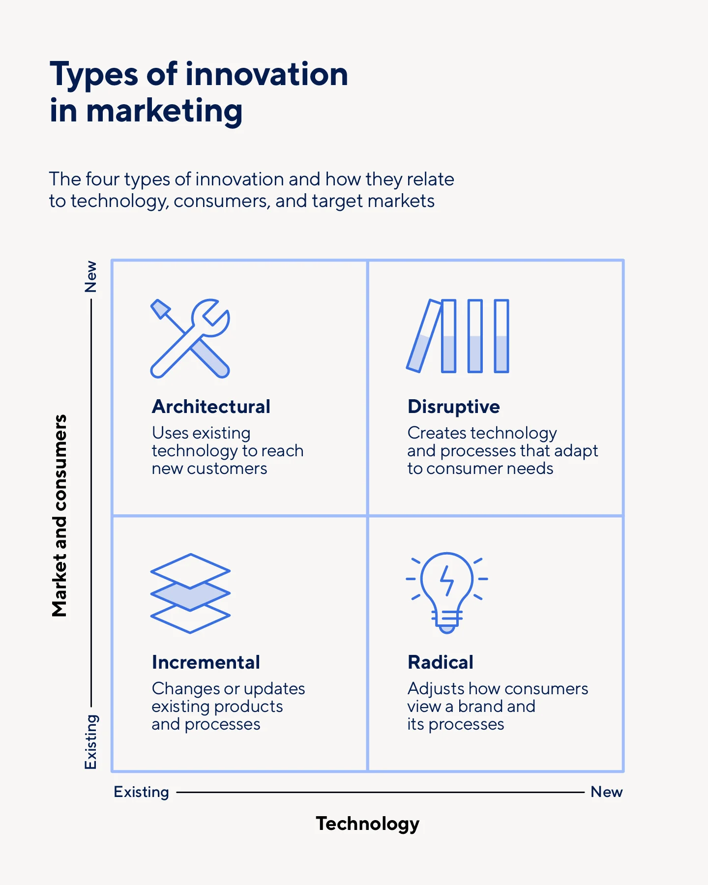 team’s creativity, there are several marketing innovation methods that will help you reach your goals. The top 10 methods are rebrand, retain, educate, expand, interact, host events, personalize, reprice, partner, and collaborate.