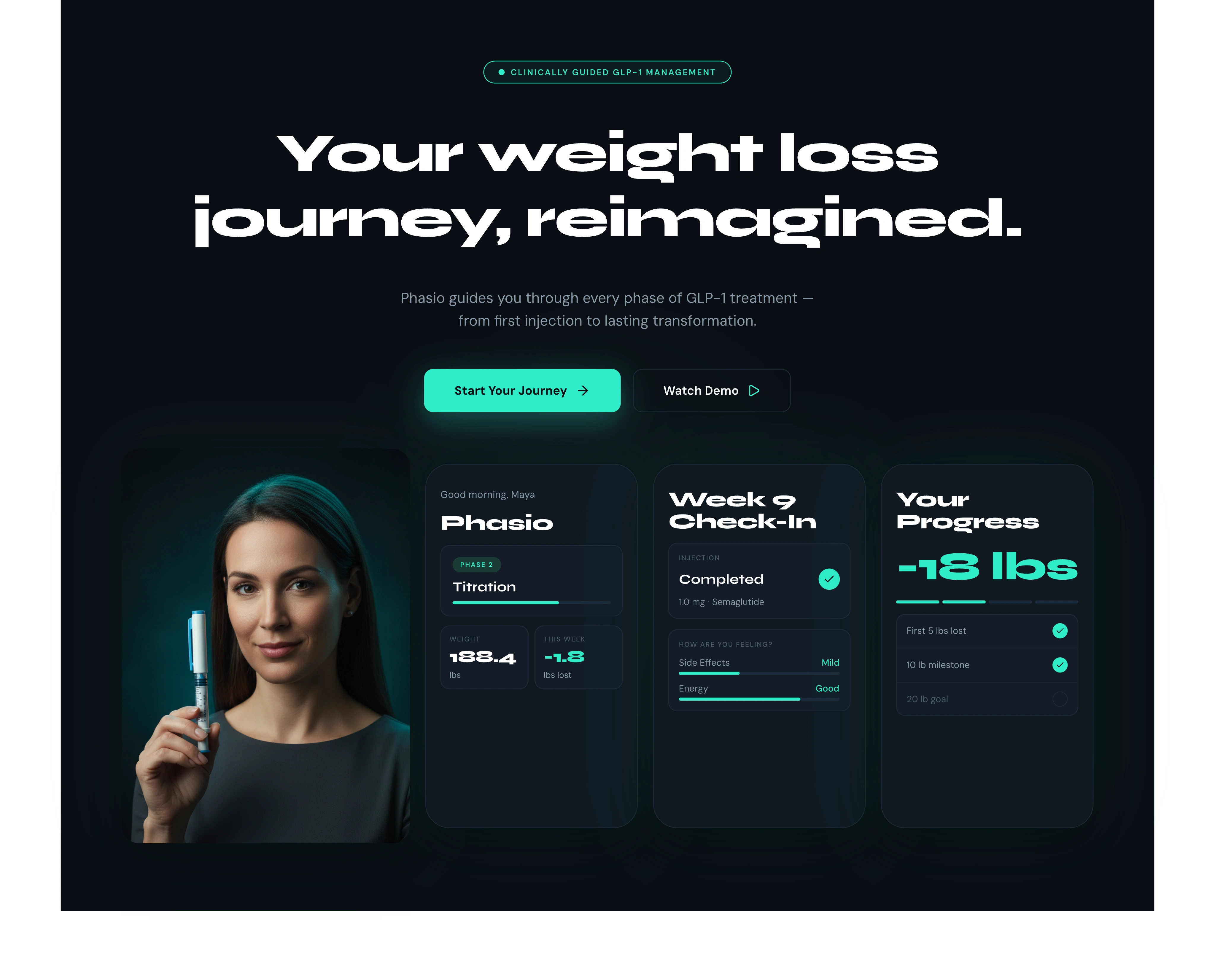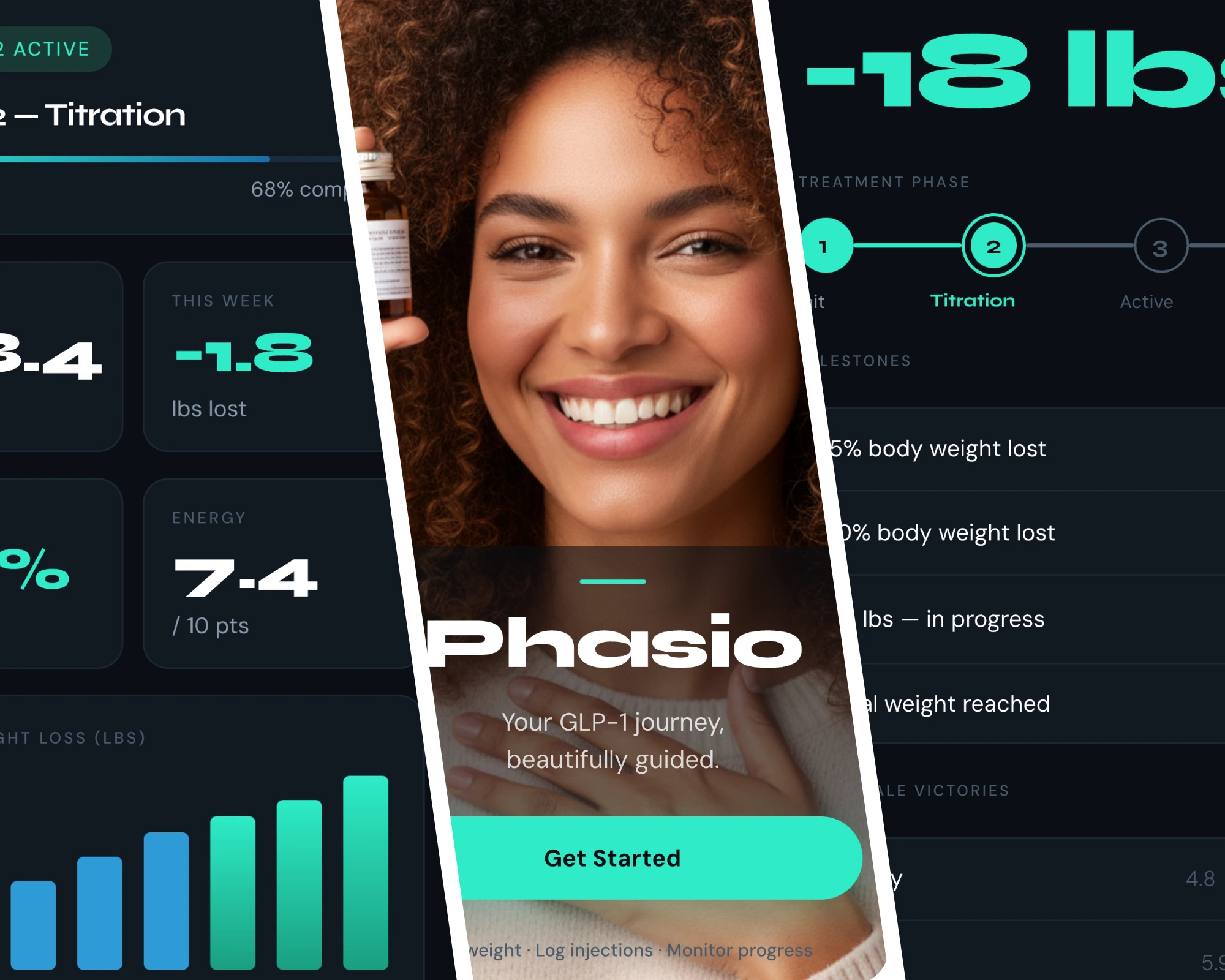 Phasio is a GLP-1 companion app built to support patients on Semaglutide and similar weight-loss medications. The founders came to us with a clear mission: build a brand and digital experience that felt clinical enough to earn trust, but human enough to make patients actually want to use it.