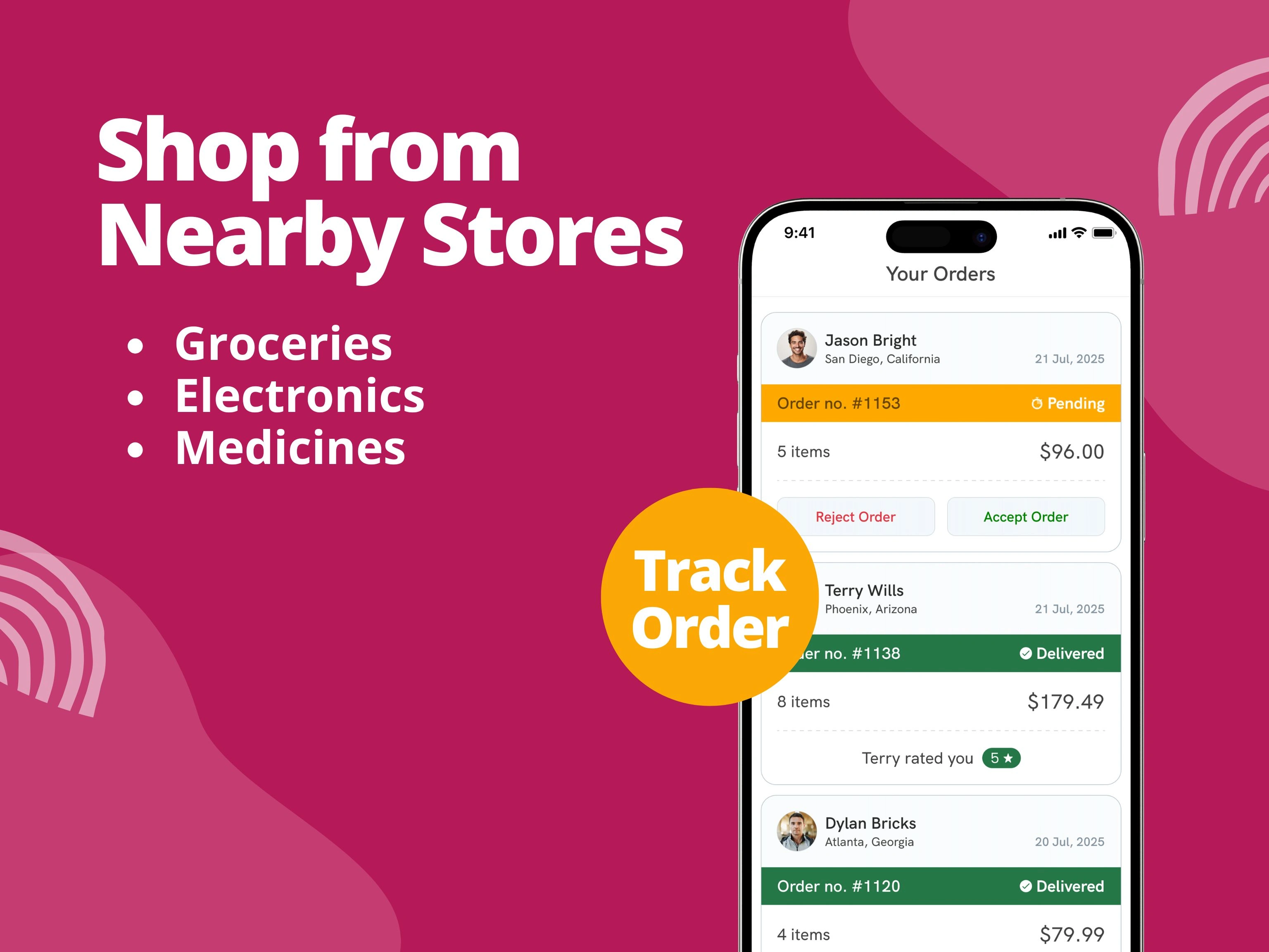 Browse nearby stores and add products from multiple vendors into one cart.