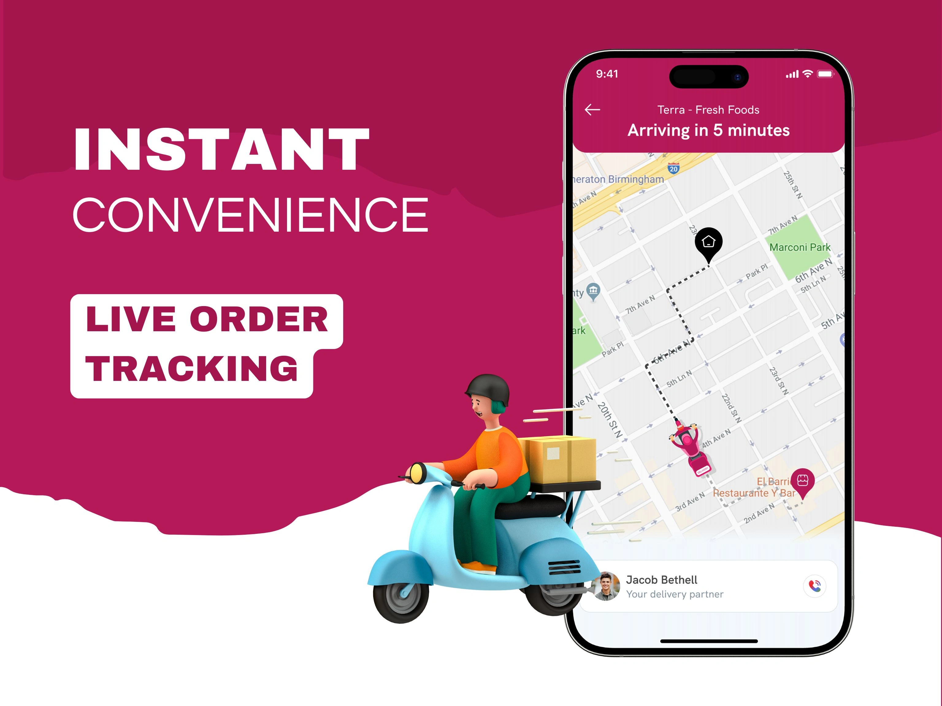 Real-Time Delivery Tracking: Live map view shows delivery partner’s location and ETA from pickup to drop-off.