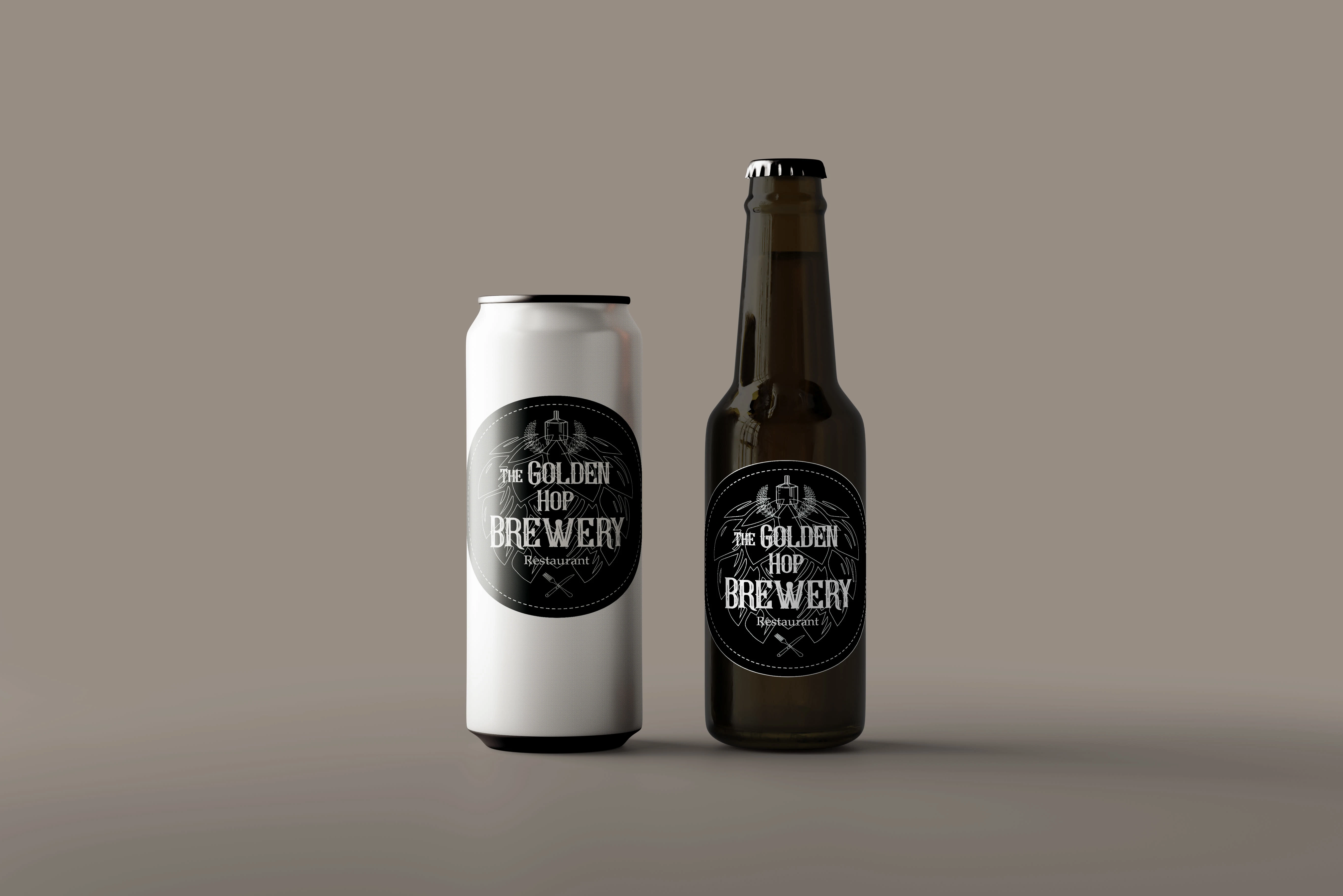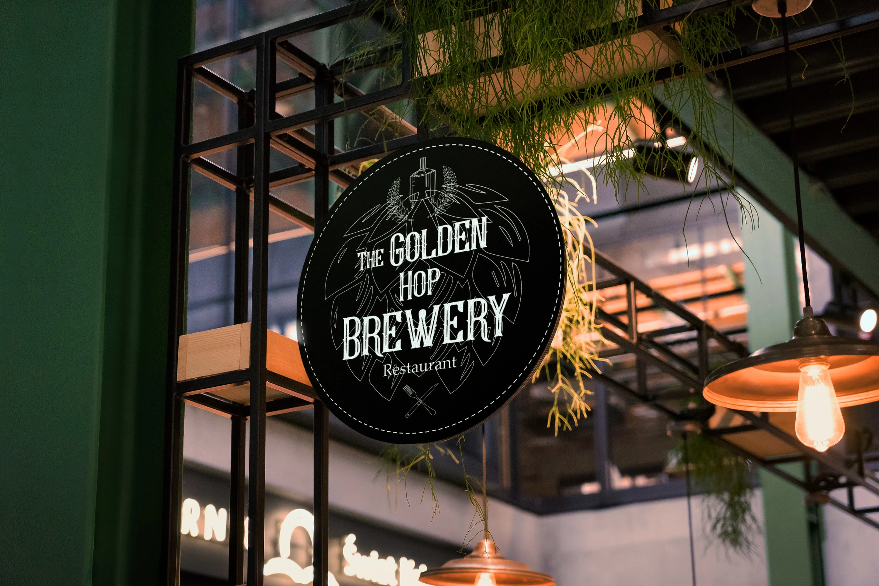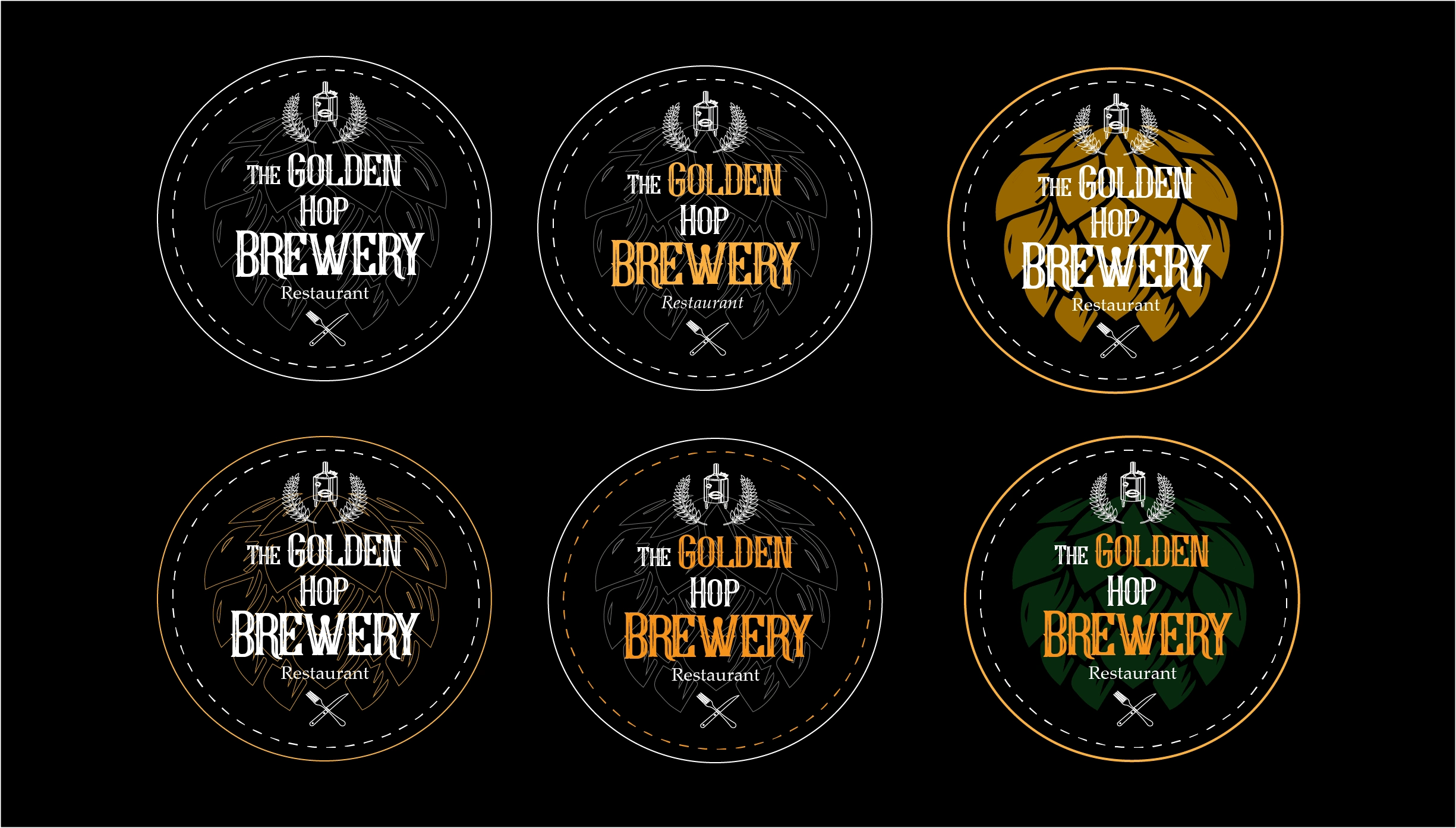 Logo for The Golden Hop Brewery. Very traditional in appearance with a warm, cozy atmosphere to have a drink, meet with friends, and enjoy community together.