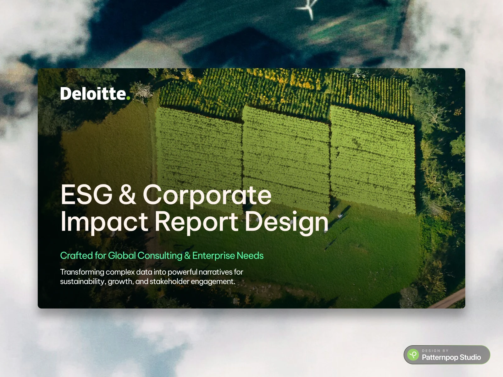 A corporate ESG and Impact Report crafted for a global consulting firm. This design blends clarity, credibility, and visual storytelling to translate complex data into powerful narratives for sustainability, stakeholder engagement, and regulatory compliance.