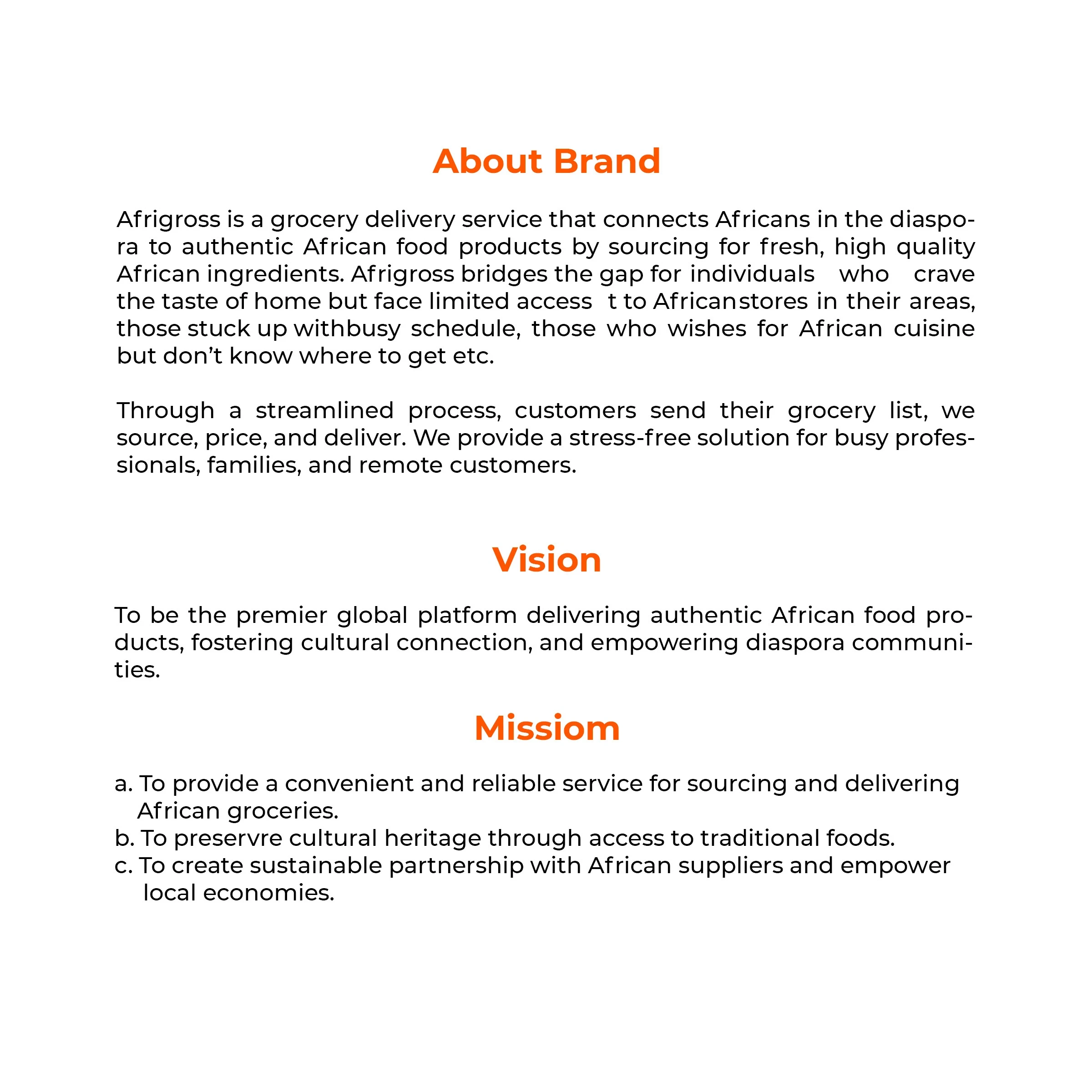 Afro gross is a grocery deliver company that delivers native African food items to Africans in diaspora.