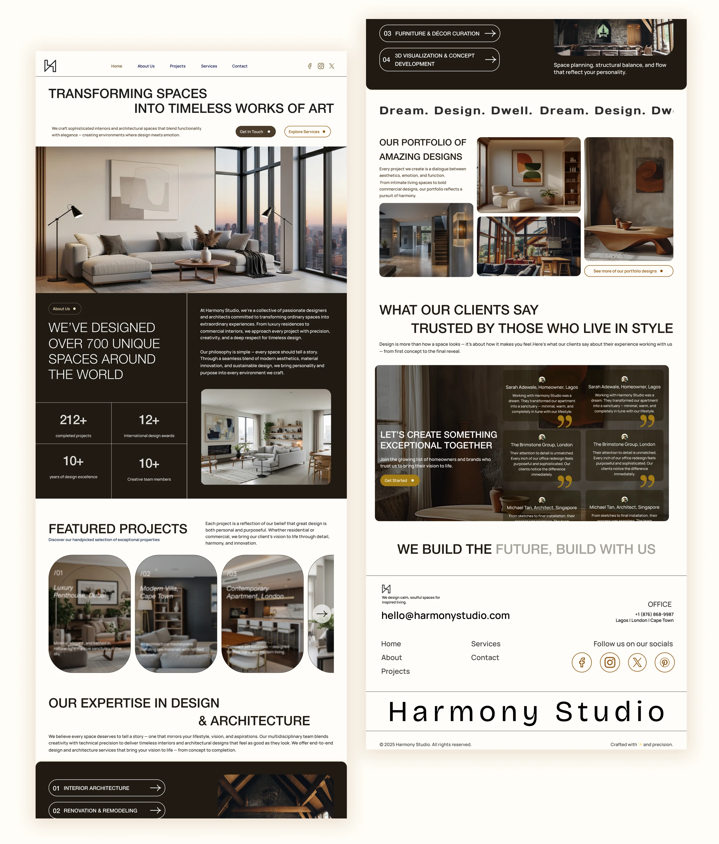 This is a high-end, visual-forward portfolio website designed for an interior design and architecture studio acting as a luxury digital showroom