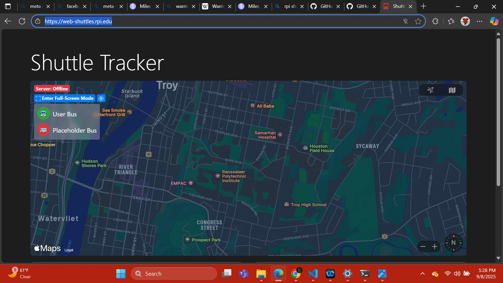 Helped create a web and mobile app to help students track the shuttles around campus. Uses crowd sourced data for location tracking.