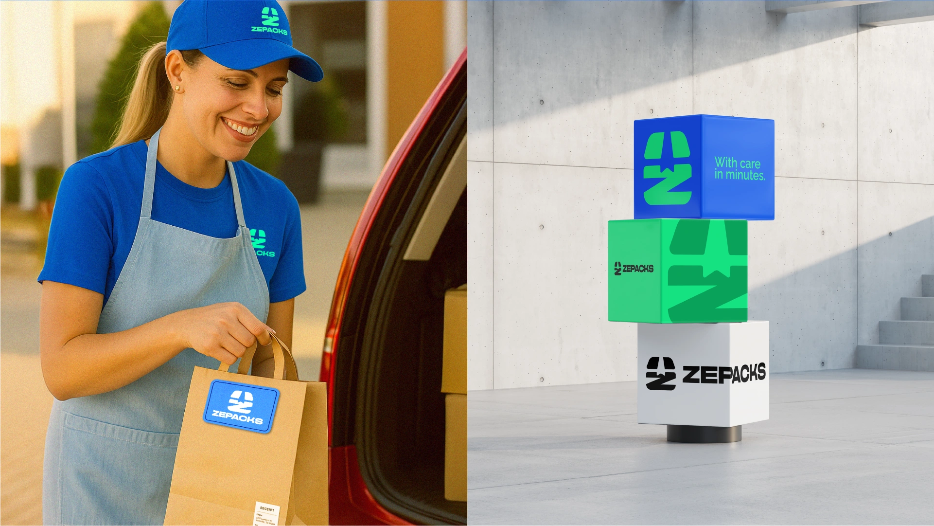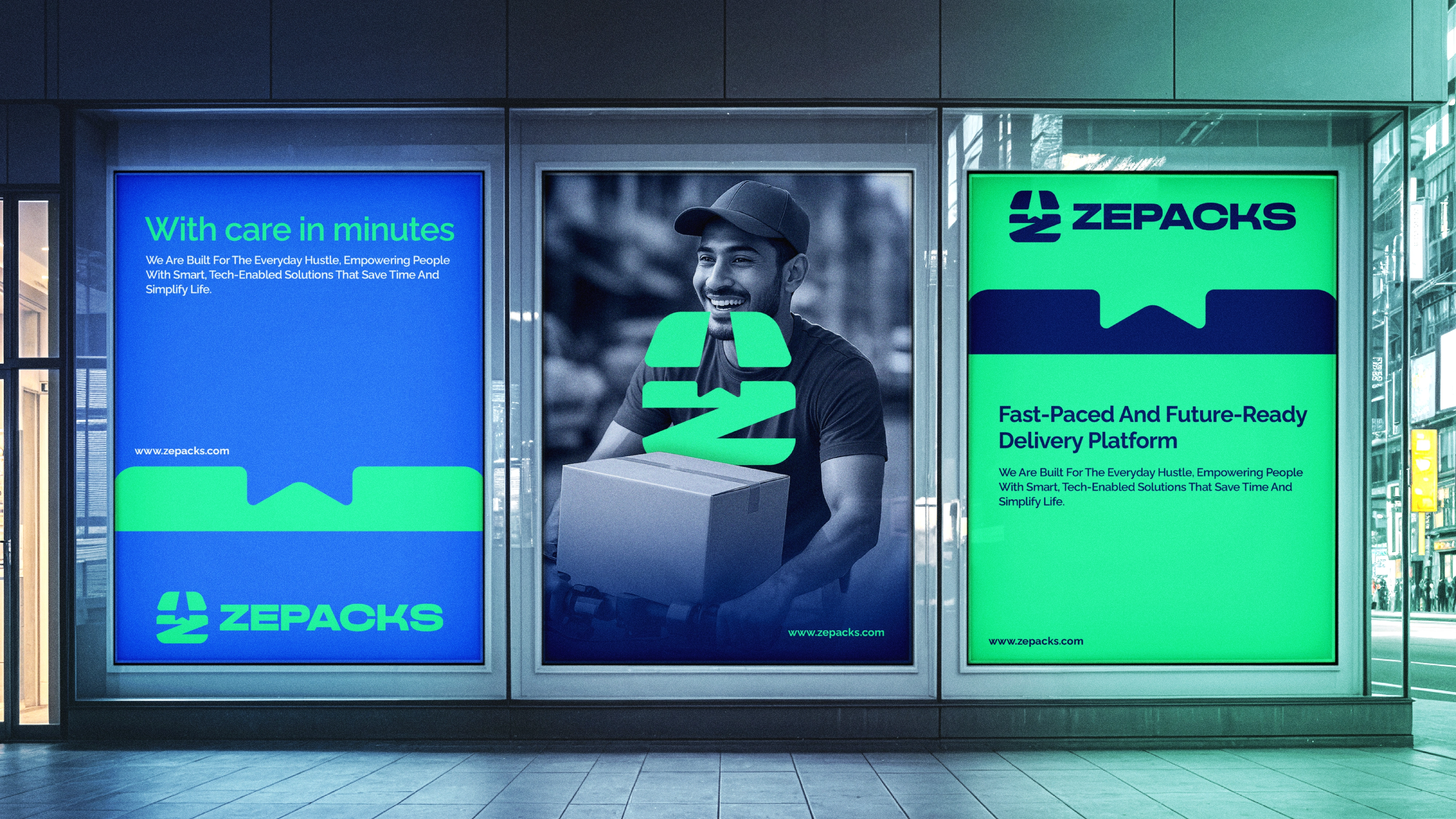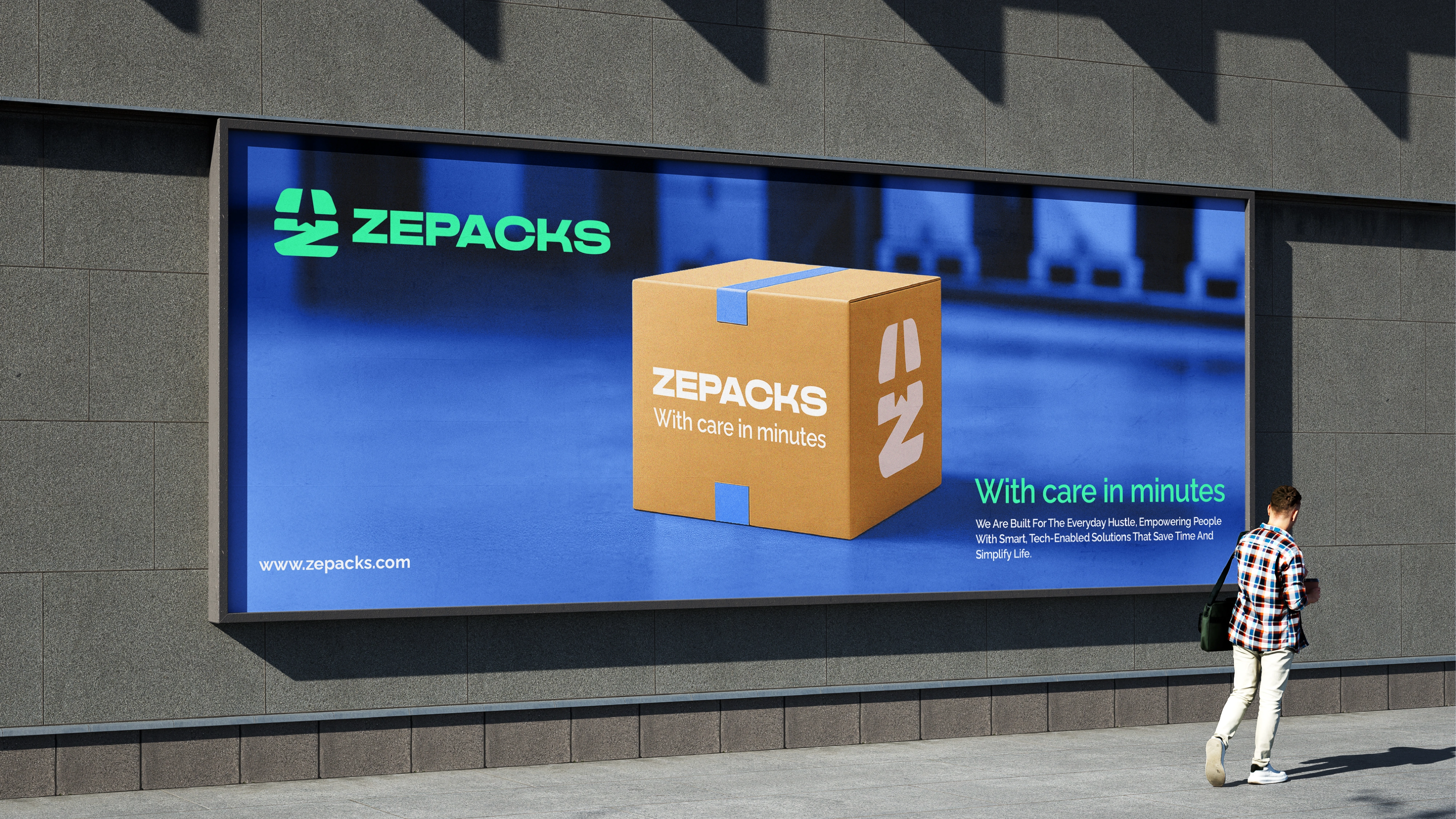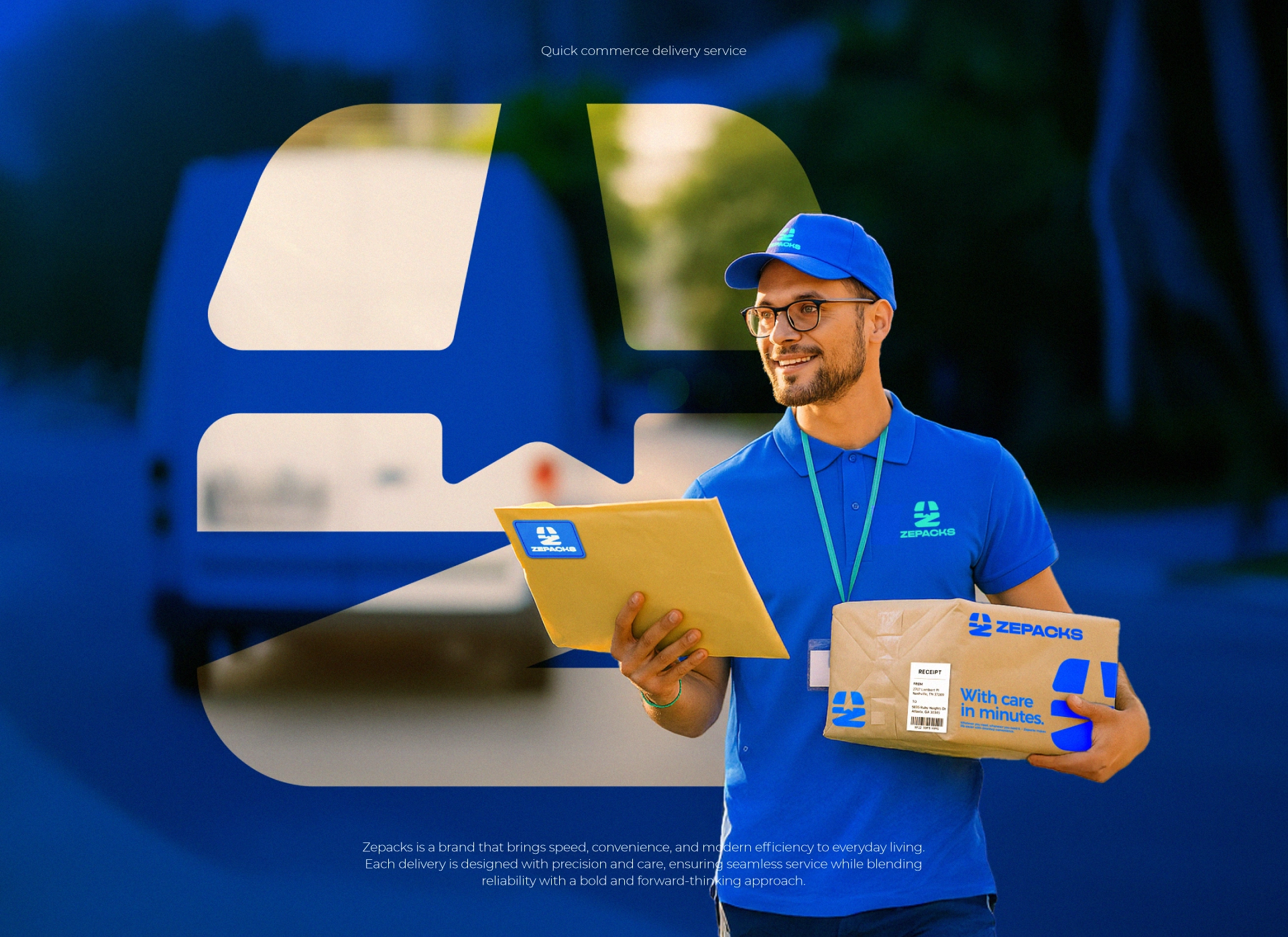 The design draws inspiration from the symbolism of motion and connectivity — a representation of how Zepacks bridges the gap between needs and instant fulfillment. The bold interplay of form and precision in the logo reflects agility, reliability, and innovation, all housed within a clean, modern grid system. Every curve and line has been intentionally designed to convey our promise of delivering not just parcels, but peace of mind.