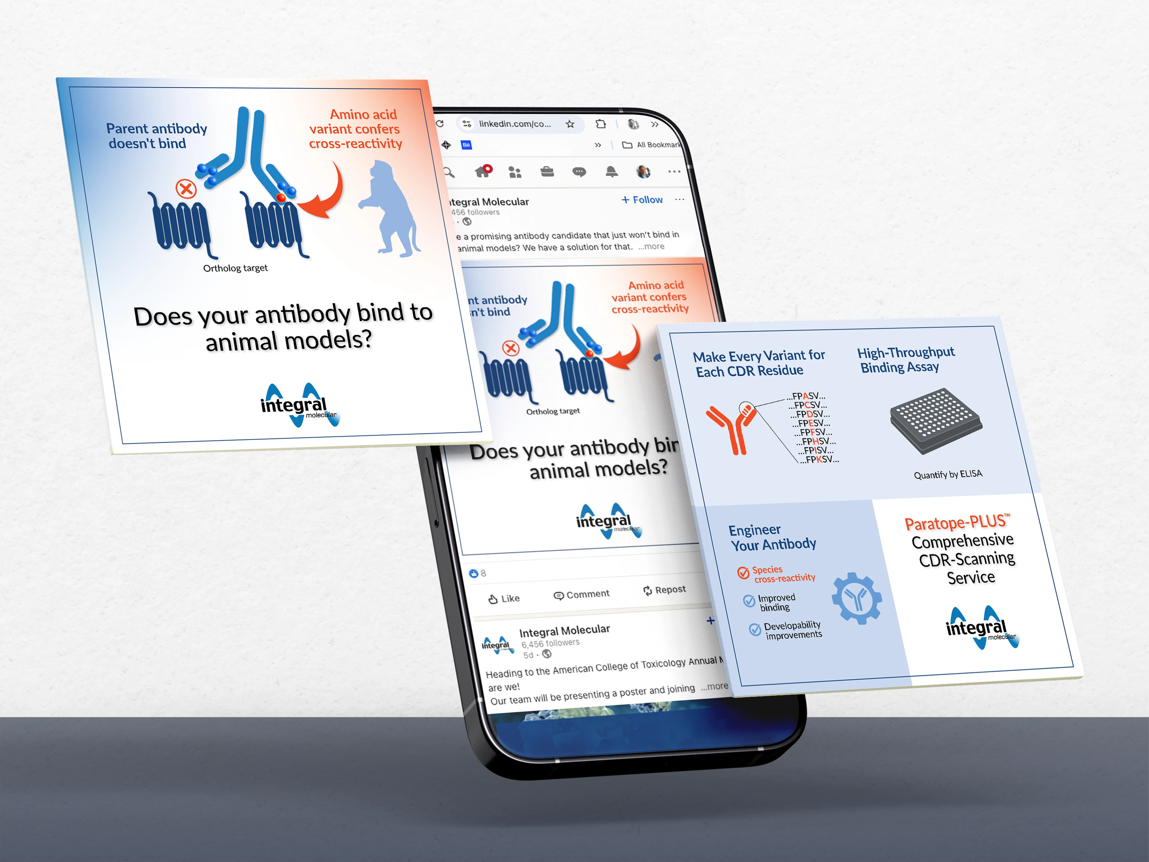 Created a LinkedIn carousel for Integral Molecular’s Paratope-PLUS™ service, transforming complex antibody science into an accessible, engaging visual story. Collaborated closely with the client to interpret feedback and reorganize content for maximum clarity and impact. Balanced, clear hierarchy, technical accuracy, and client branding to support outreach to research professionals and scientists.