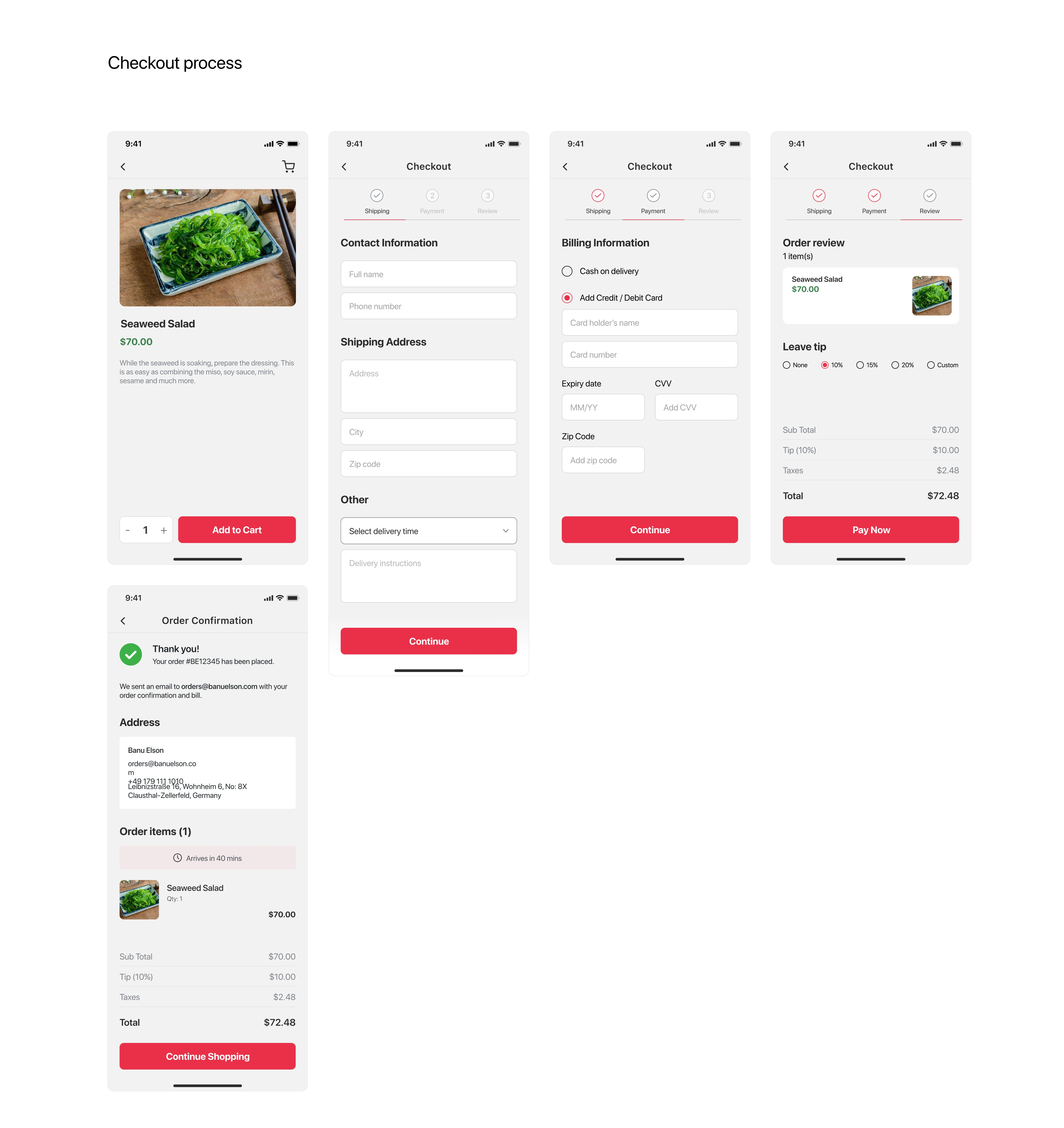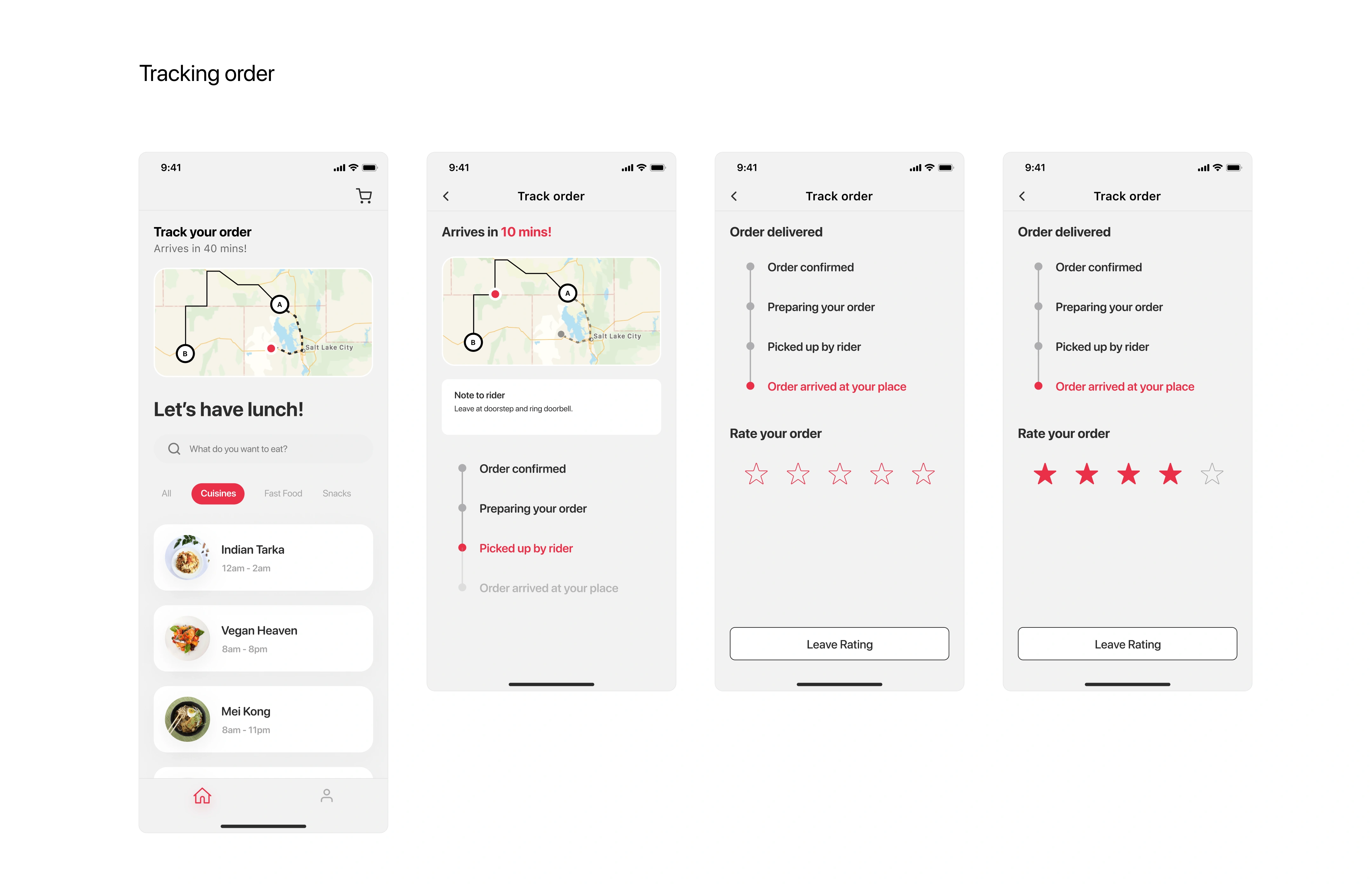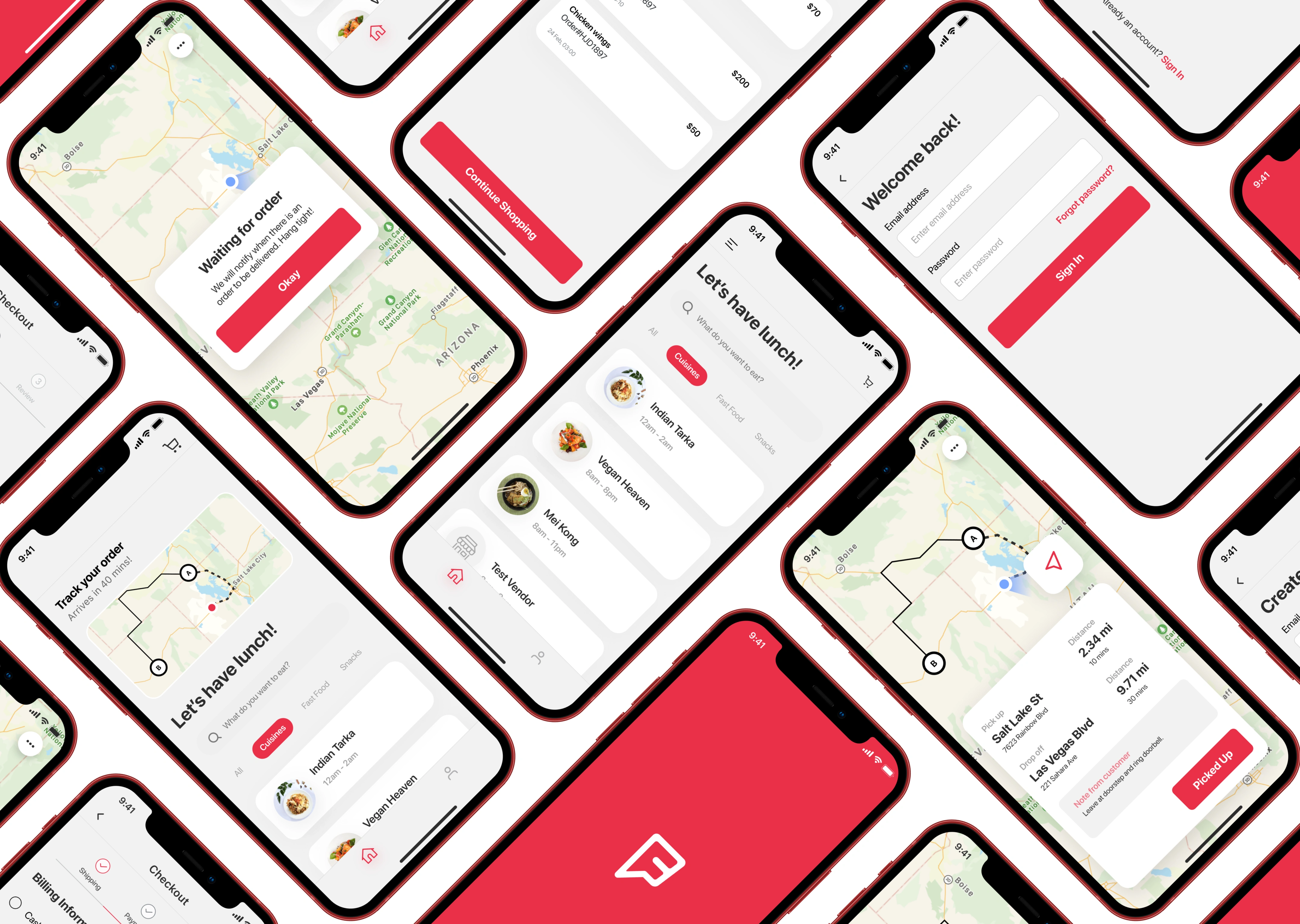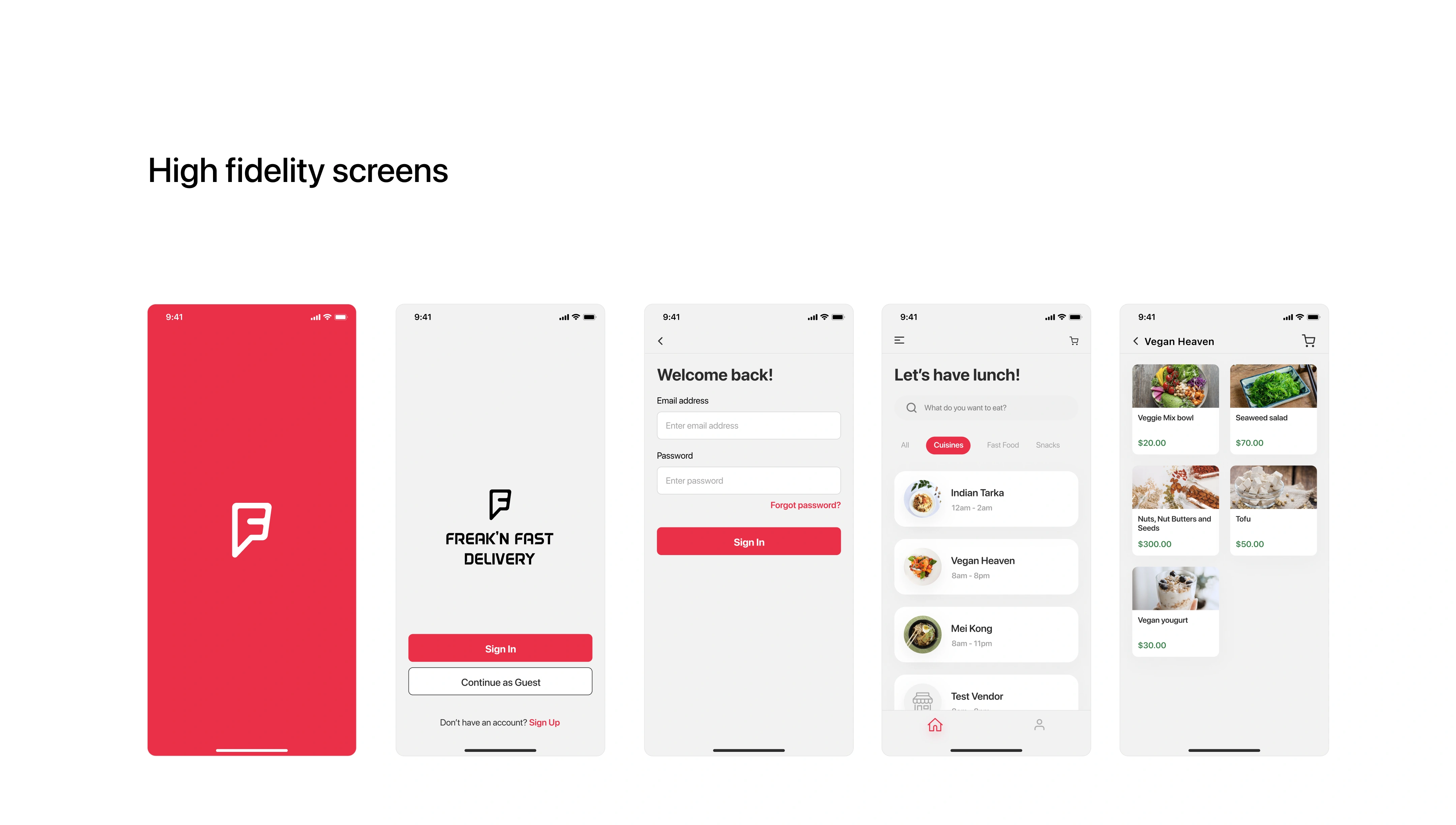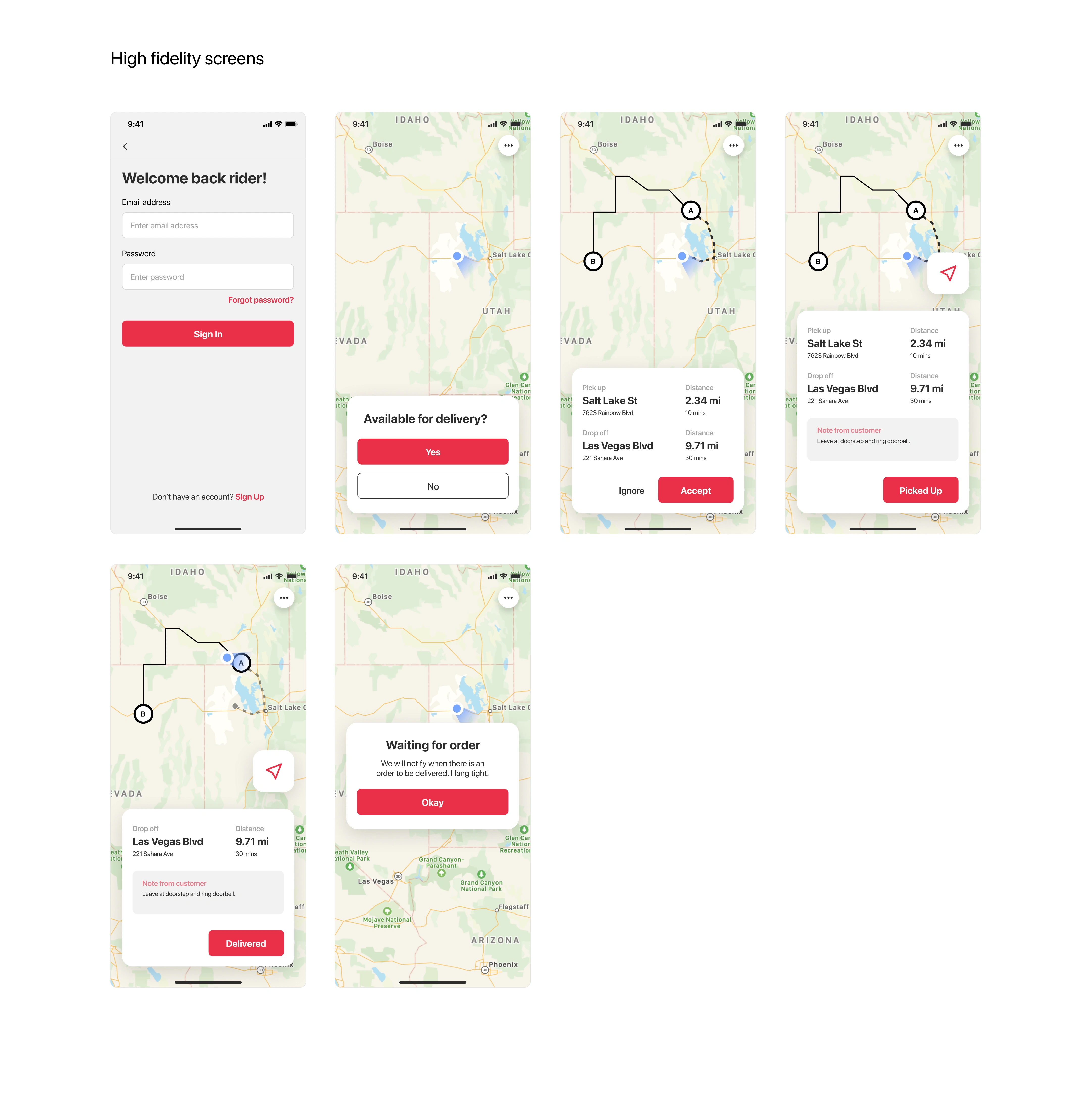 High fidelity and working prototype for a food delivery application with user and rider version.