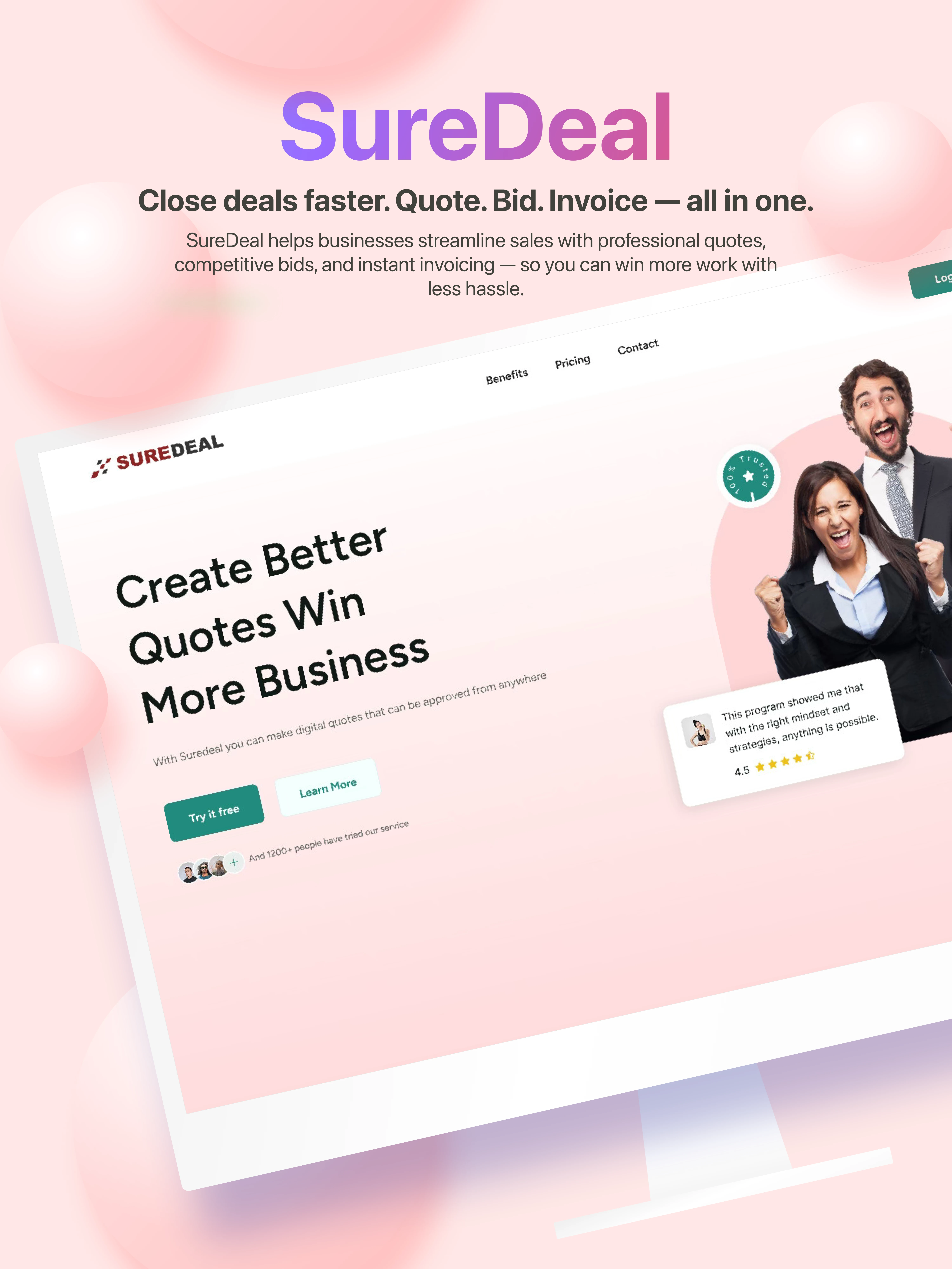 Built Suredeal, a sales quotation platform with Django, PostgreSQL & Celery for real-time quotes, Stripe, and scalable backend to speed up deal closures.