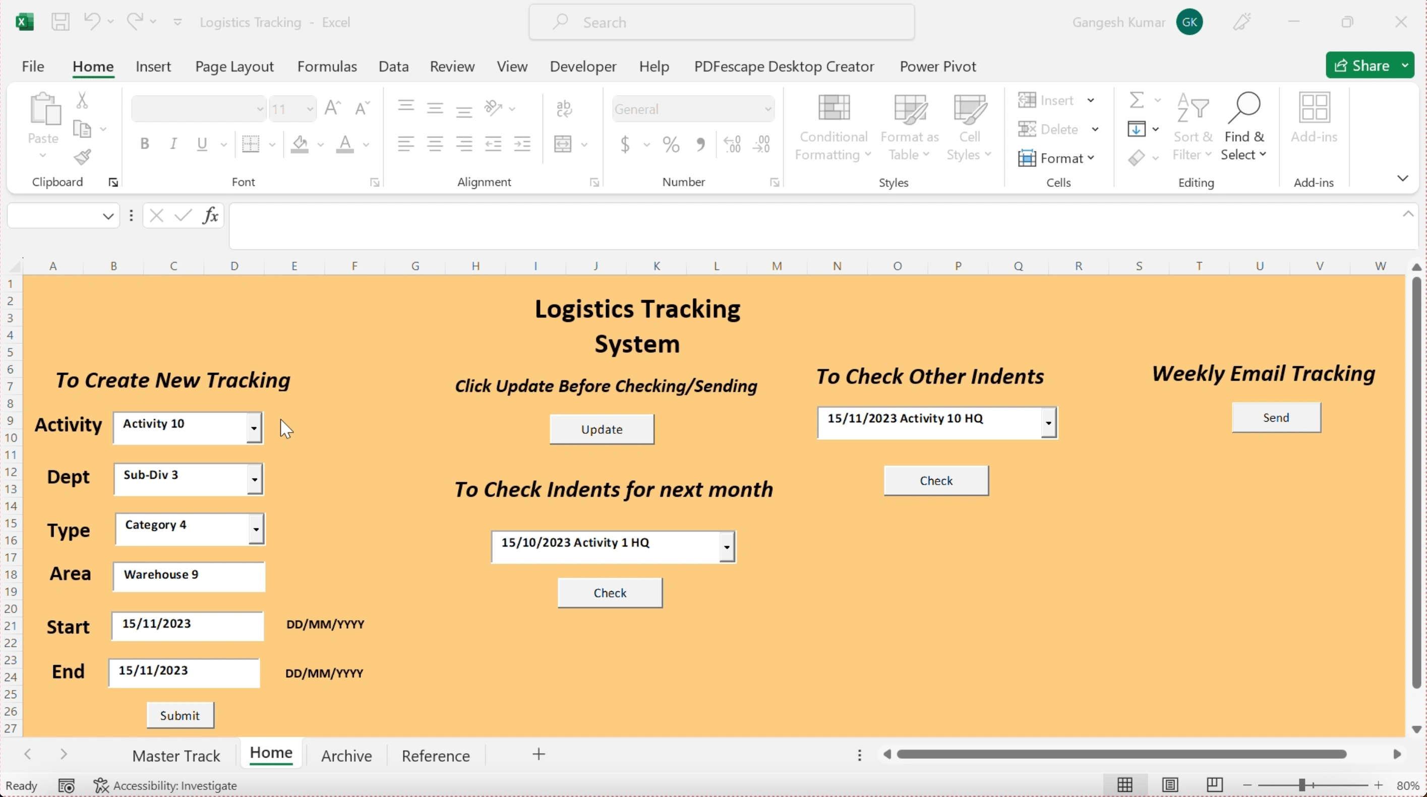 A novel system to track logistics for future activities. Capable of automatically creating email for easy dispersal of information to key appointment holders.