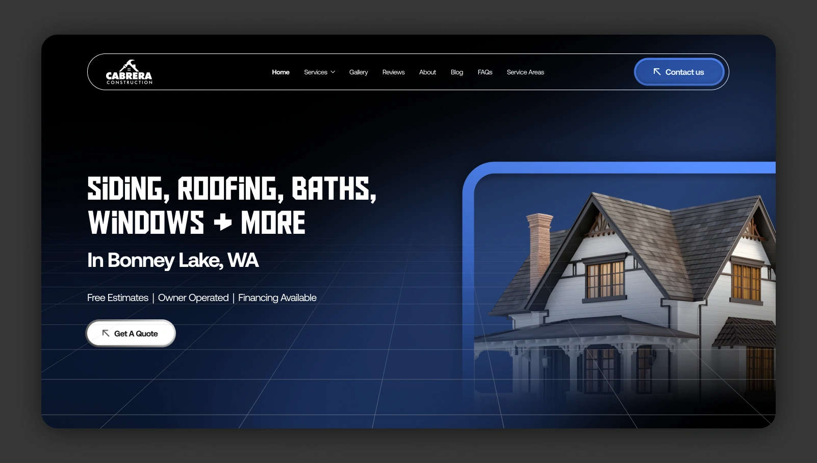 A modern, user-friendly website design for Cabrera Renovations, showcasing services, projects, and expertise with a clean and professional aesthetic.