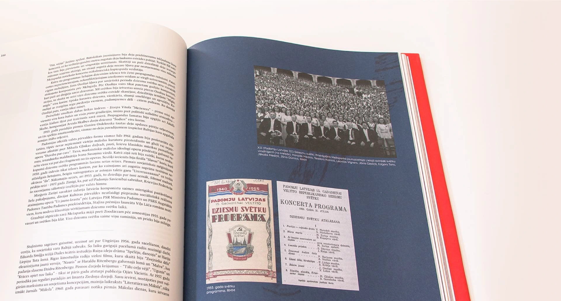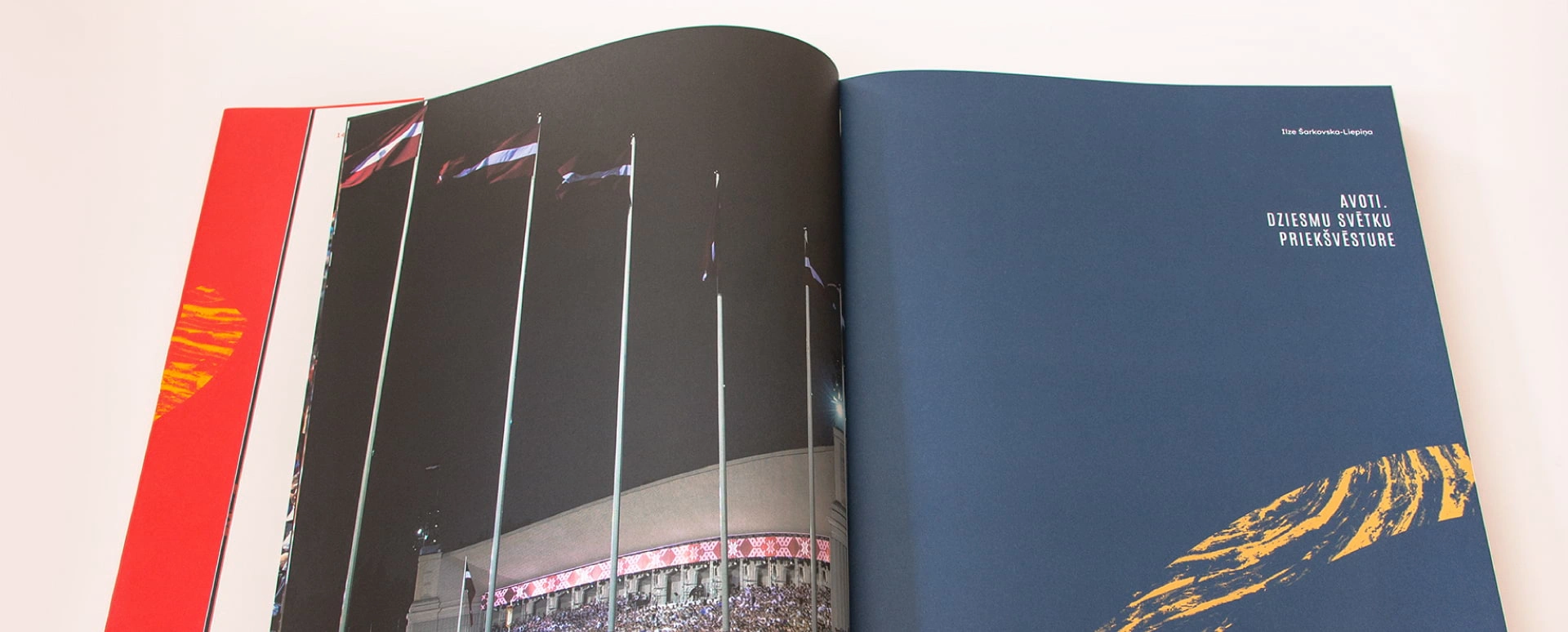 The approach was to create a visual solution that would work alongside with the brand identity of the year's festival. The concept is based on experience, tradition, bloodflow, power and inspiration, as deep as the sea, as old as tales of an oak tree's rings, as personal as a fingerprint, all entailed in a line of flow through the years and Latvian culture's evolution. Always flowing and continuing further, to be a beautiful tradition that is in the hearts of Latvians worldwide, no matter the time and circumstance. One of the most vital essences of Latvia.