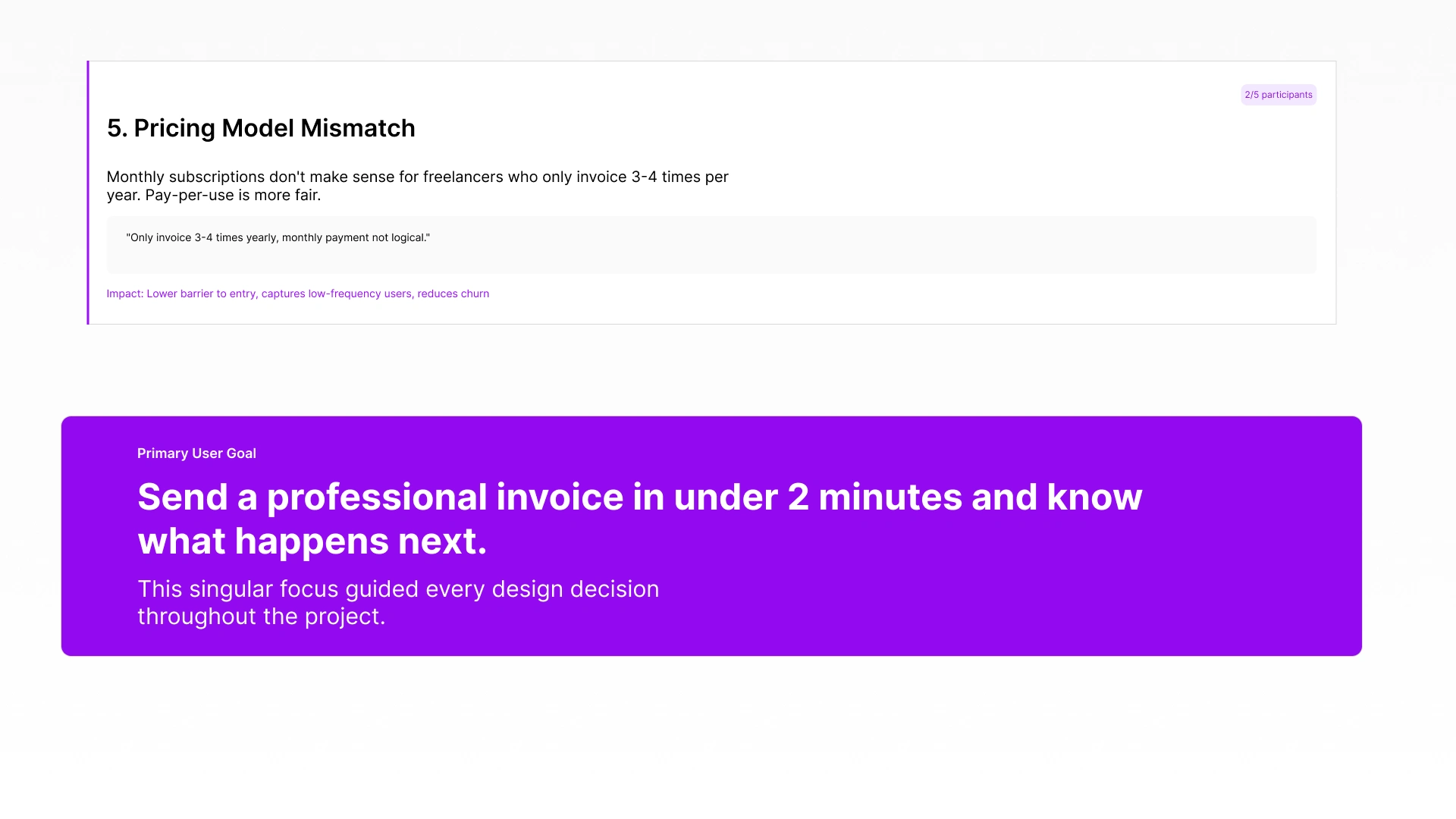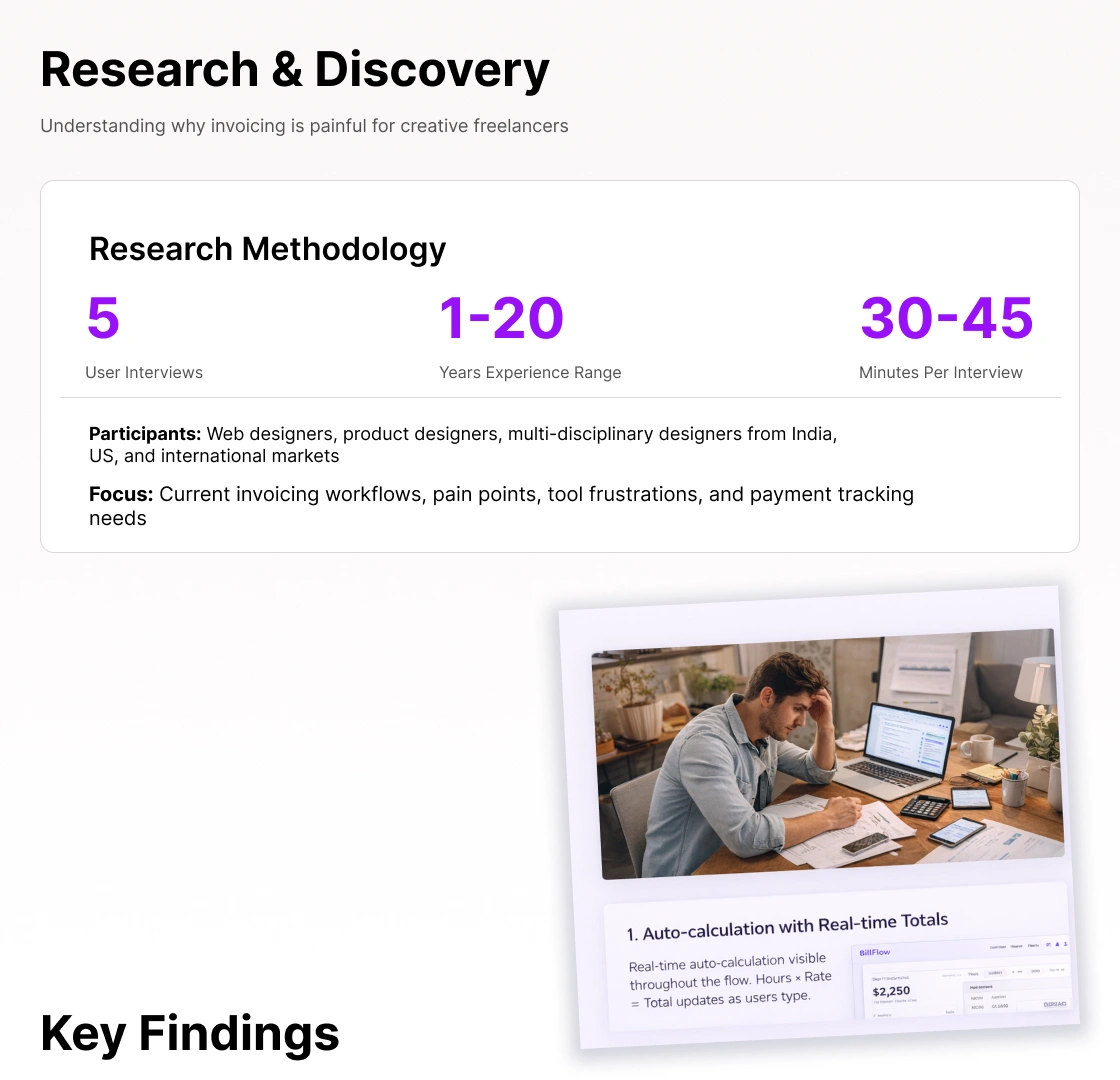• User research uncovered a critical gap(multi-invoice per project) that competitors completely missed