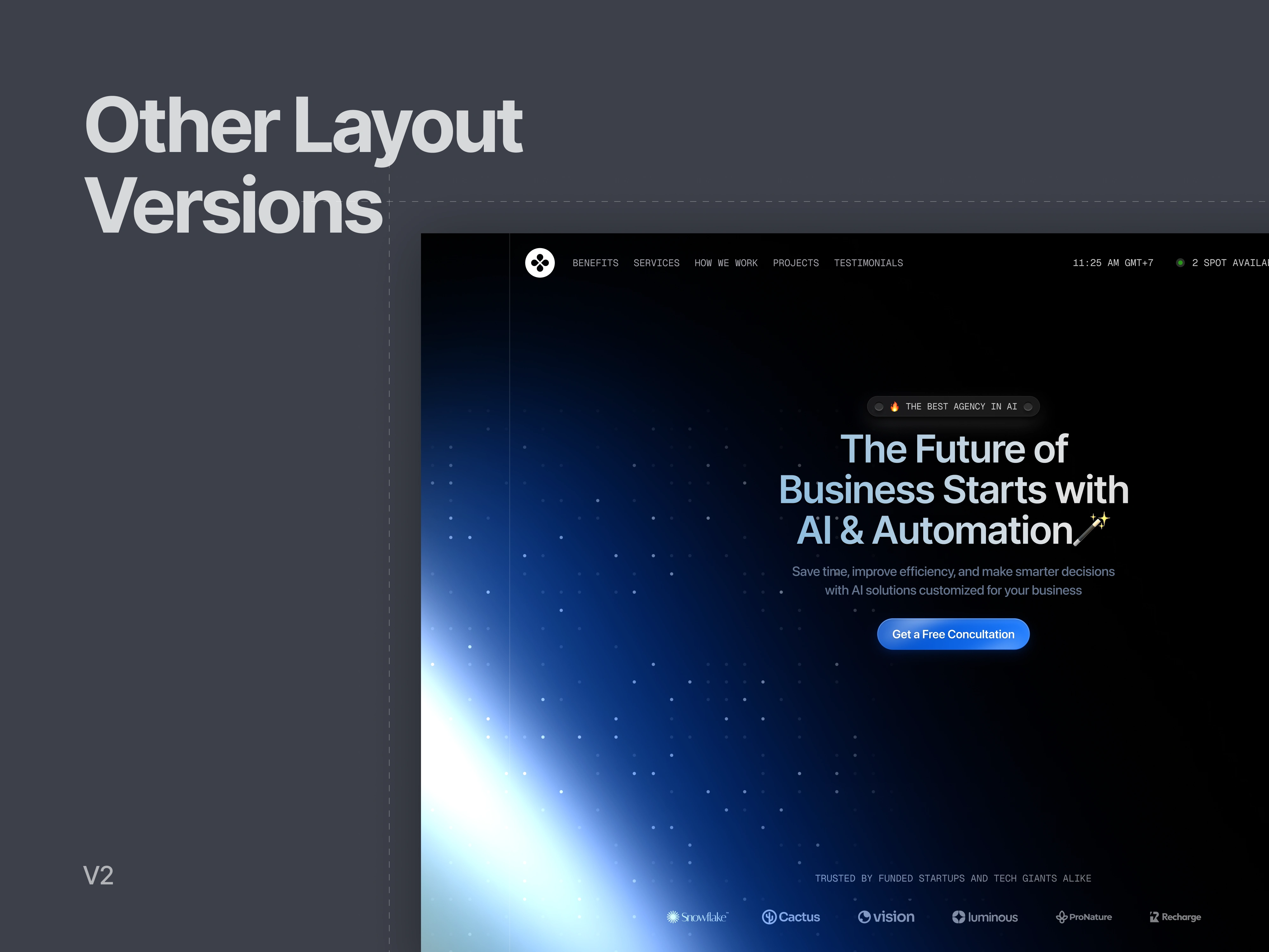 This is the dark mode variation of my previous hero section exploration for an [Hero] AI-Powered Agency, The goal remains the same: clean, modern, and futuristic design, now with a more tech-focused and premium look.