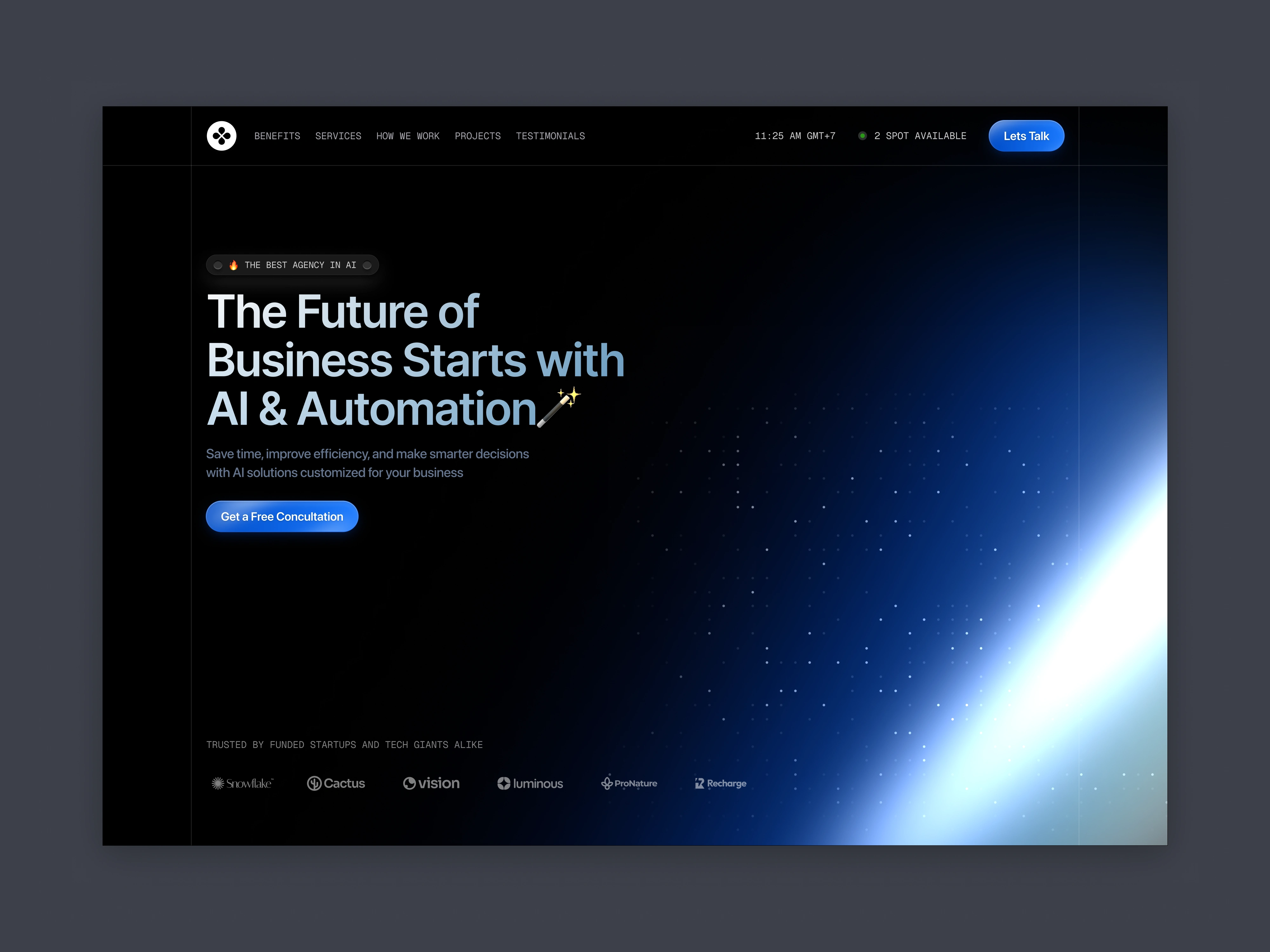 Why Dark Mode? It reduces eye strain and gives a sleek, professional appearance—perfect for agencies in the tech and AI space!