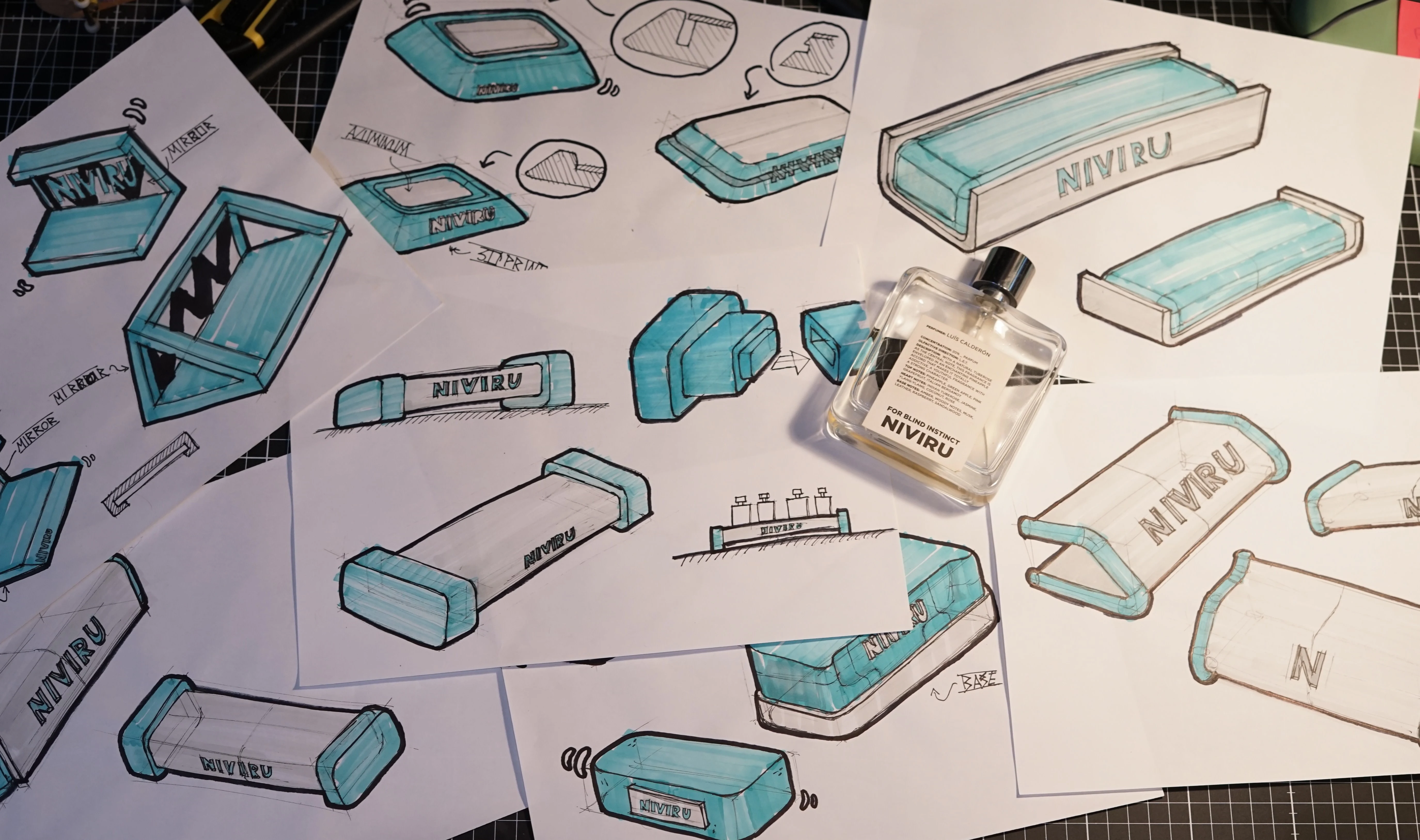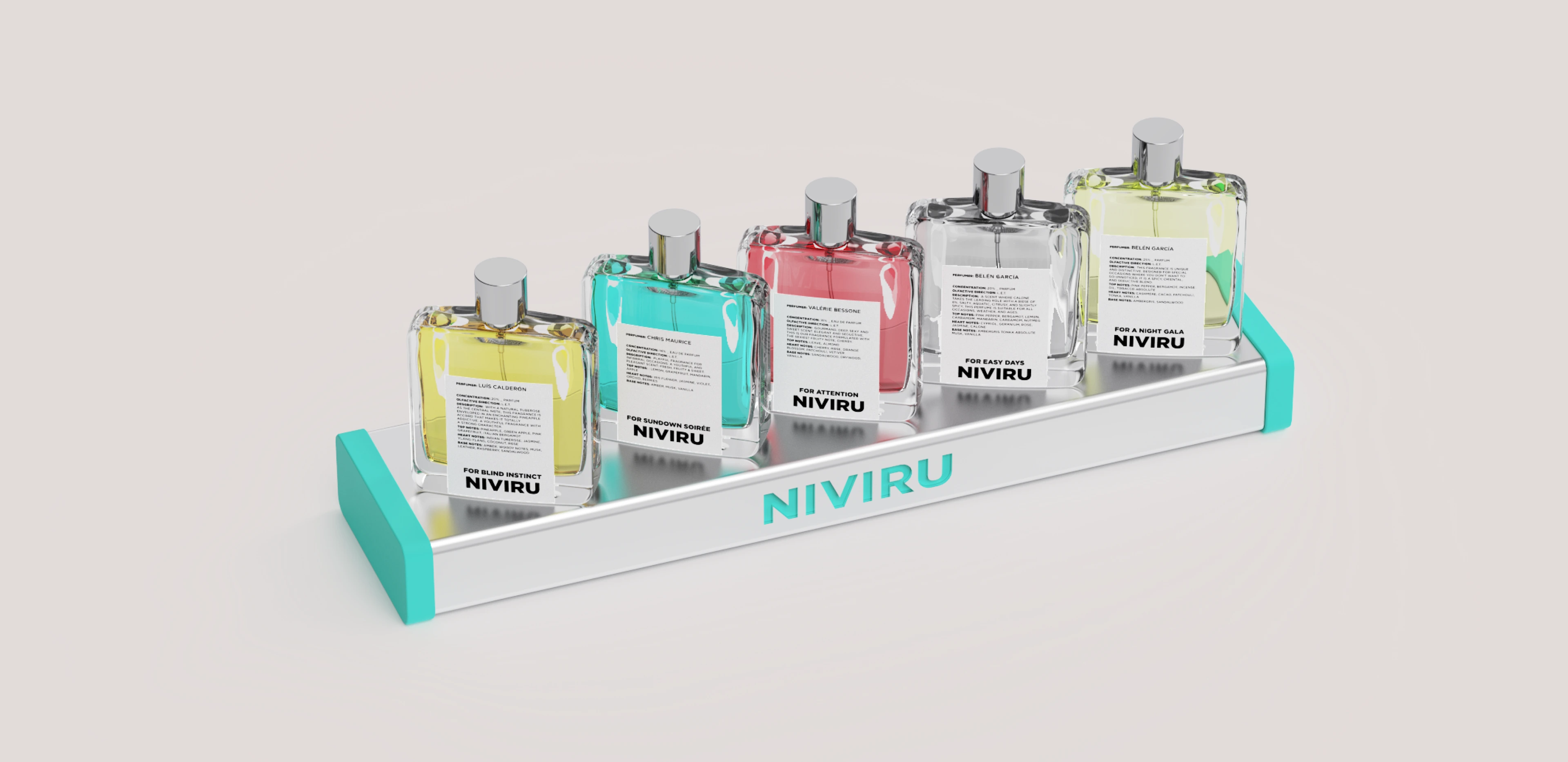 This project involved the design and fabrication of a retail perfume display for Niviru, a young fragrance brand looking to translate its digital identity into a strong physical presence inside stores.