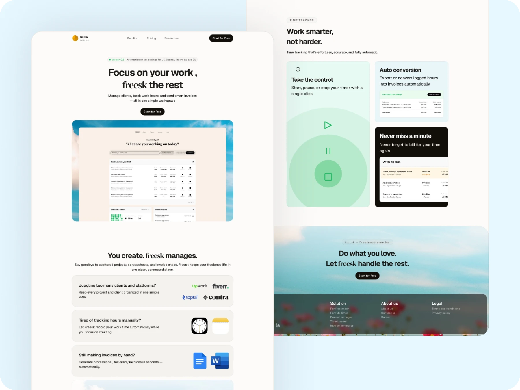The idea: Freesk, a web app designed to help freelancers manage clients, track hours, and generate tax-ready invoices — automatically.