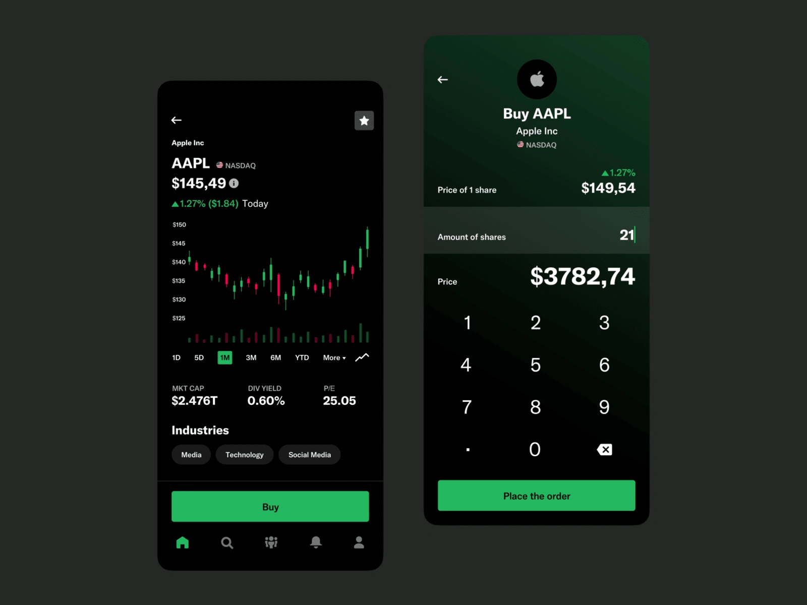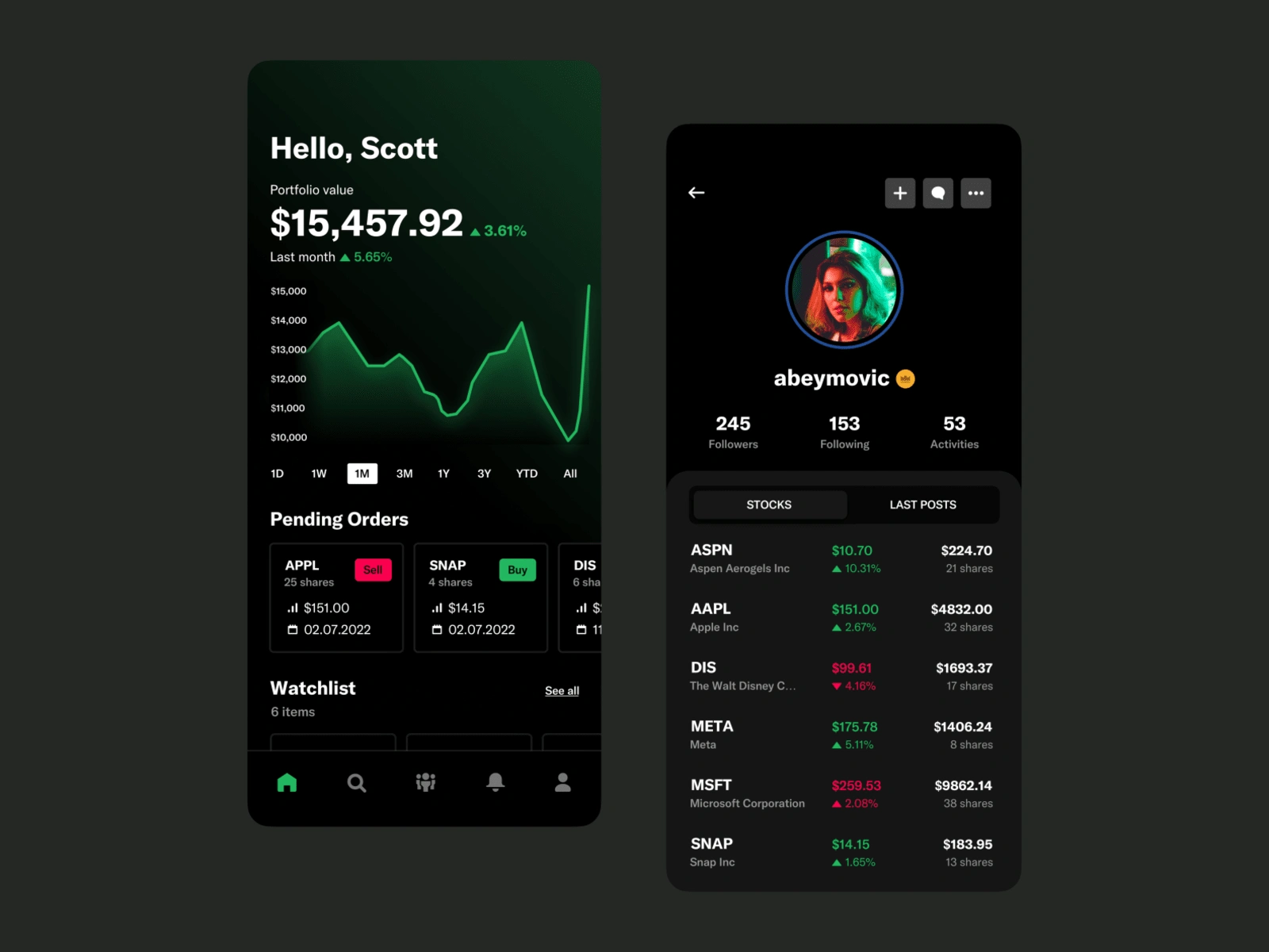 UI design for a stock trading app with a modern twist.