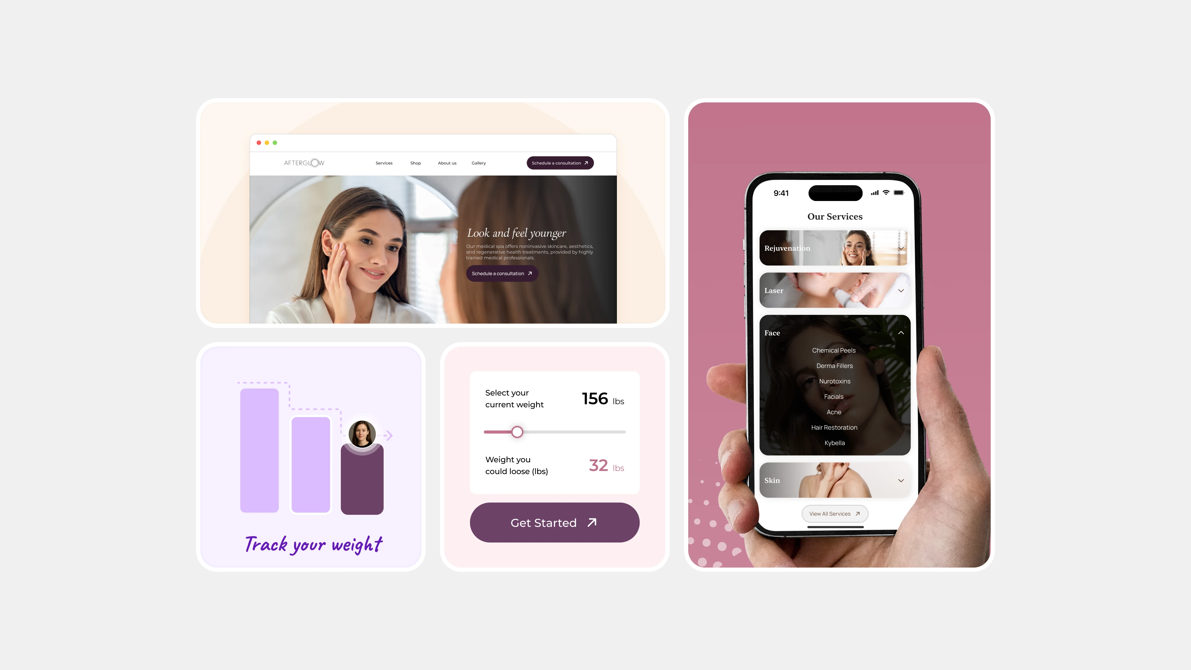 Afterglow is a wellness and aesthetics studio based in Mill Valley, blending advanced medical aesthetics with holistic therapies. I worked on designing their website to reflect their mission of empowering clients through personalized, expert care. With services ranging from laser treatments to Ayurvedic-inspired wellness, the site highlights Afterglow's unique blend of science and serenity—delivered by a team with decades of combined experience.