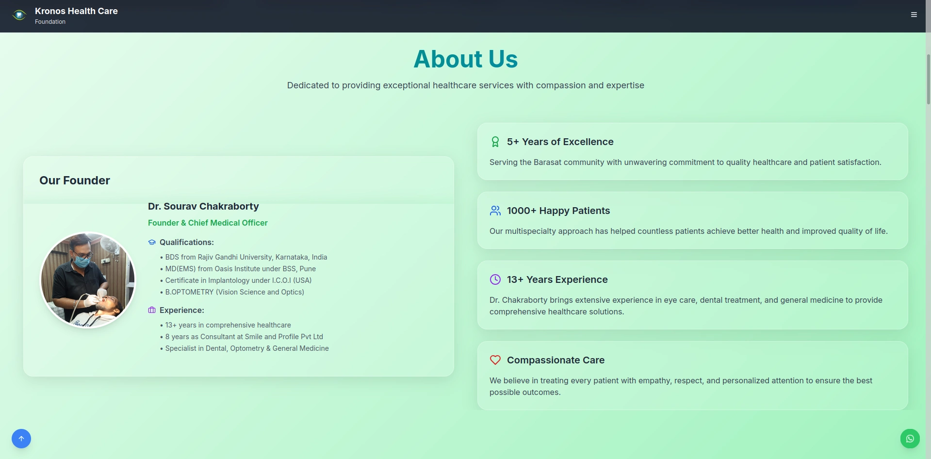 I designed and developed a modern, responsive website for Kronos Global Care Foundation, a trusted polyclinic offering a range of medical services. The goal was to create a clean, informative, and user-friendly platform that builds trust, improves accessibility, and helps patients connect with the clinic easily.