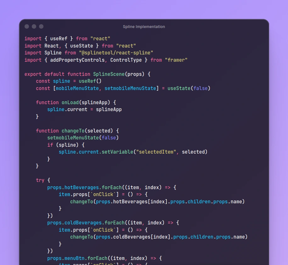 This is a code implementation in Framer where you can interact with a Spline scene using outside UI elements.