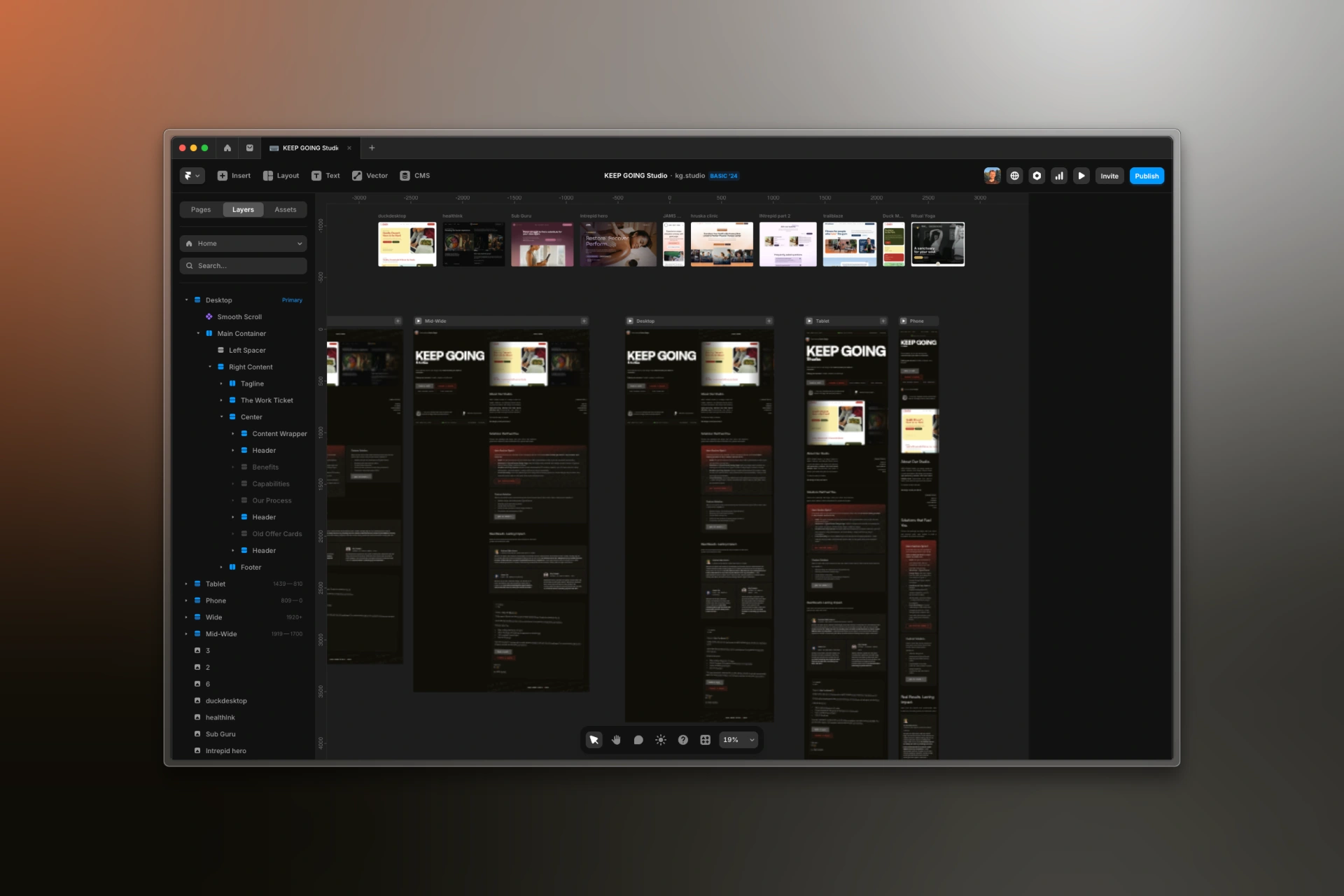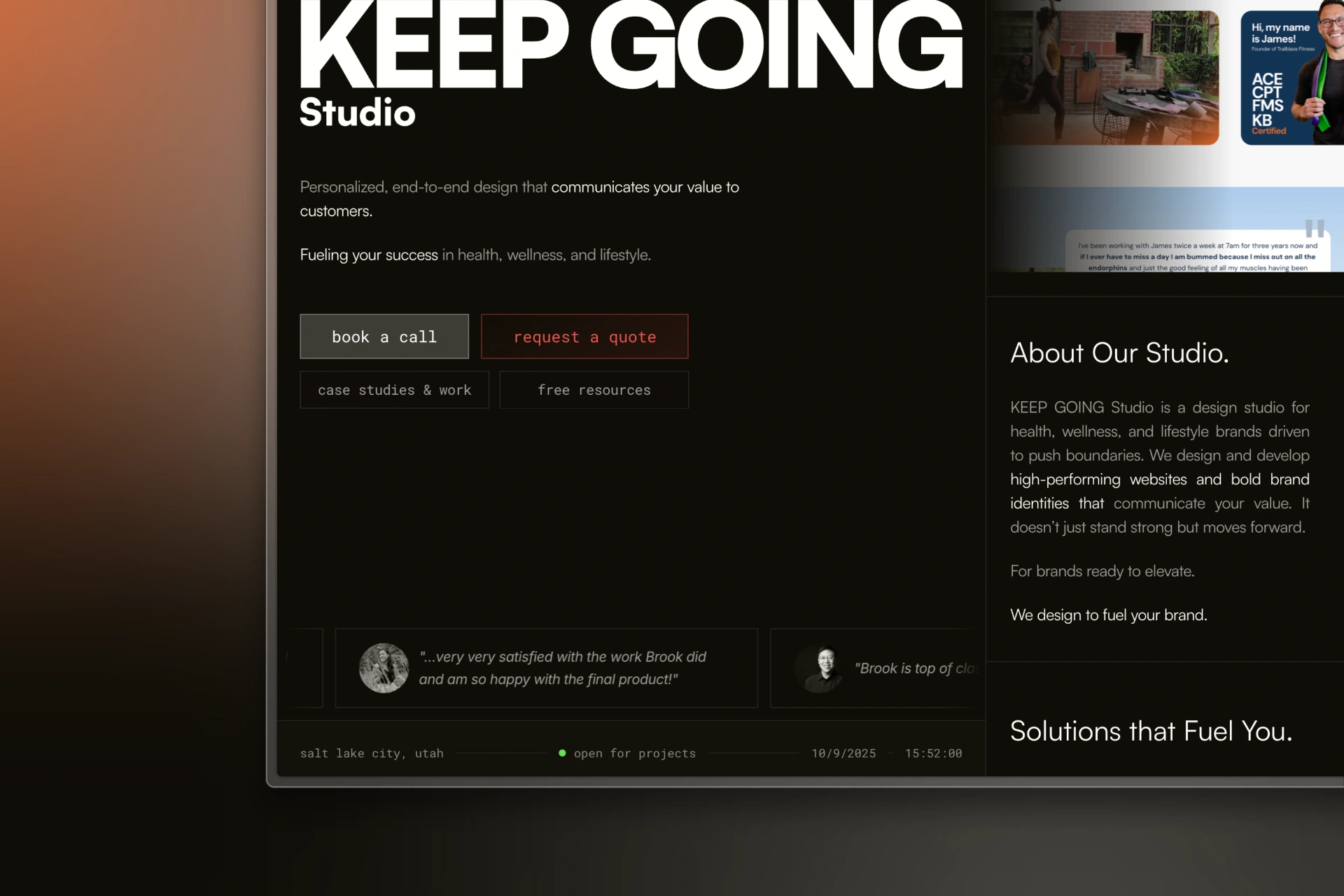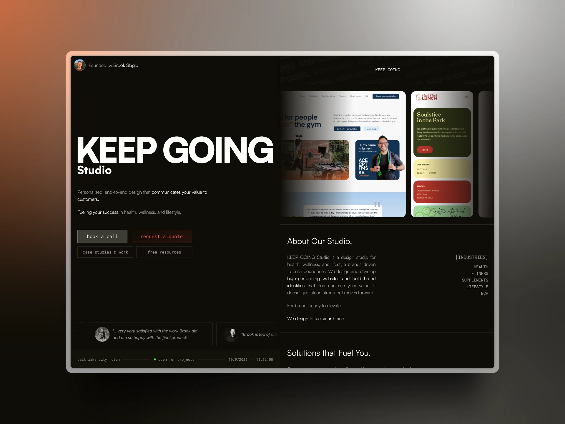 Unique and dynamic website and branding for my late studio, KEEP GOING Studio. Branding made in Figma, website build in Framer.