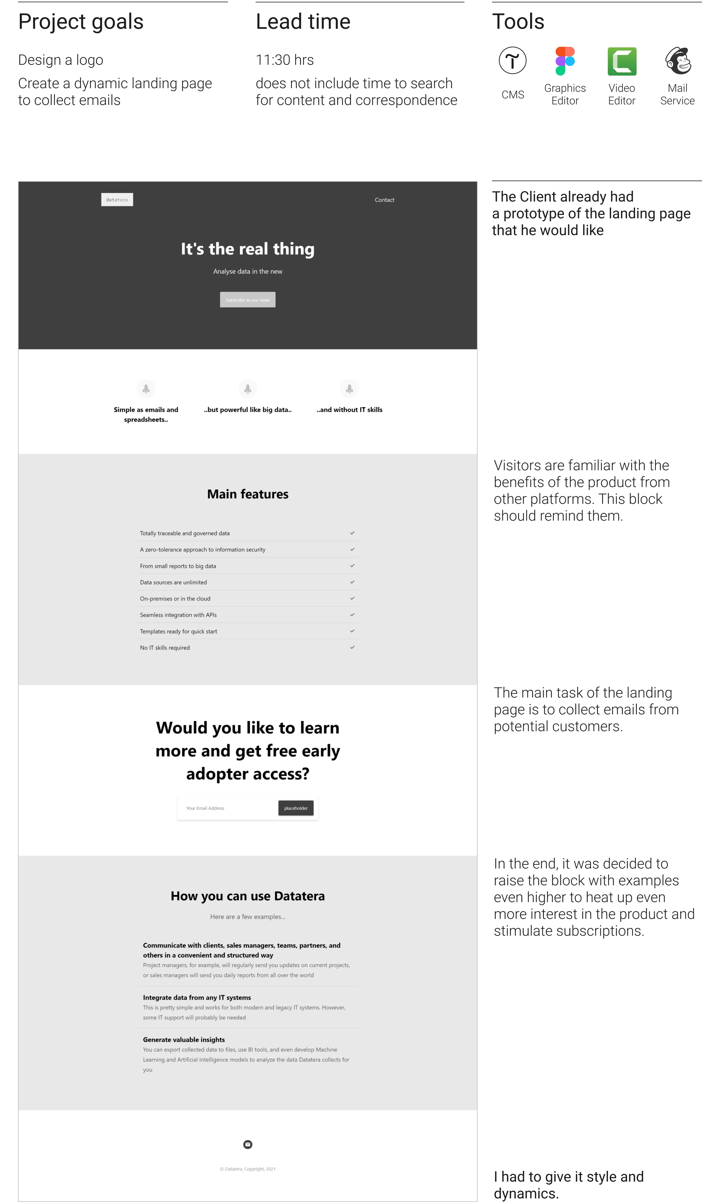 Minimalist landing page for a SaaS startup, created as a digital business card to showcase services and attract clients and investors.