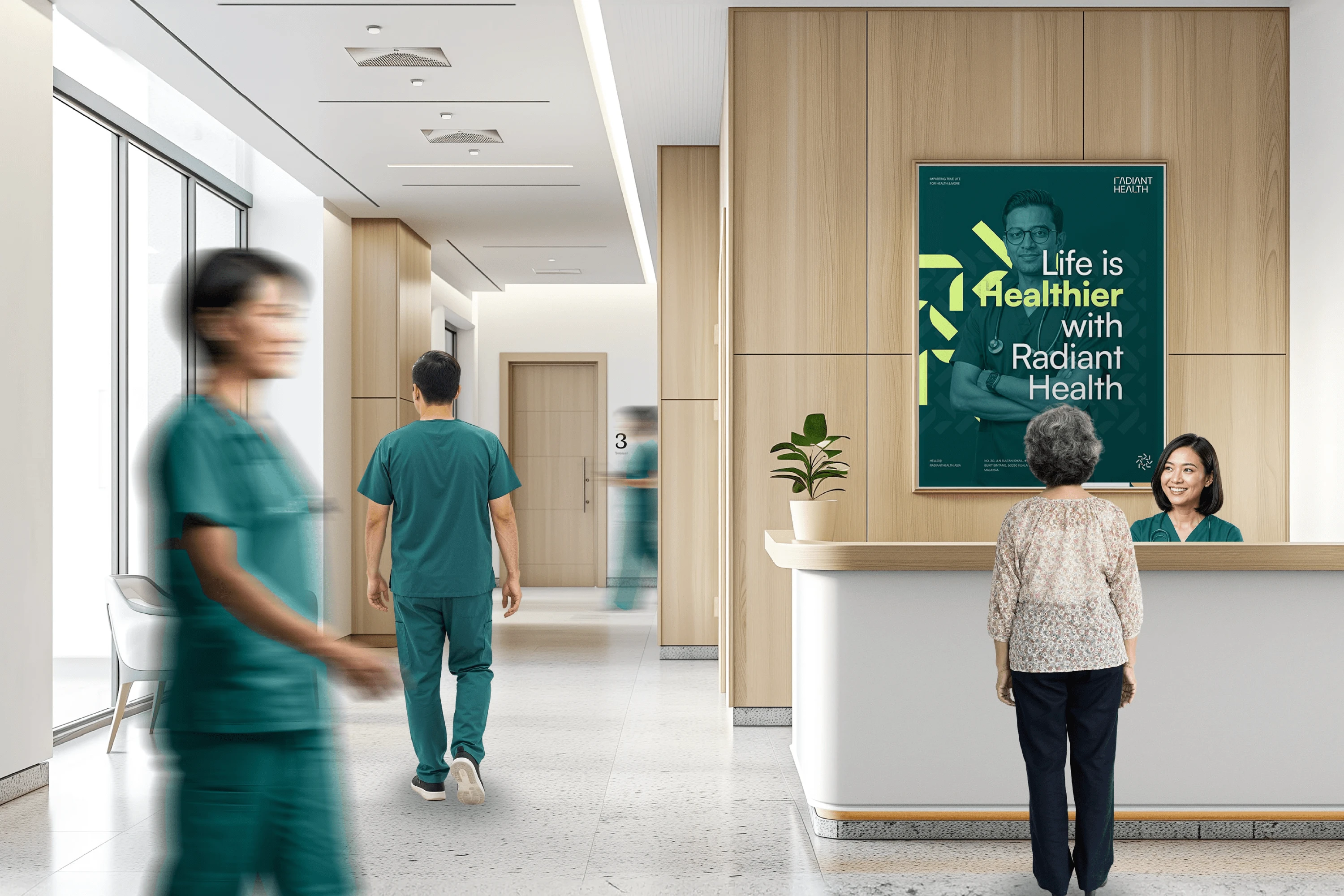 The challenge was to build a brand capable of standing out while maintaining absolute clinical trust. By working closely with the Radiant Health's brand team, we crafted an omnichannel design system was engineered for consistency across physical clinic wayfinding, fleet branding, doctor uniforms, and a patient-centric digital platform built on atomic design principles.