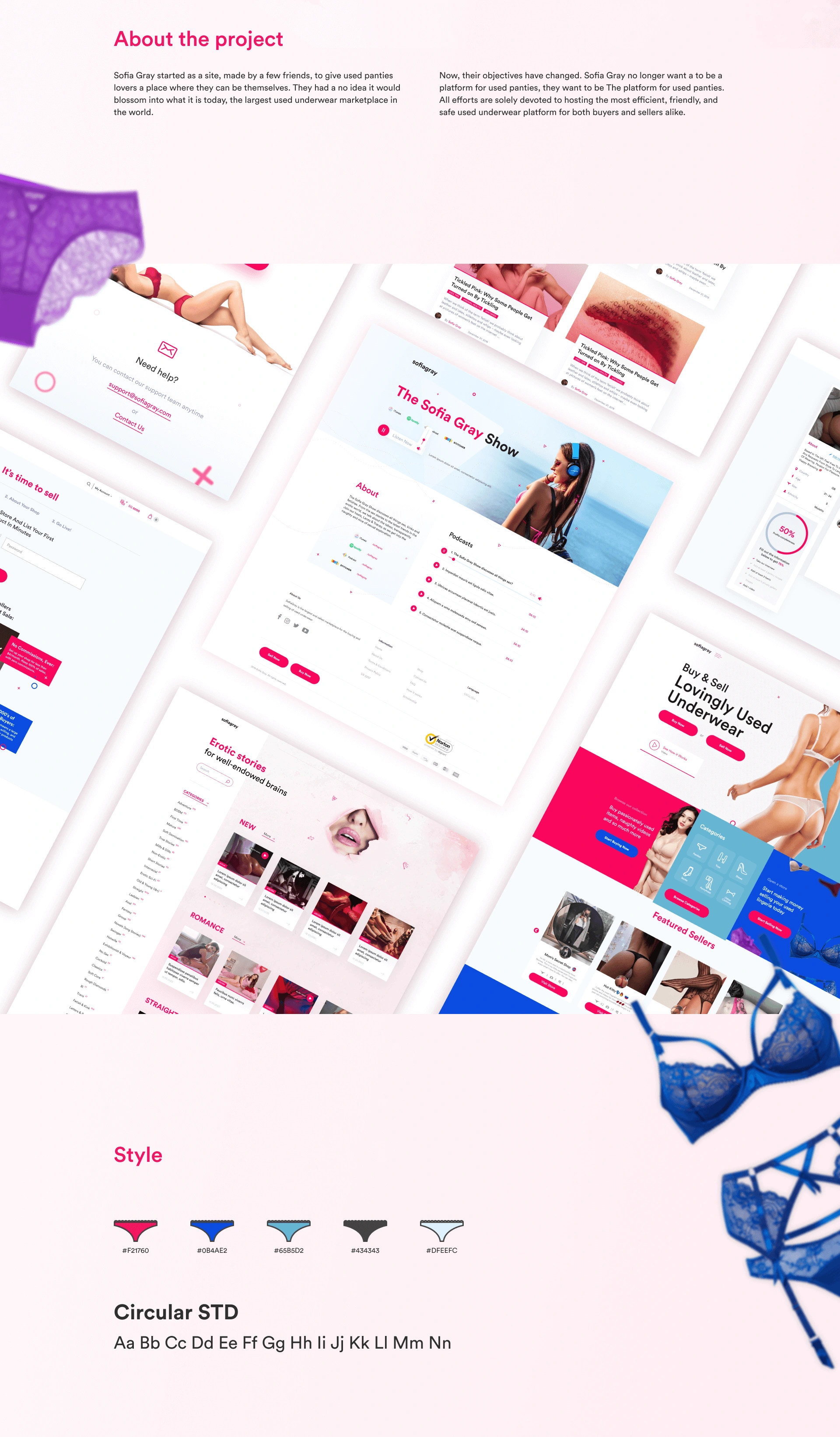 Sofia Gray started as a site, made by a few friends, to give used panties lovers a place where they can be themselves. They had a no idea it would blossom into what it is today, the largest used underwear marketplace in the world. Now, their objectives have changed. Sofia Gray no longer want a to be a platform for used panties, they want to be The platform for used panties. All efforts are solely devoted to hosting the most efficient, friendly, and safe used underwear platform