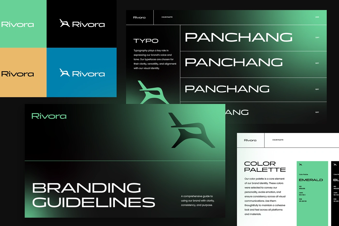 I designed a comprehensive brand identity system for Rivora to unify its visual language and sharpen its market positioning. The brand book lays out clear, practical guidelines for: