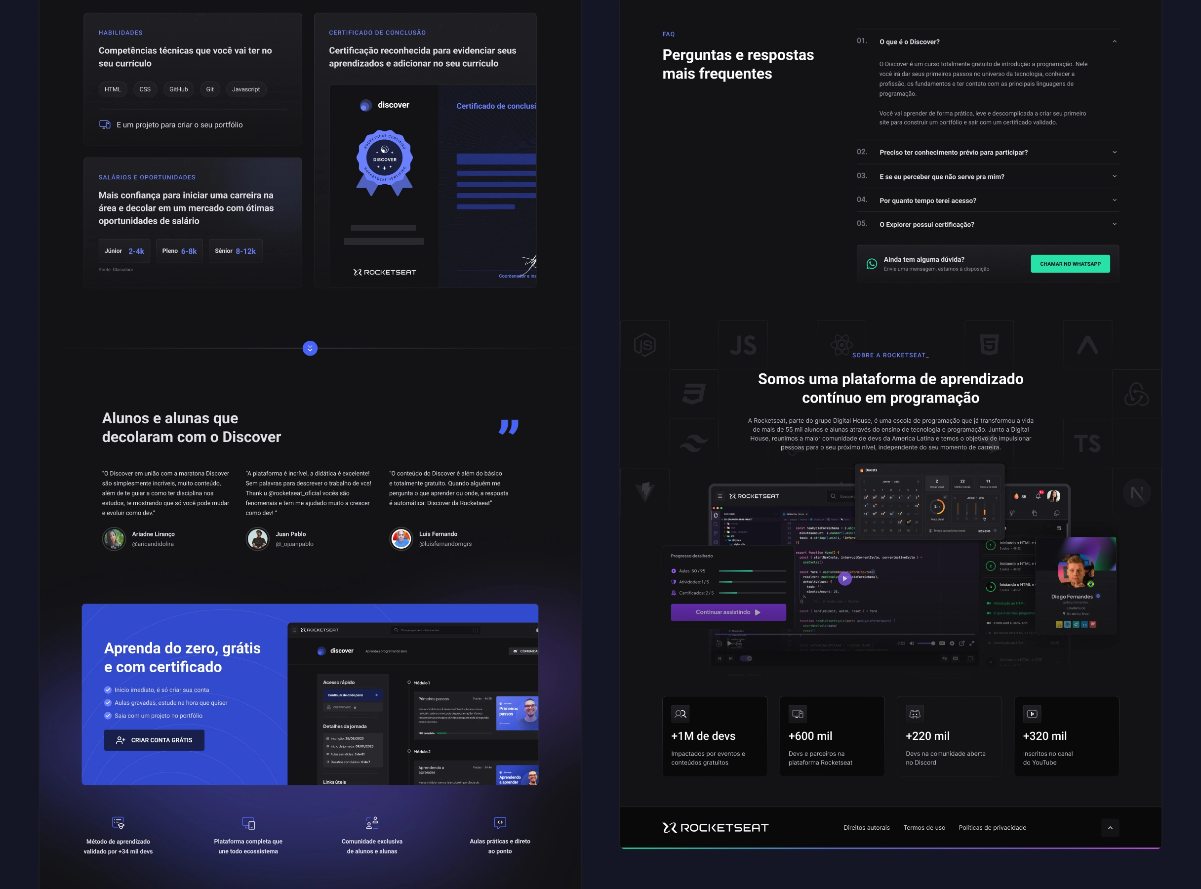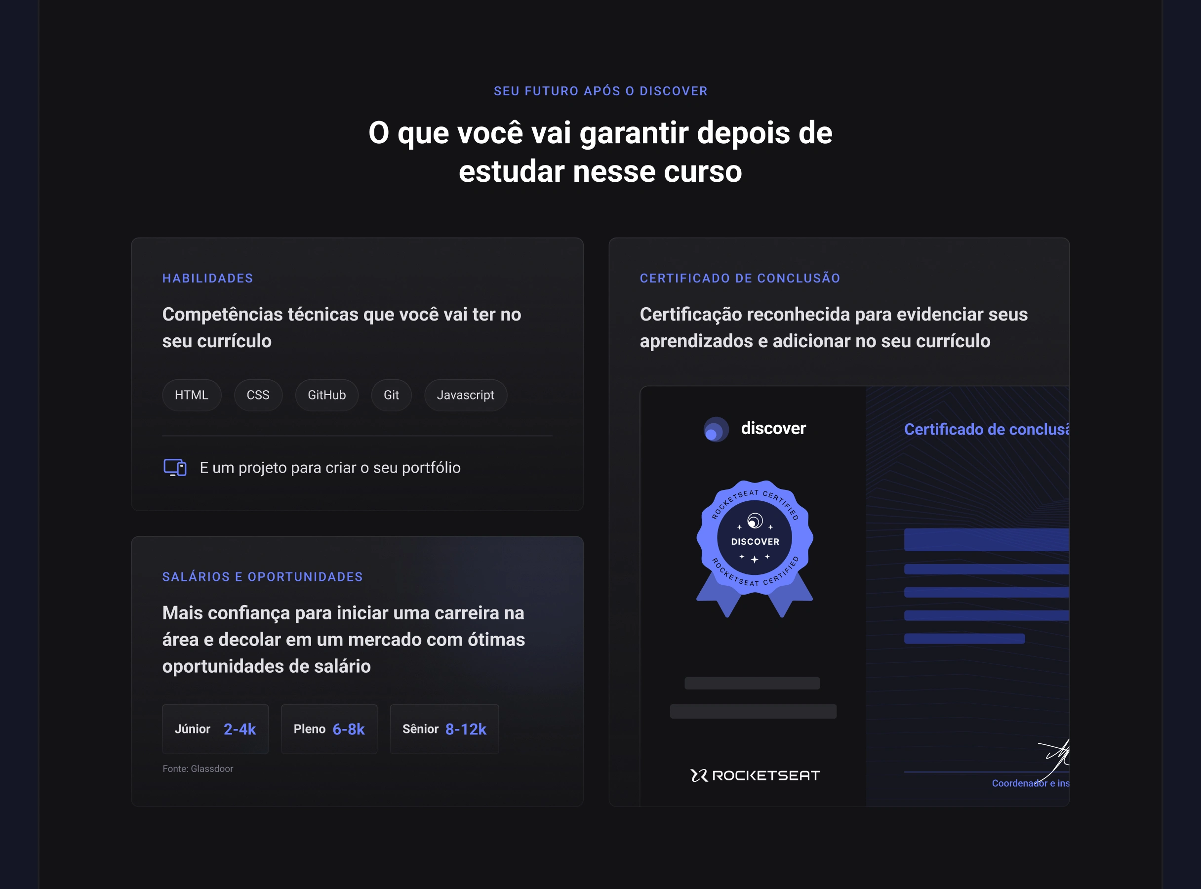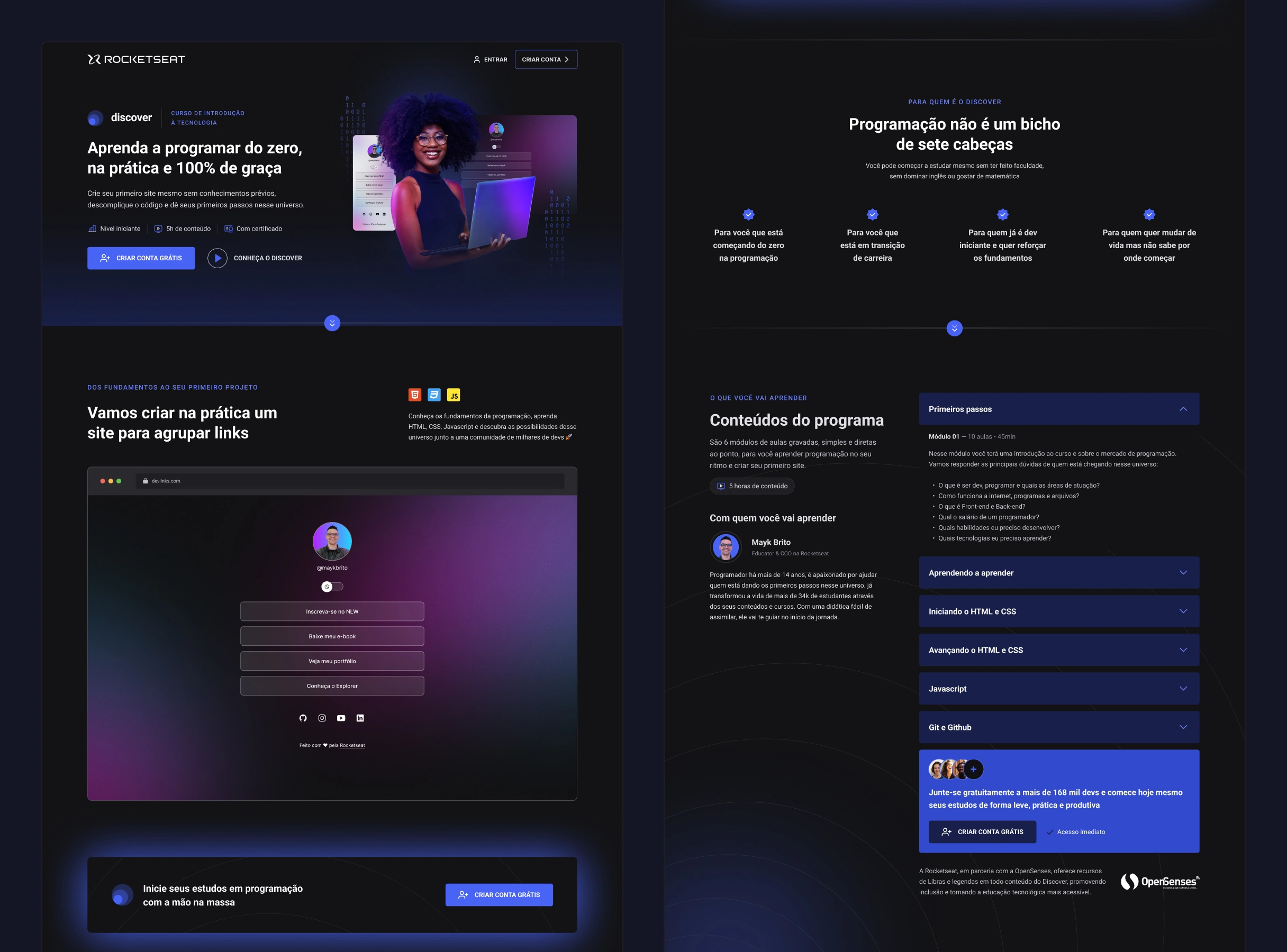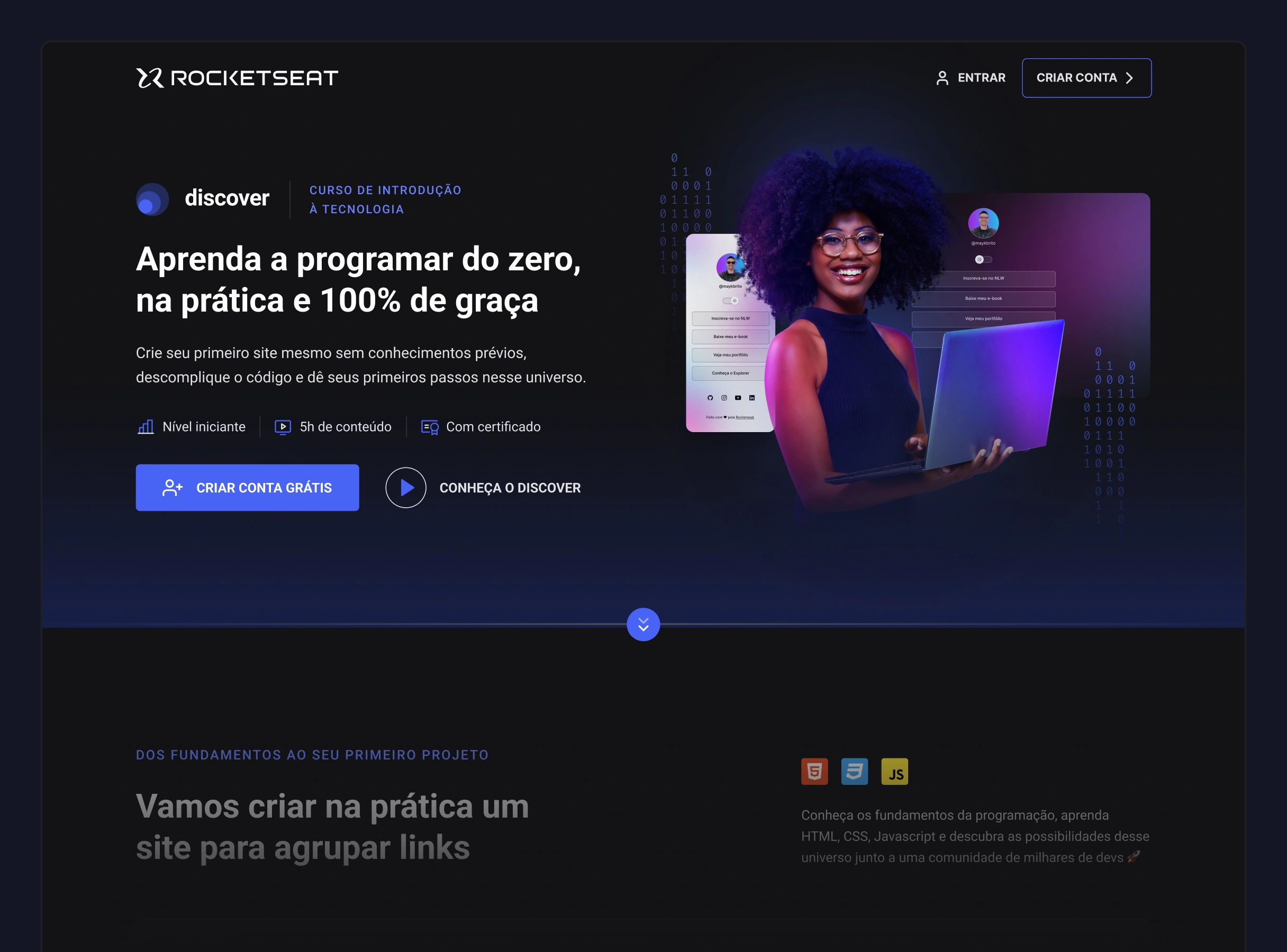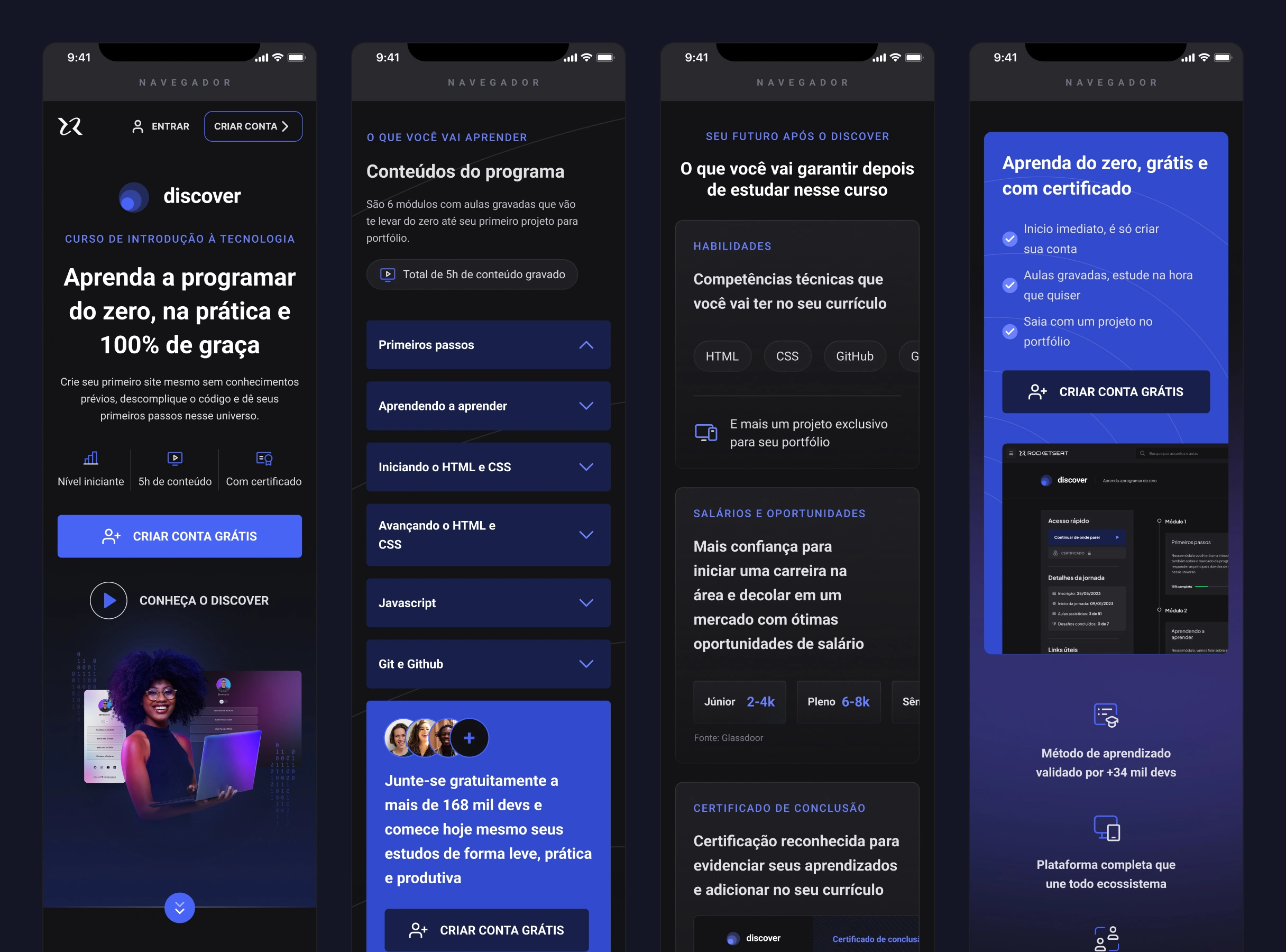 Contexto: O Discover é um curso gratuito de introdução a programação da Rocketseat, uma escola com mais de 55 mil alunos e alunas e que possui a maior comunidade dev da América Latina (+220 mil).