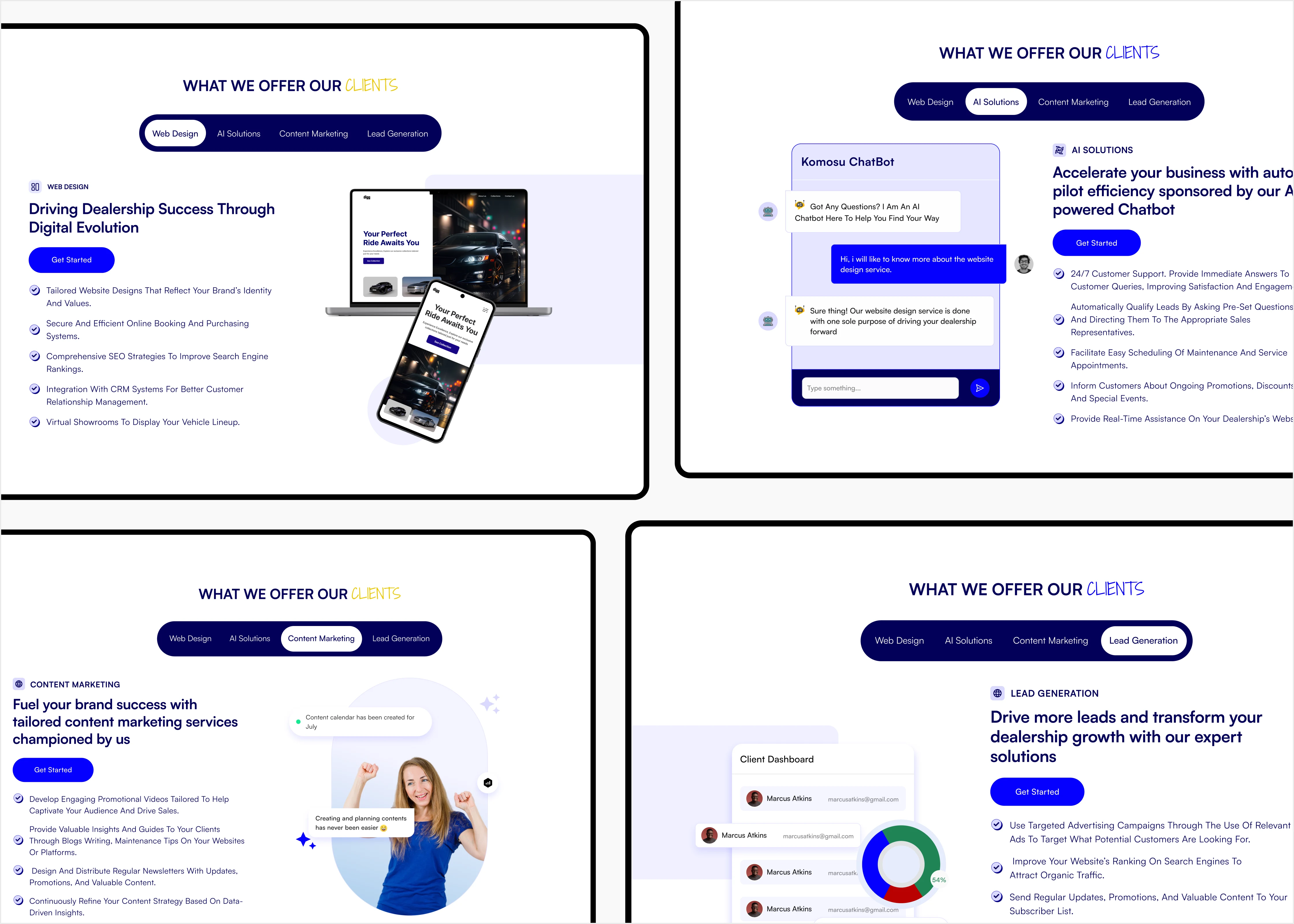 Komosu Network is a dynamic agency specializing in next-generation digital solutions tailored for automotive dealerships. Komosu’s vision is to revolutionize how dealerships operate by leveraging the power of digital transformation