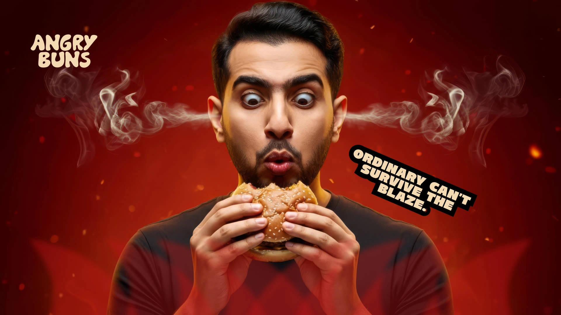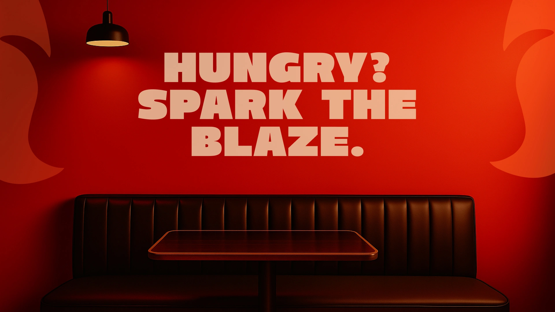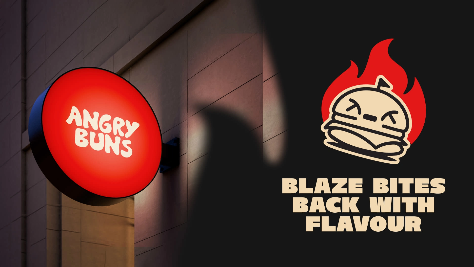 I used the Purple Cow effect — doing the opposite of what others do. That’s where the character Blaze was born, representing fire, flavor, and energy. The logo uses bold, clean typography with a red and orange palette to symbolize heat and hunger. Together, they form a brand that’s fiery but fun — a visual identity that’s impossible to miss.