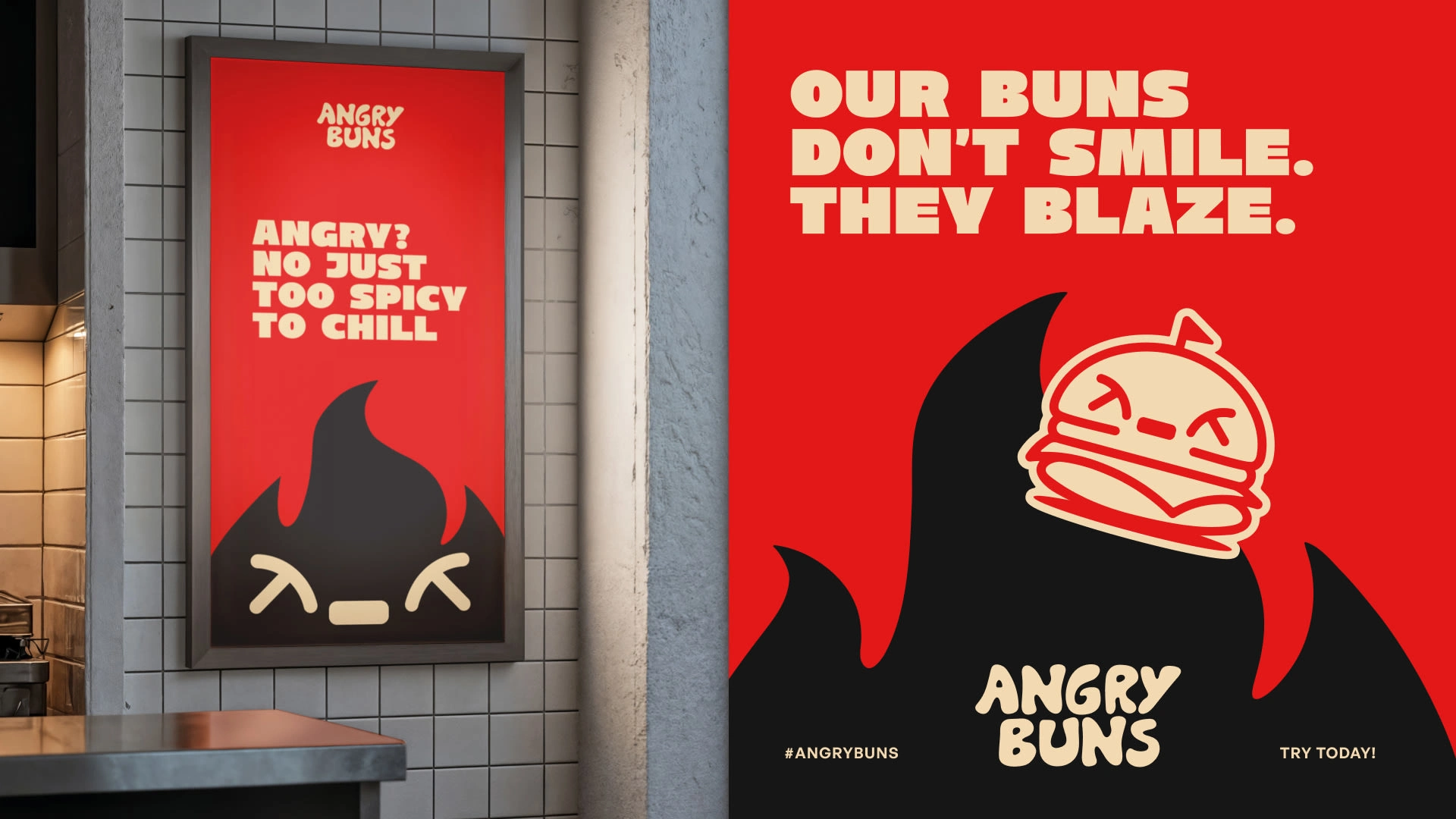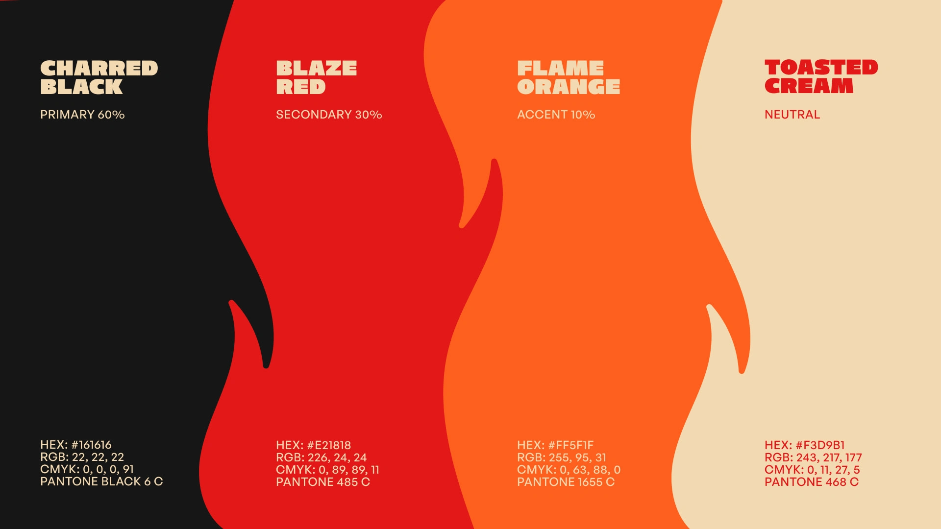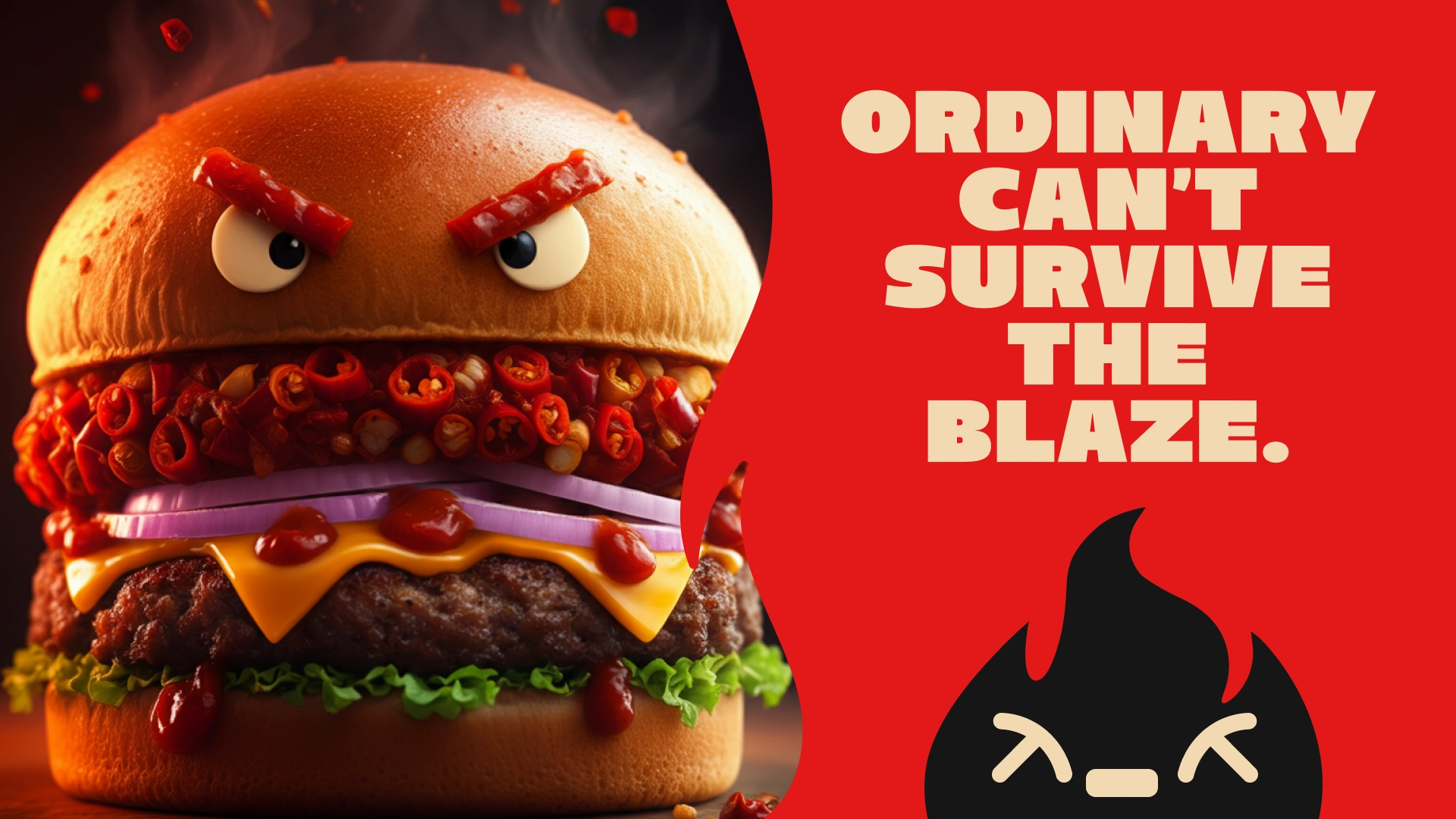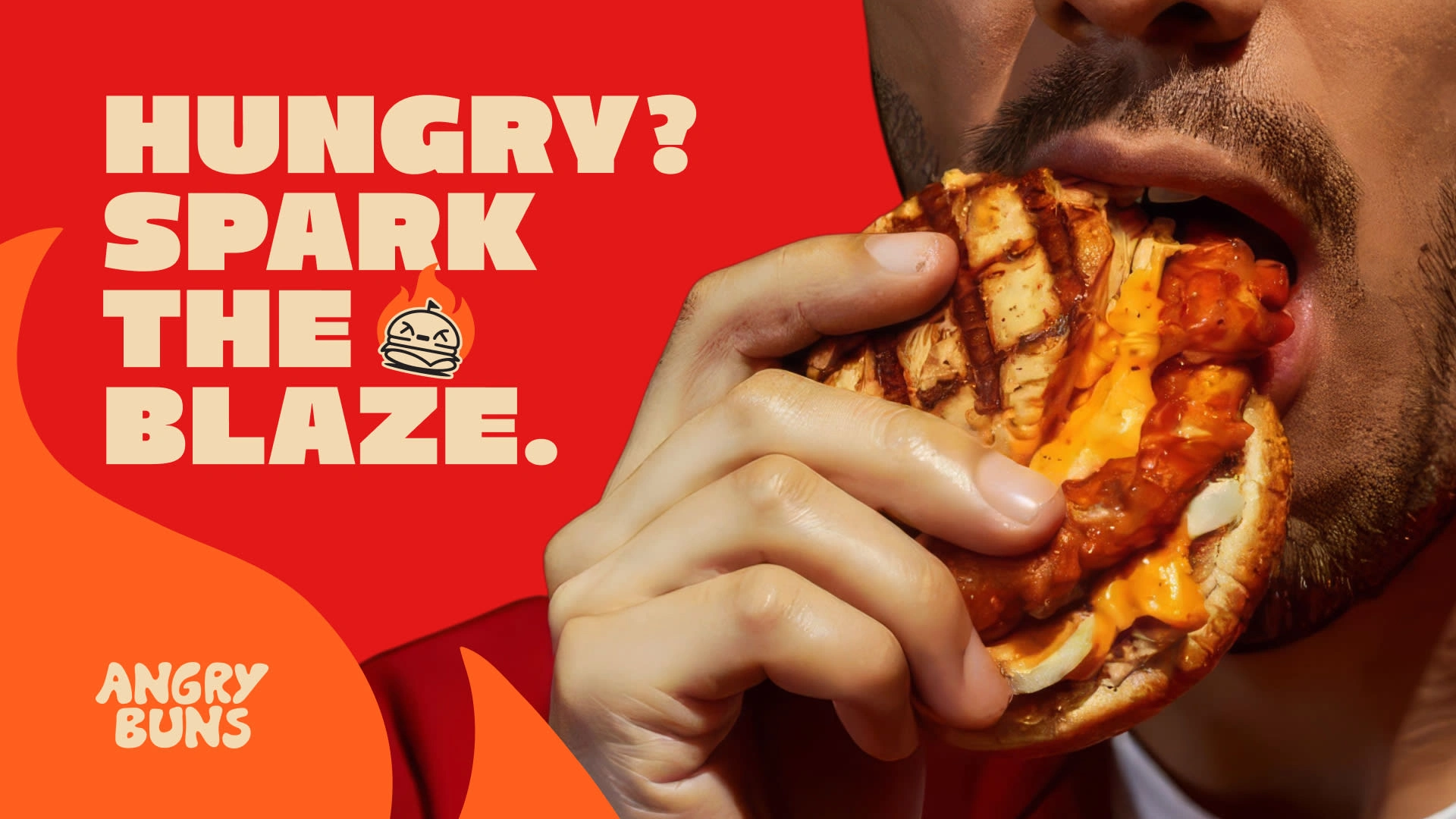 I used the Purple Cow effect — doing the opposite of what others do. That’s where the character Blaze was born, representing fire, flavor, and energy. The logo uses bold, clean typography with a red and orange palette to symbolize heat and hunger. Together, they form a brand that’s fiery but fun — a visual identity that’s impossible to miss.