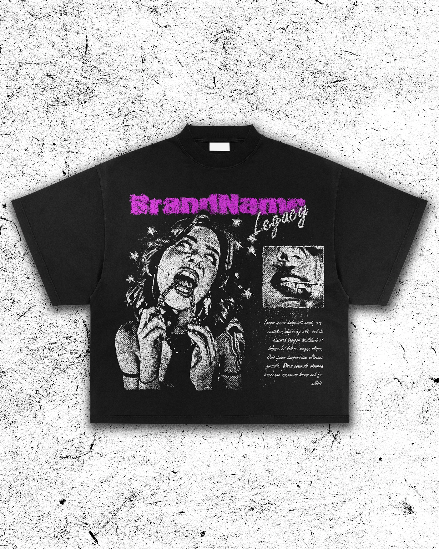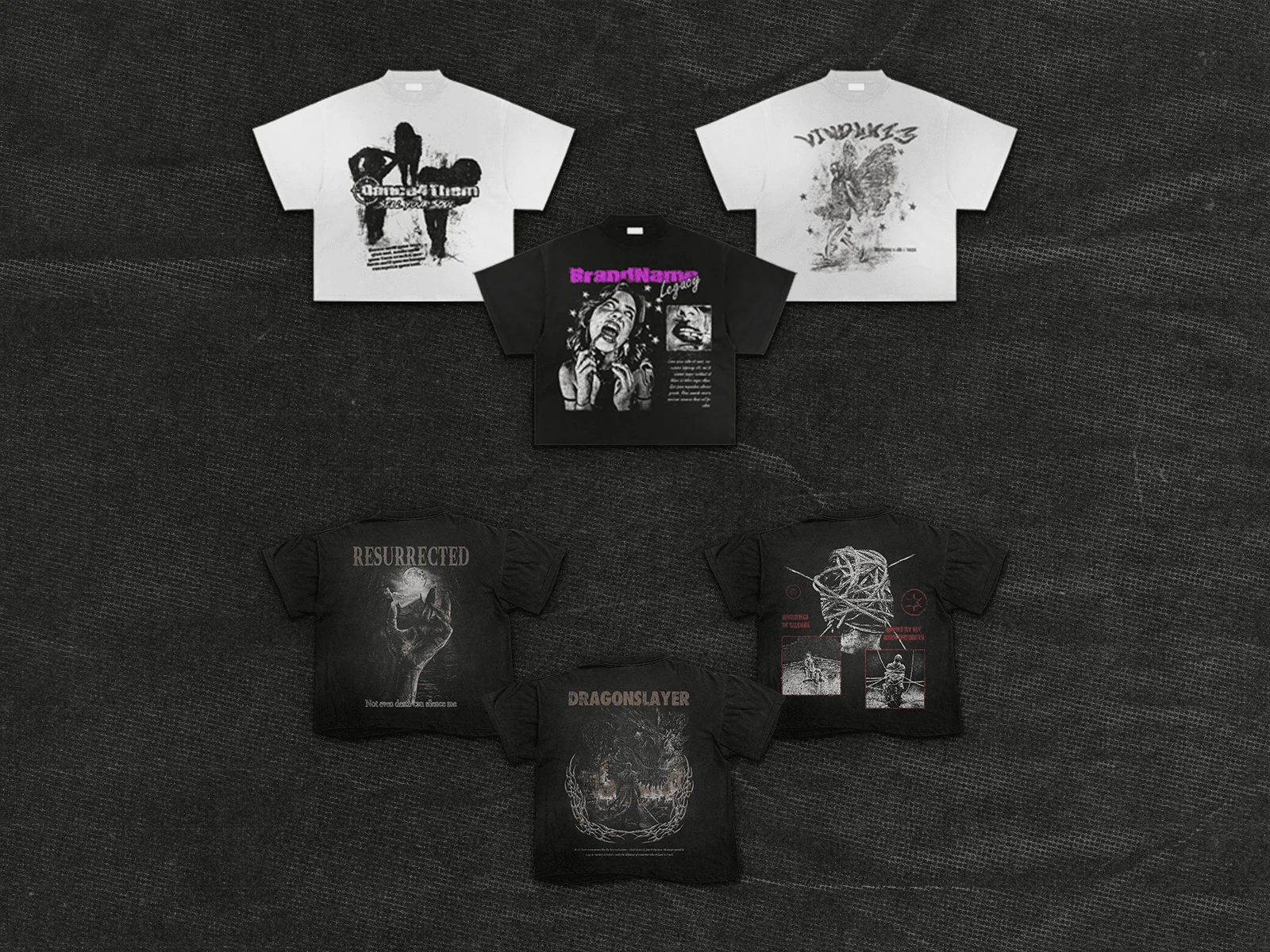Grunge & vintage visuals for tees, music, and streetwear.