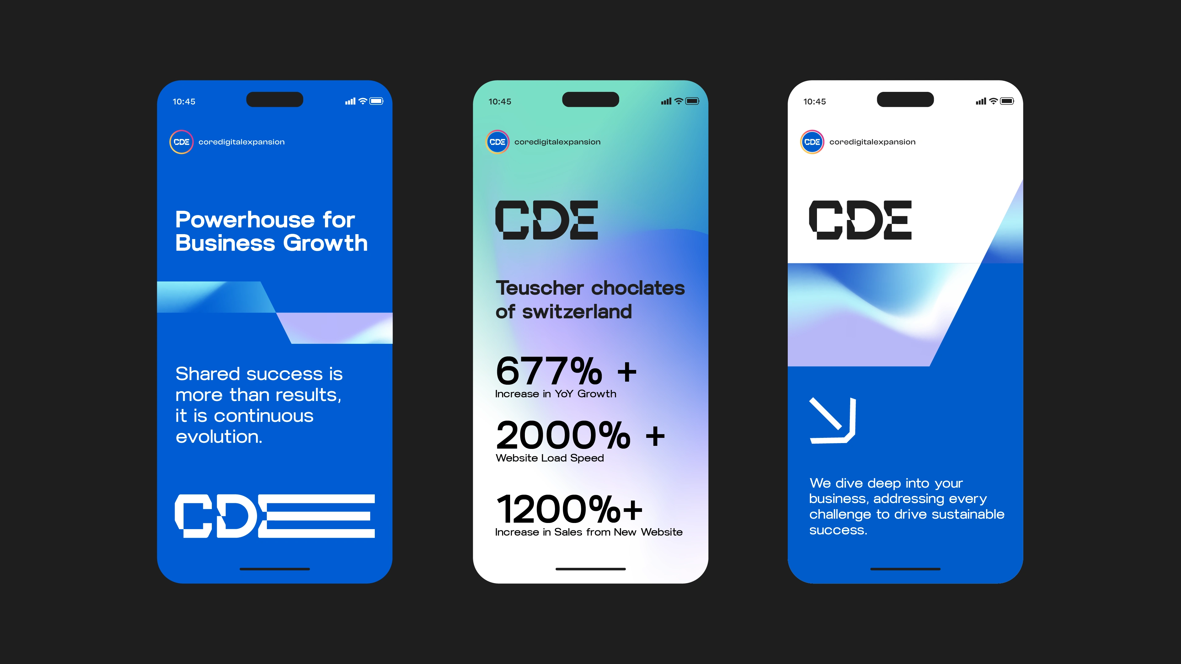 The result is a cohesive and flexible brand identity that reflects CDE’s holistic approach to growth, combining strategic thinking with a modern, performance-focused visual language.
