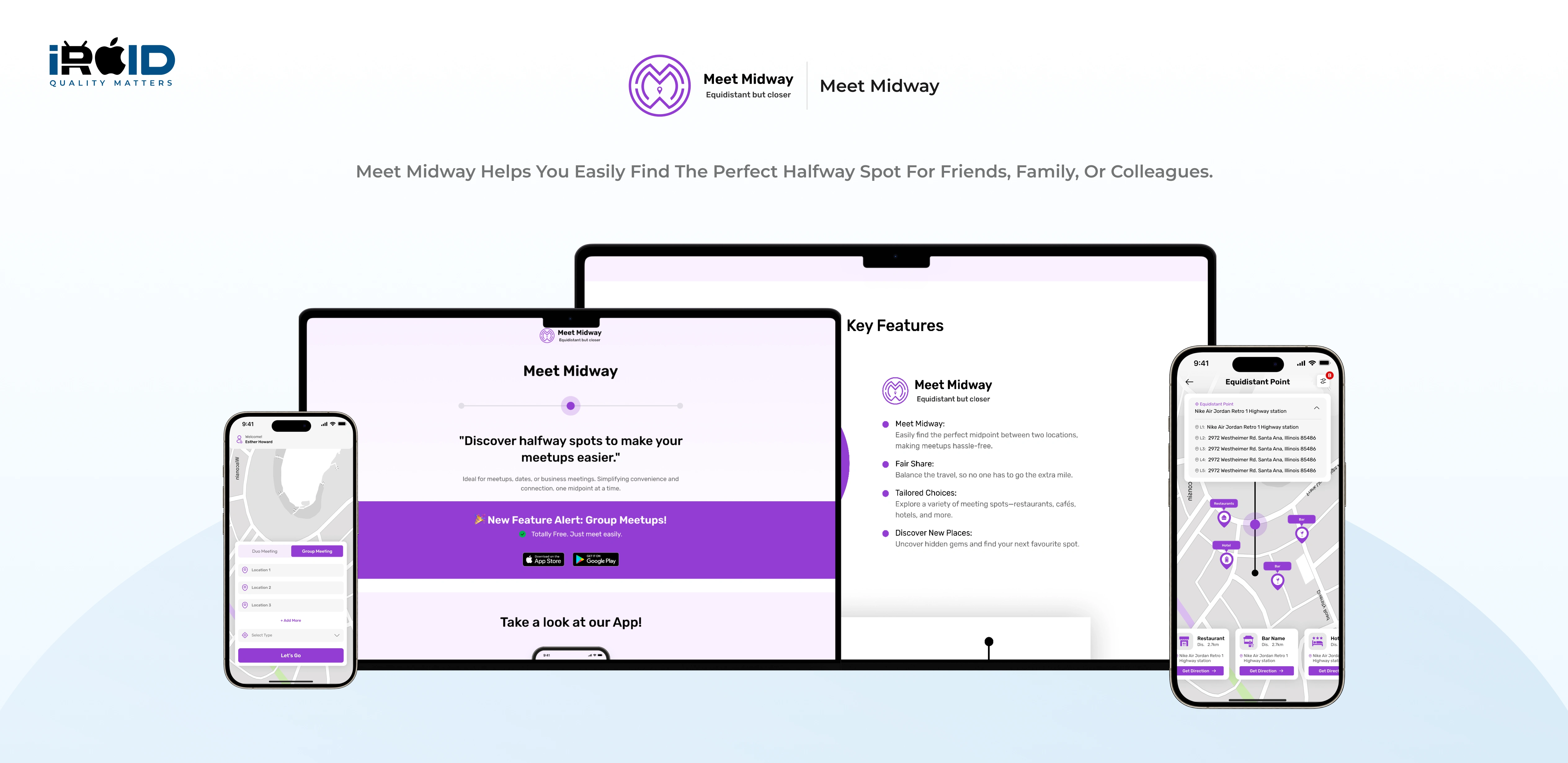 Meet Midway is an innovative solution designed to make meetings and gatherings easier and more convenient for everyone. Whether you plan to connect with friends, family, or colleagues, Meet Midway helps you find the right midway point to suit your needs. Simply select your respective locations and preferred interests, and the app instantly calculates the exact equidistant point and recommends ideal meeting places such as cafes, restaurants, or hotels, all optimized for convenience and accessibility.