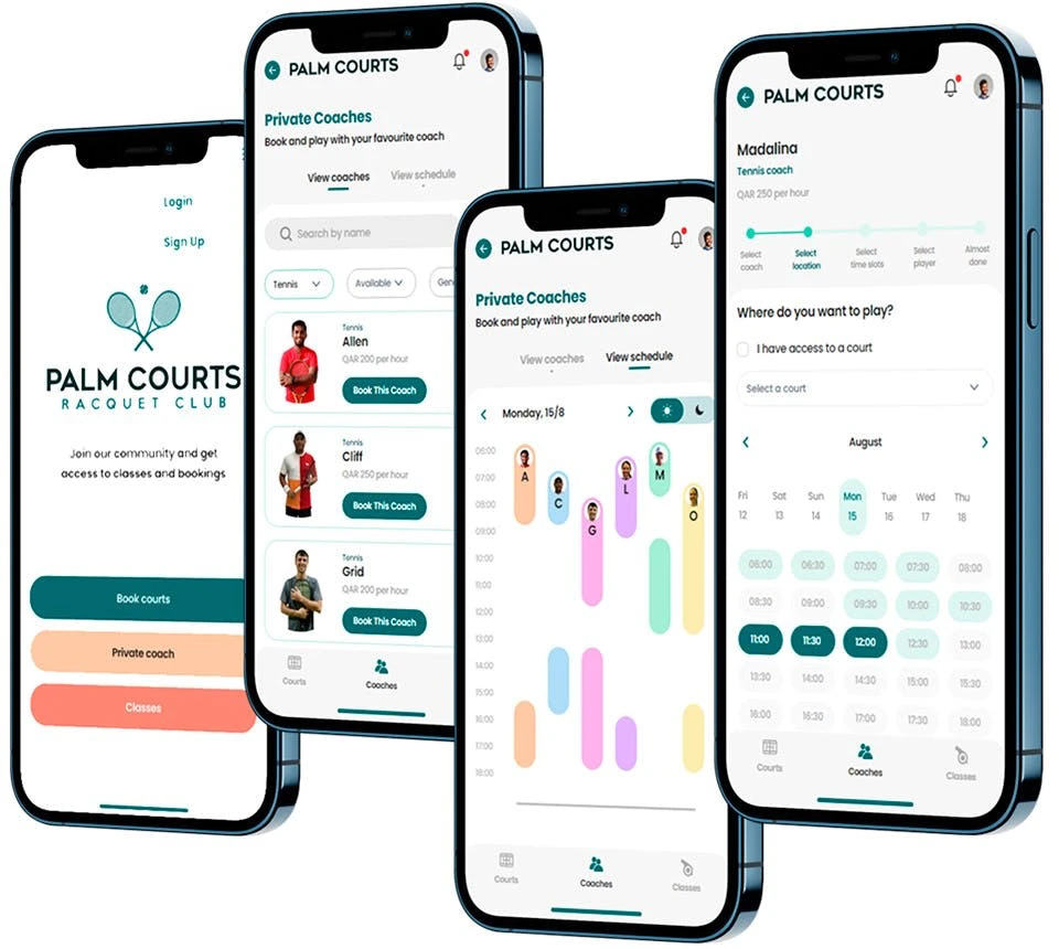 Dedicated booking application developed for the tennis and padel community in Doha, Qatar.