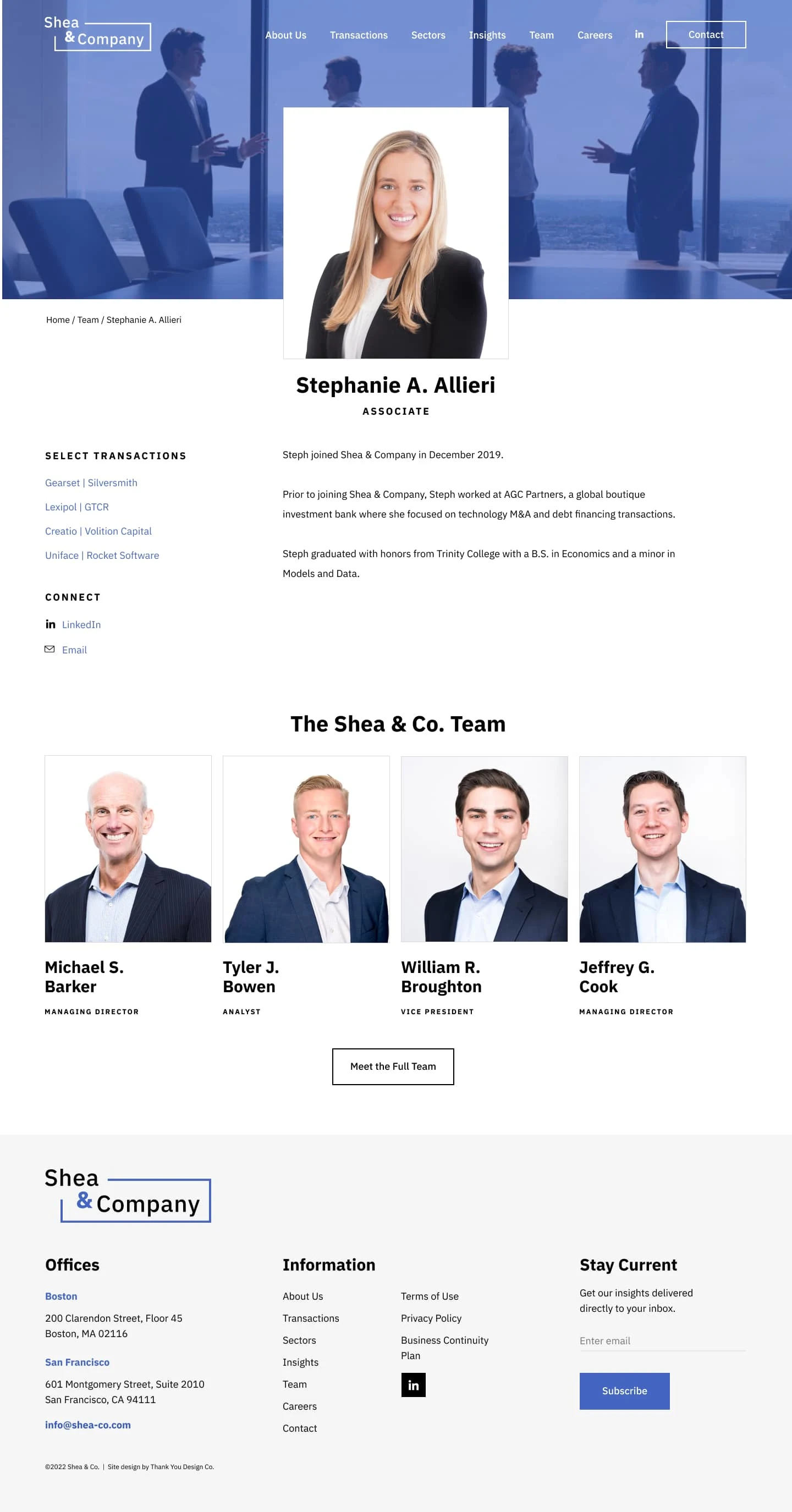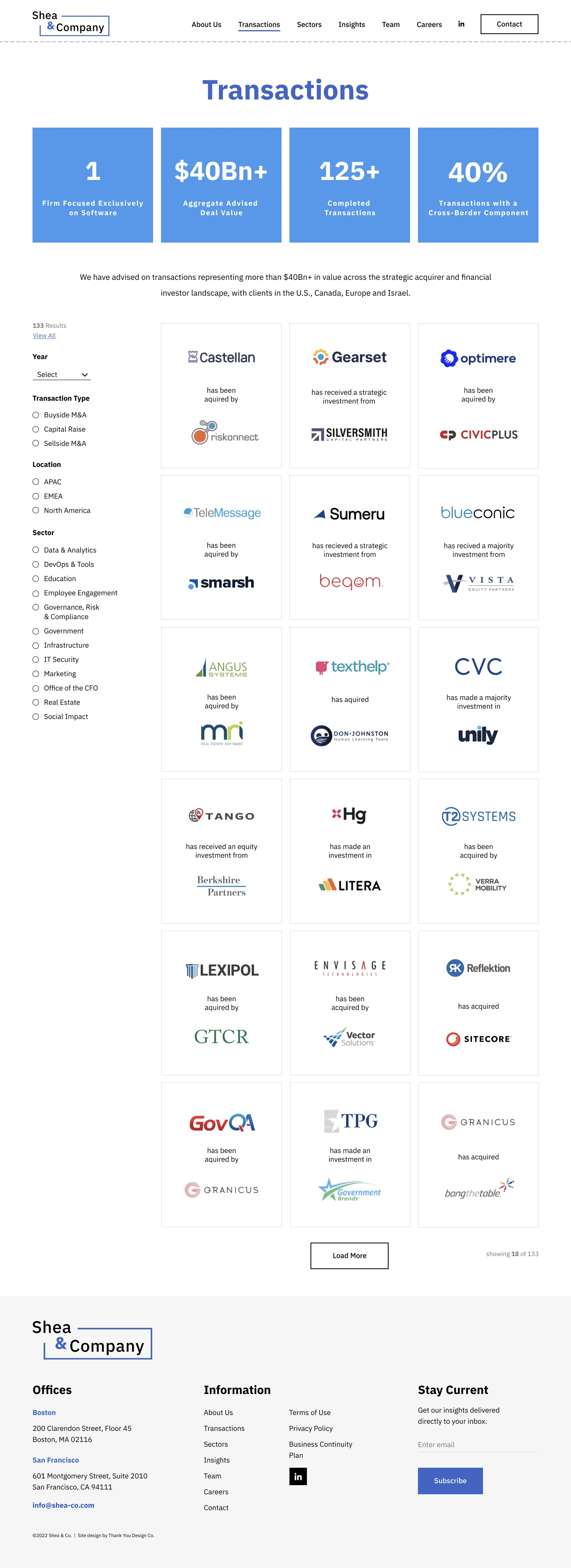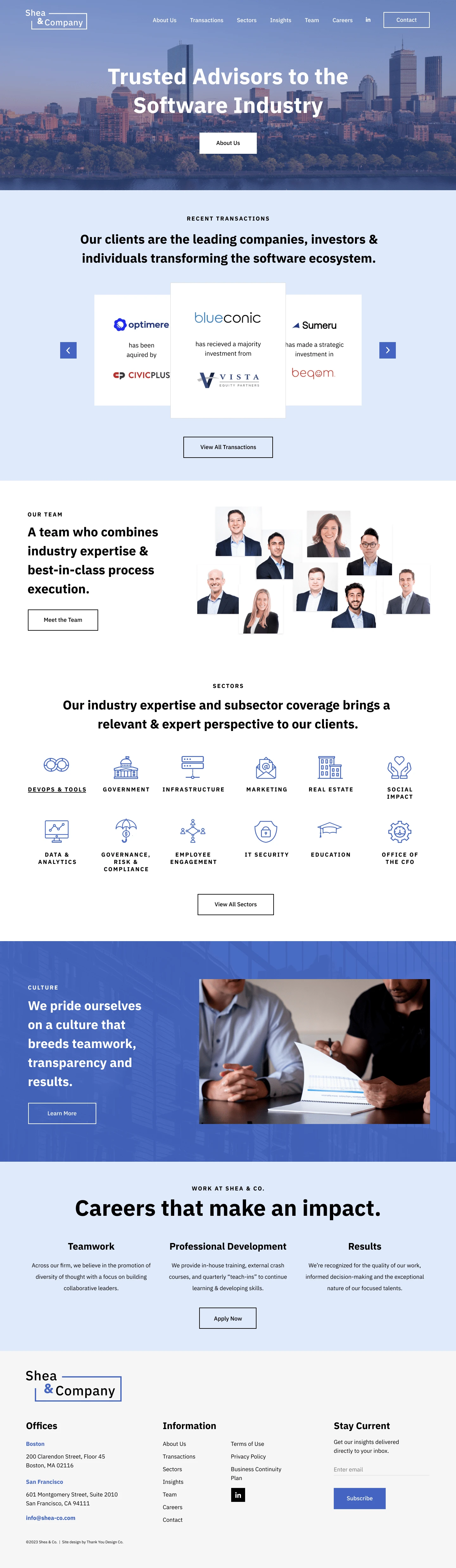 Shea & Company (member FINRA and SIPC) is a software-focused investment bank that believes focus underpins success, and success is measured by the outcomes they achieve with their clients.