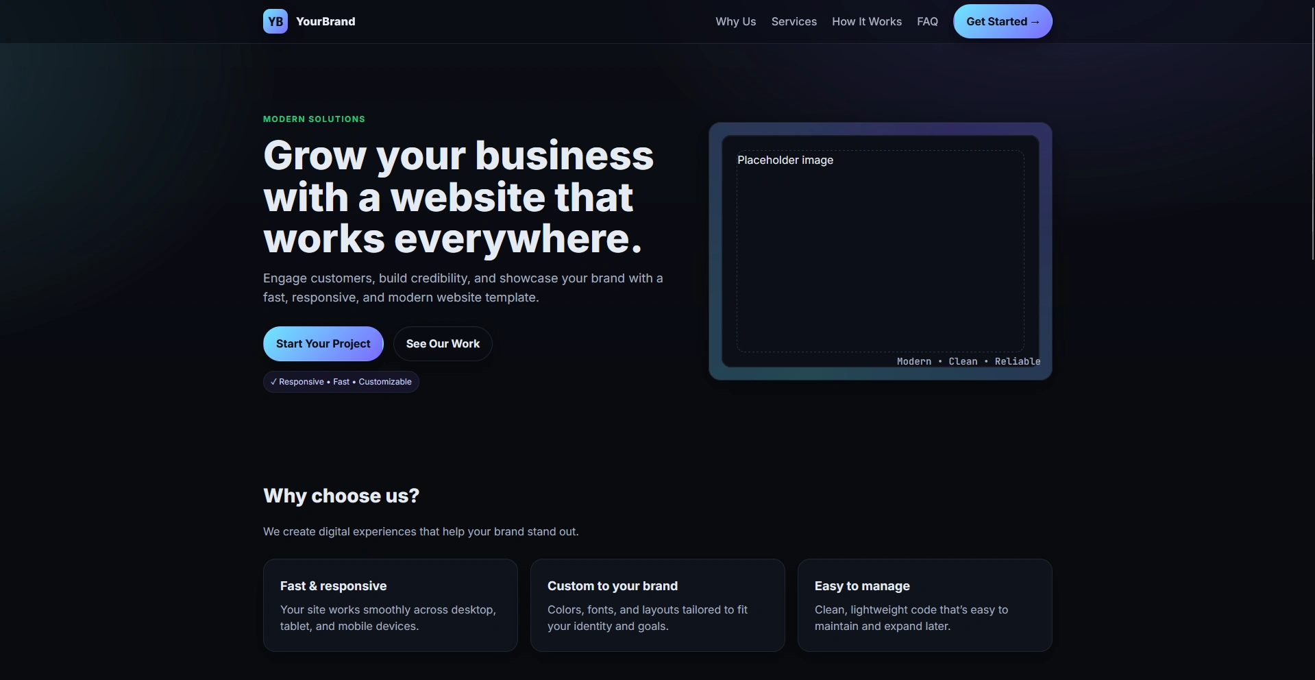 This project is a ready-to-use, multi-page front-end template built for small businesses and startups who want a professional web presence without the hassle. The template focuses on simplicity, flexibility, and a polished, responsive design that looks great across all devices.