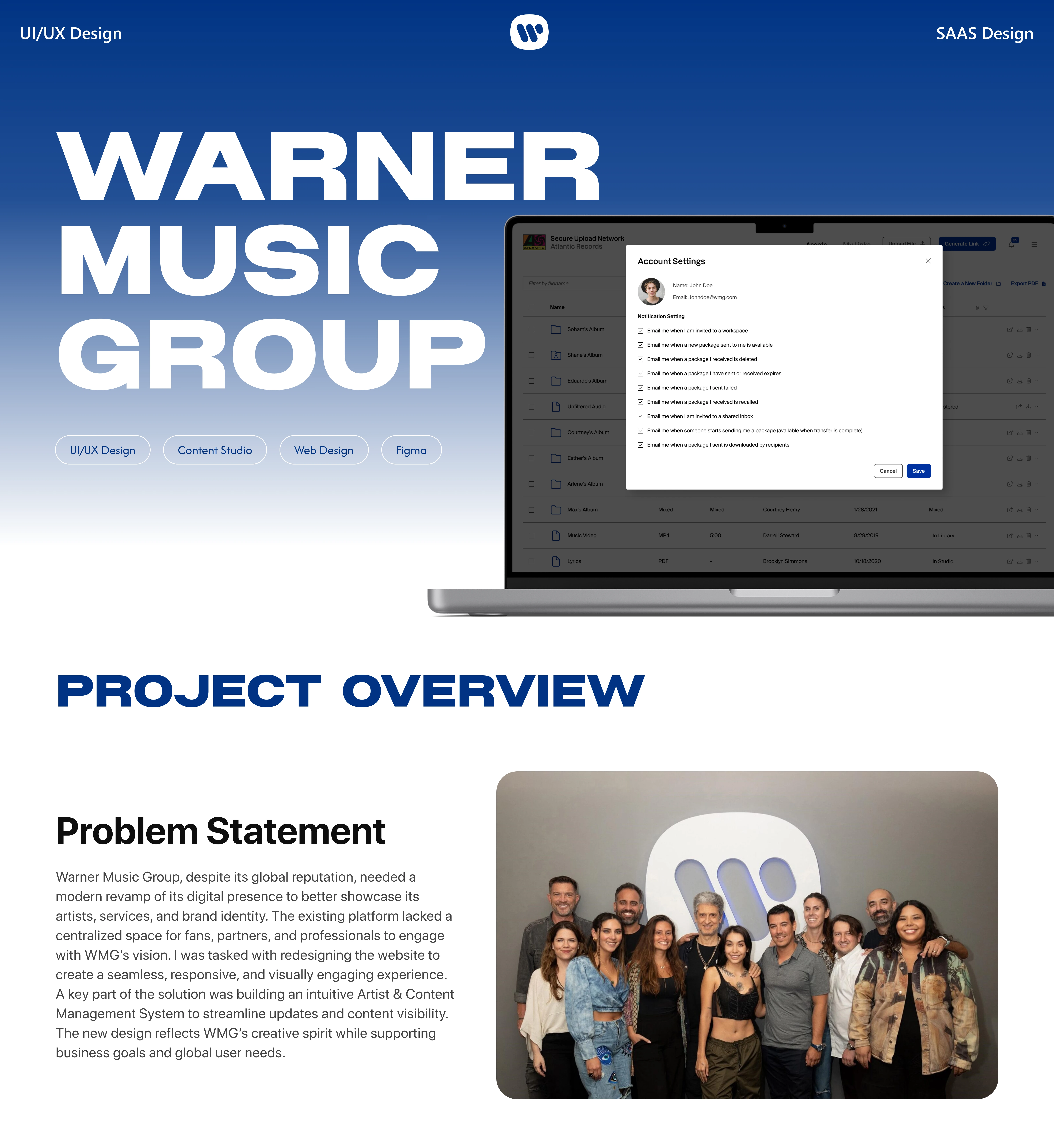 Redesigned WMG’s site with a modern look and custom CMS to enhance user experience, streamline content, and reflect its global creative vision.