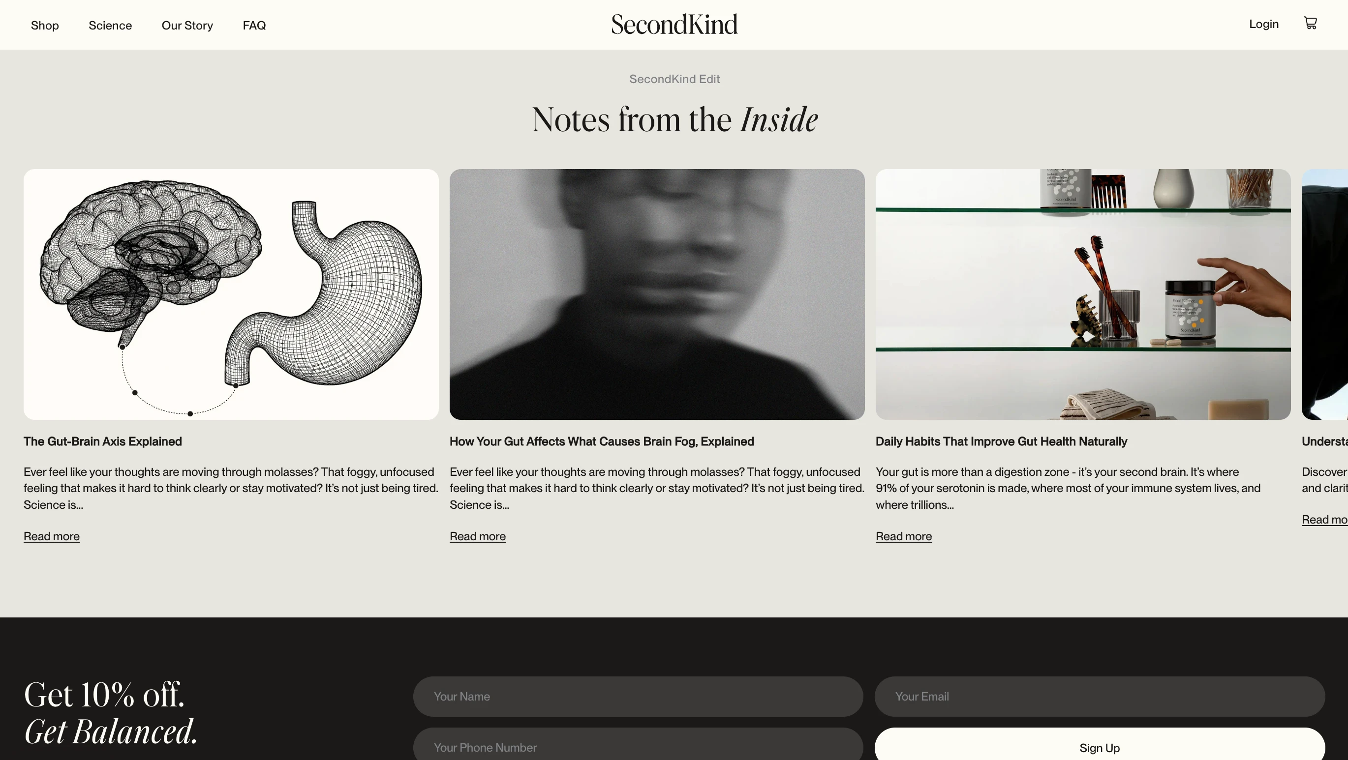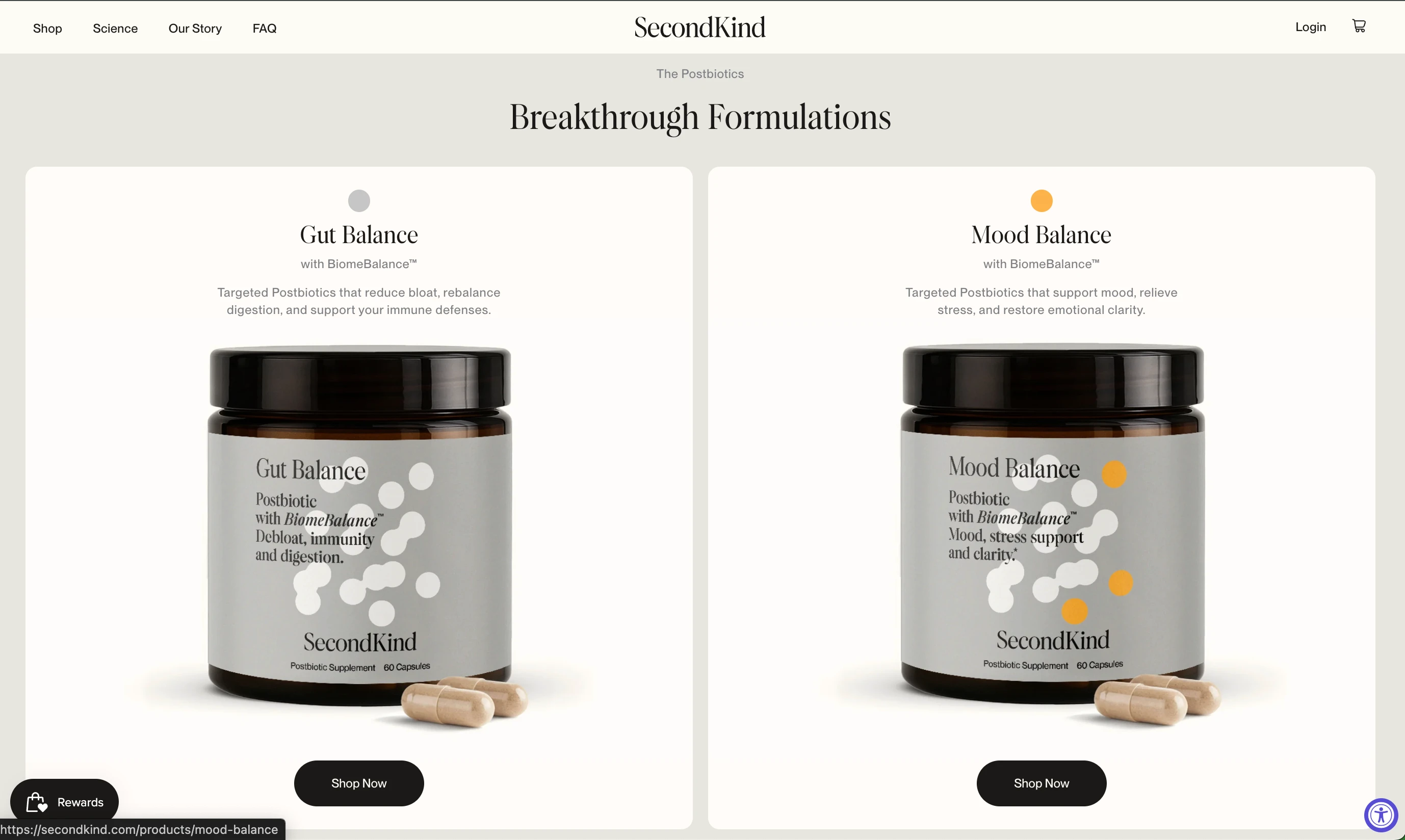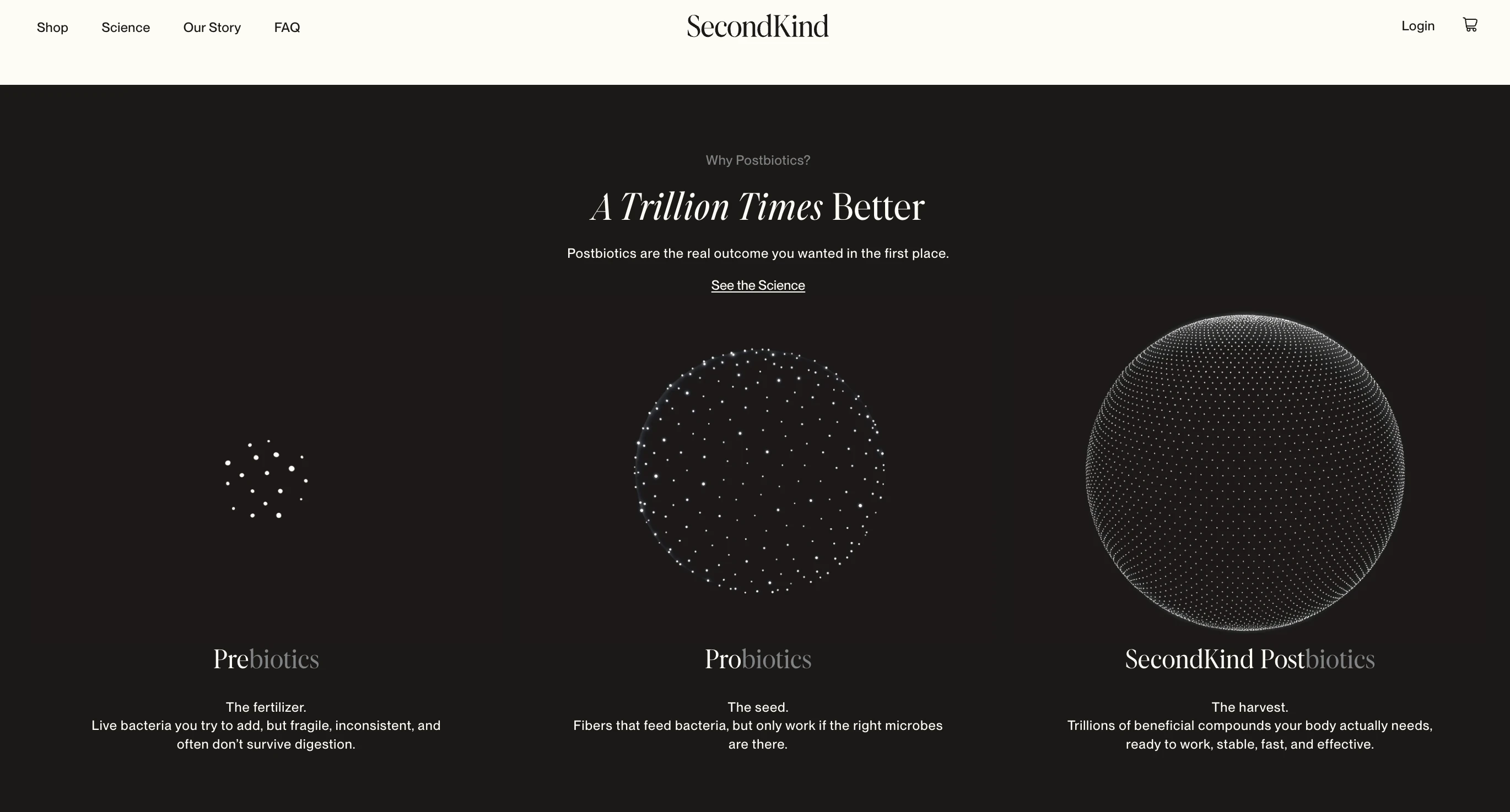 SecondKind is a science-backed wellness brand pioneering postbiotics — stable compounds your body actually uses, unlike fragile probiotics.