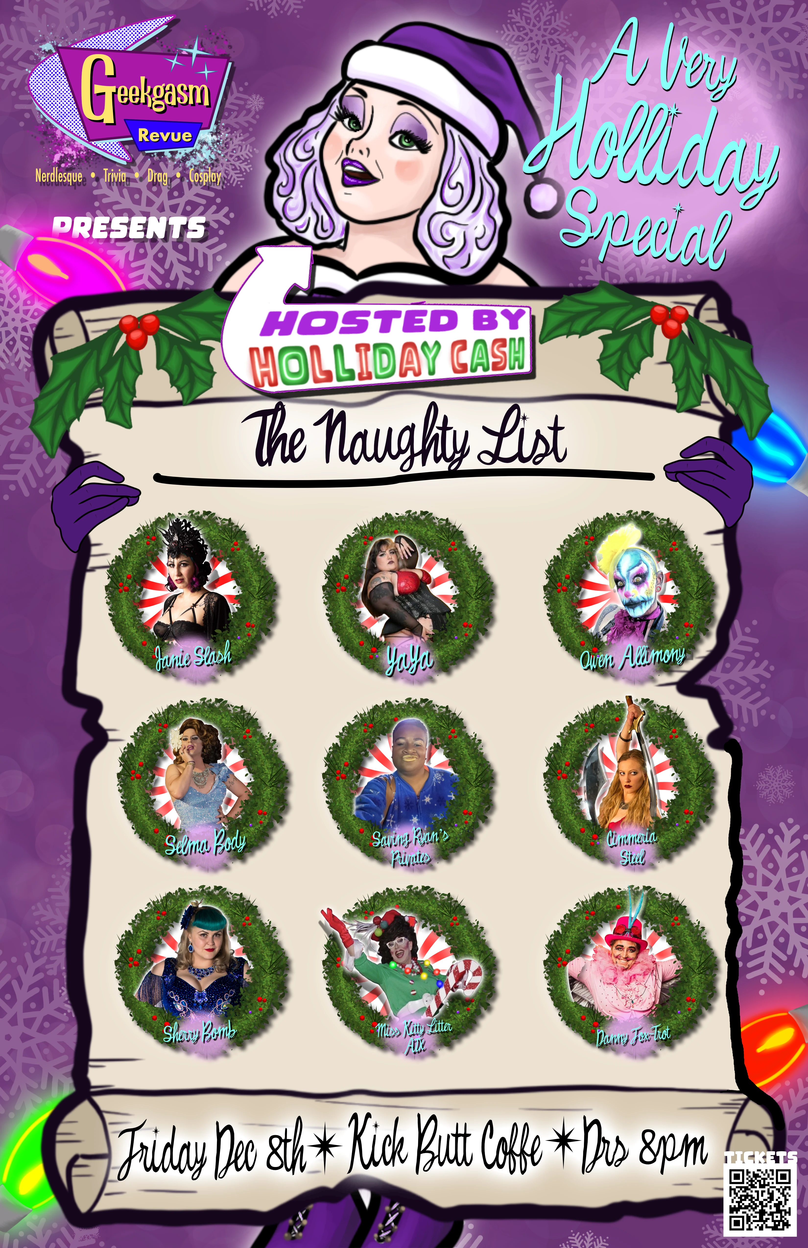 I've Contributed to Geekgasm Revue's rebranding efforts, designed merchandise, and crafted promotional assets for their shows across print and social media.