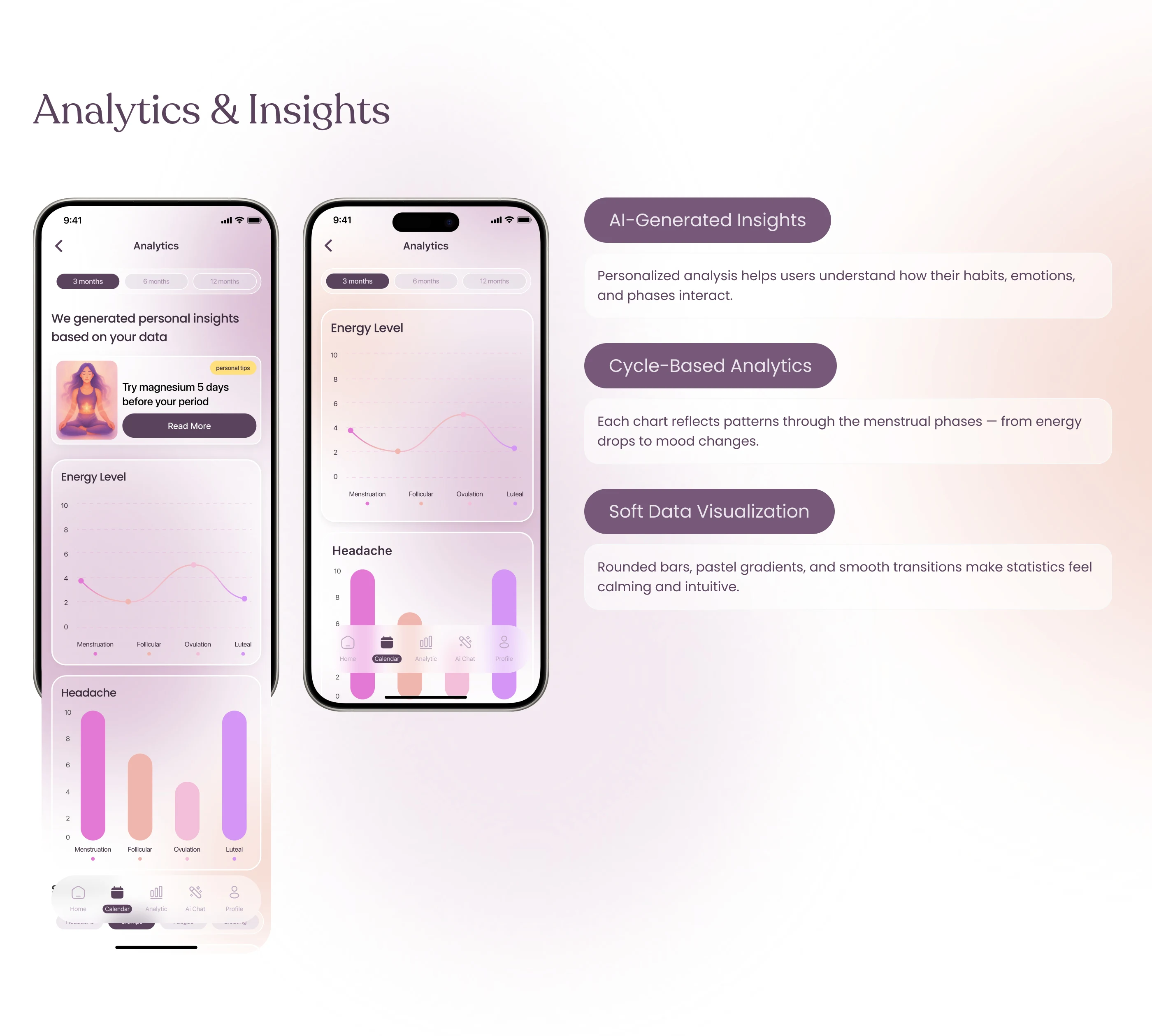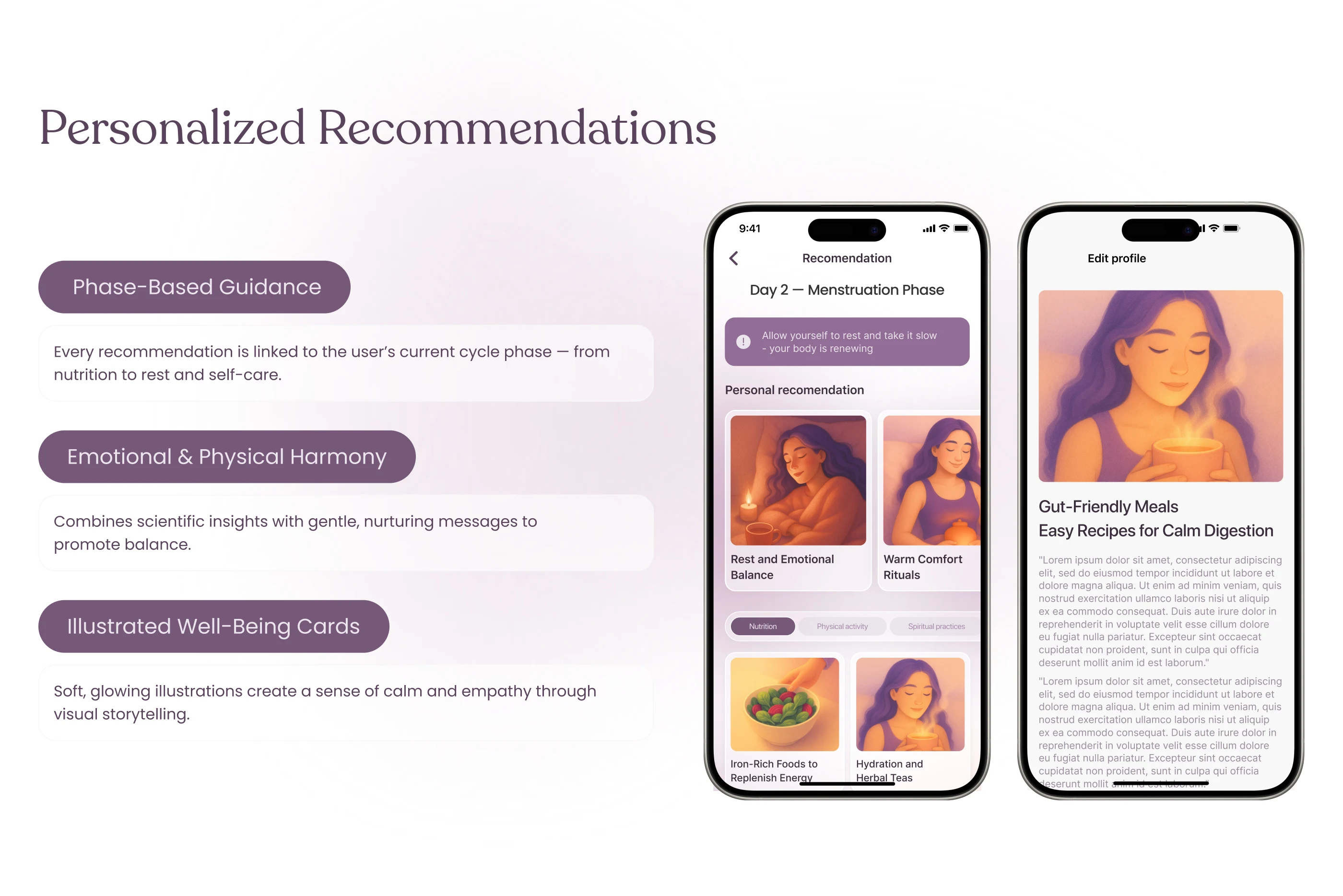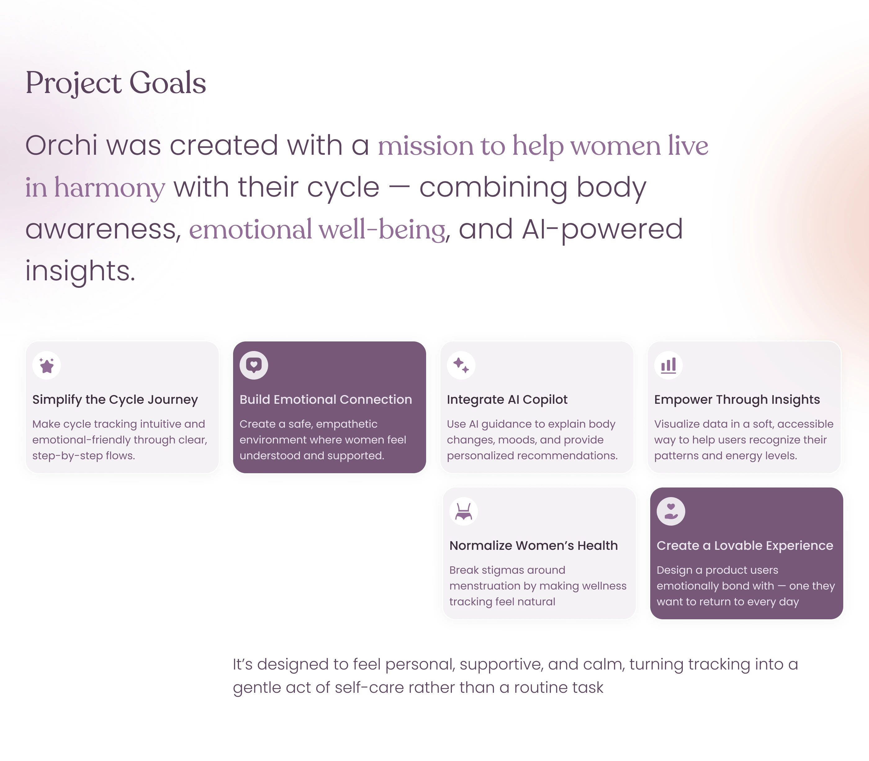 An AI-powered app that helps women understand their bodies and emotions through personalized insights into their menstrual cycles.