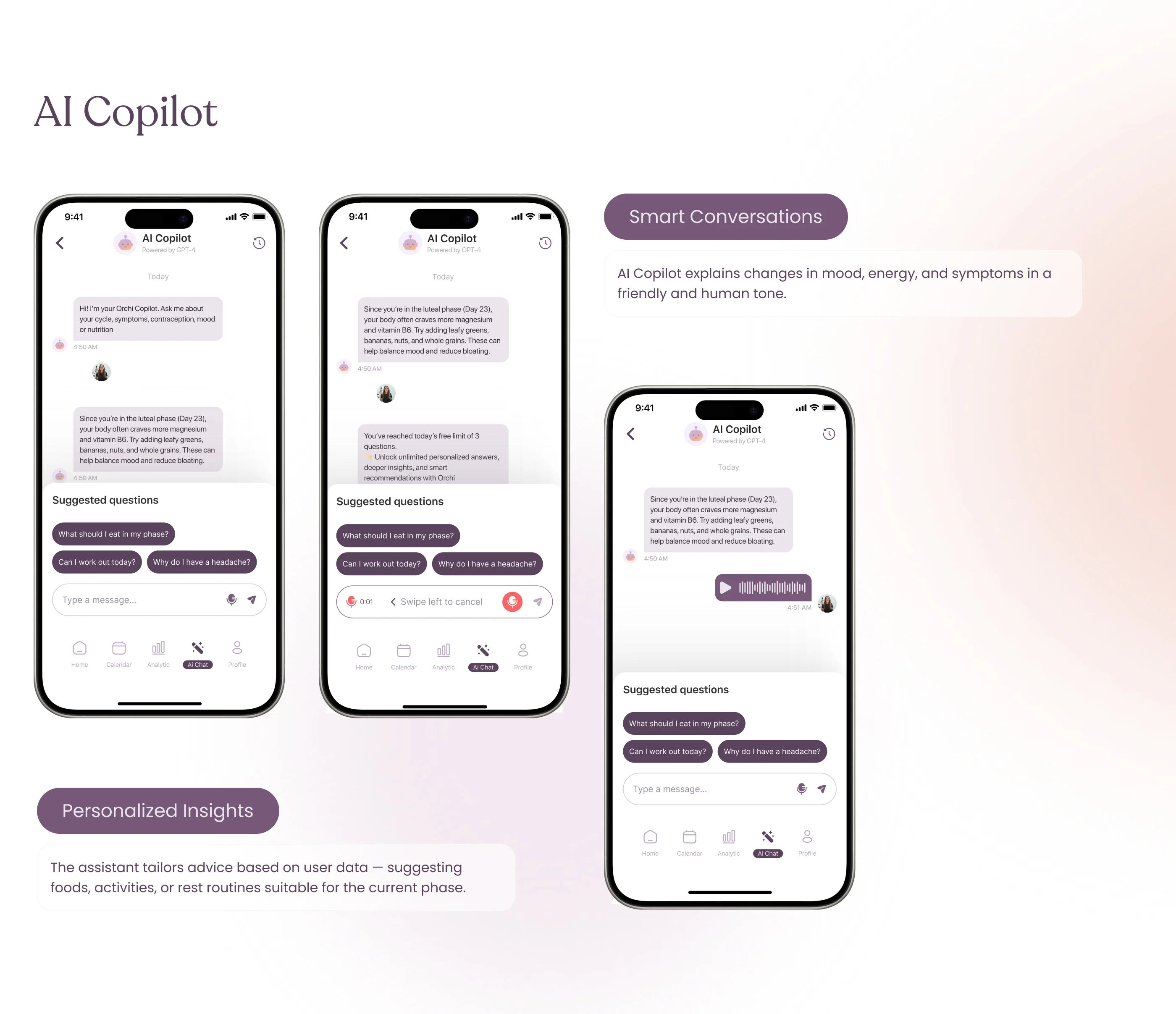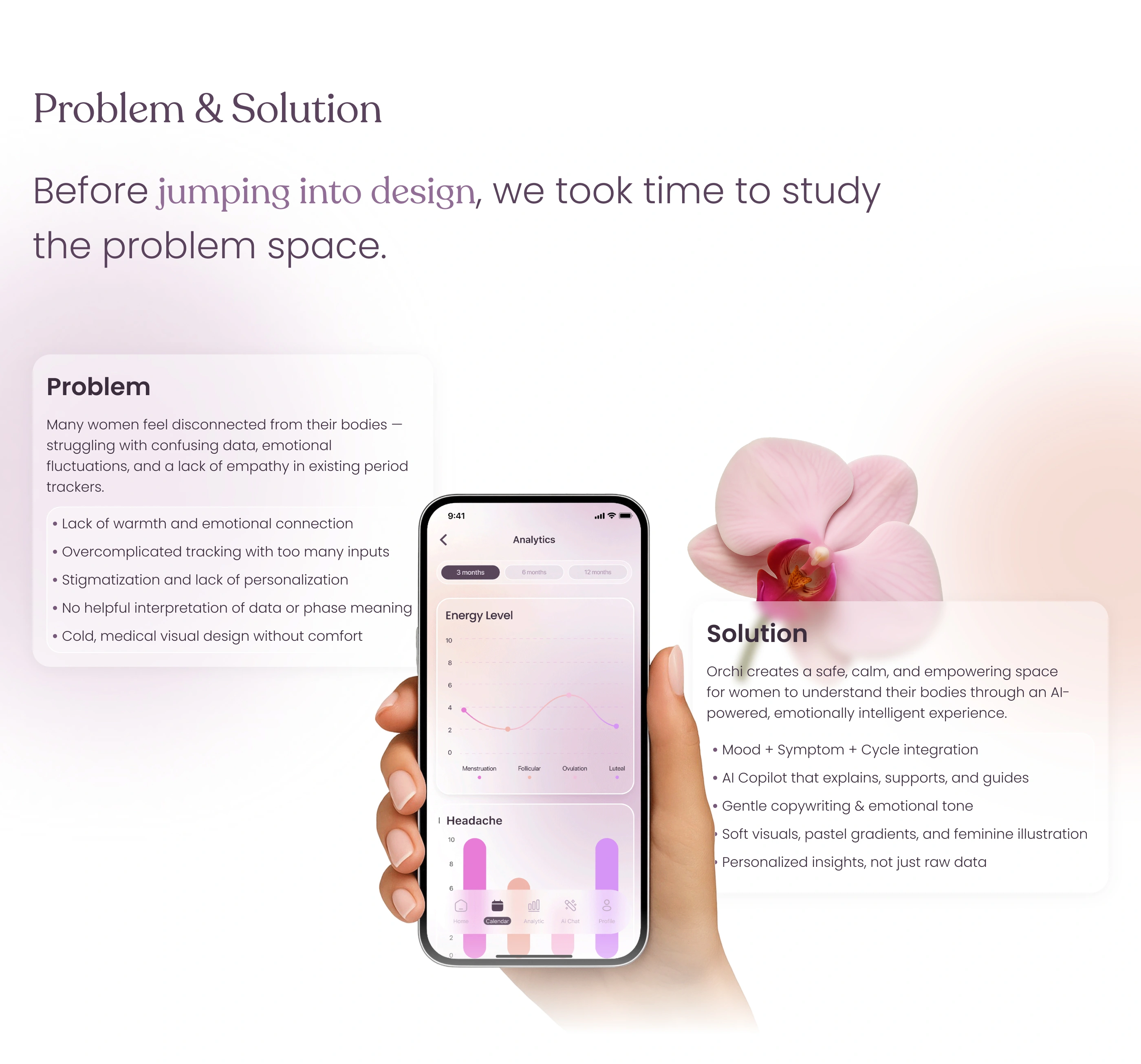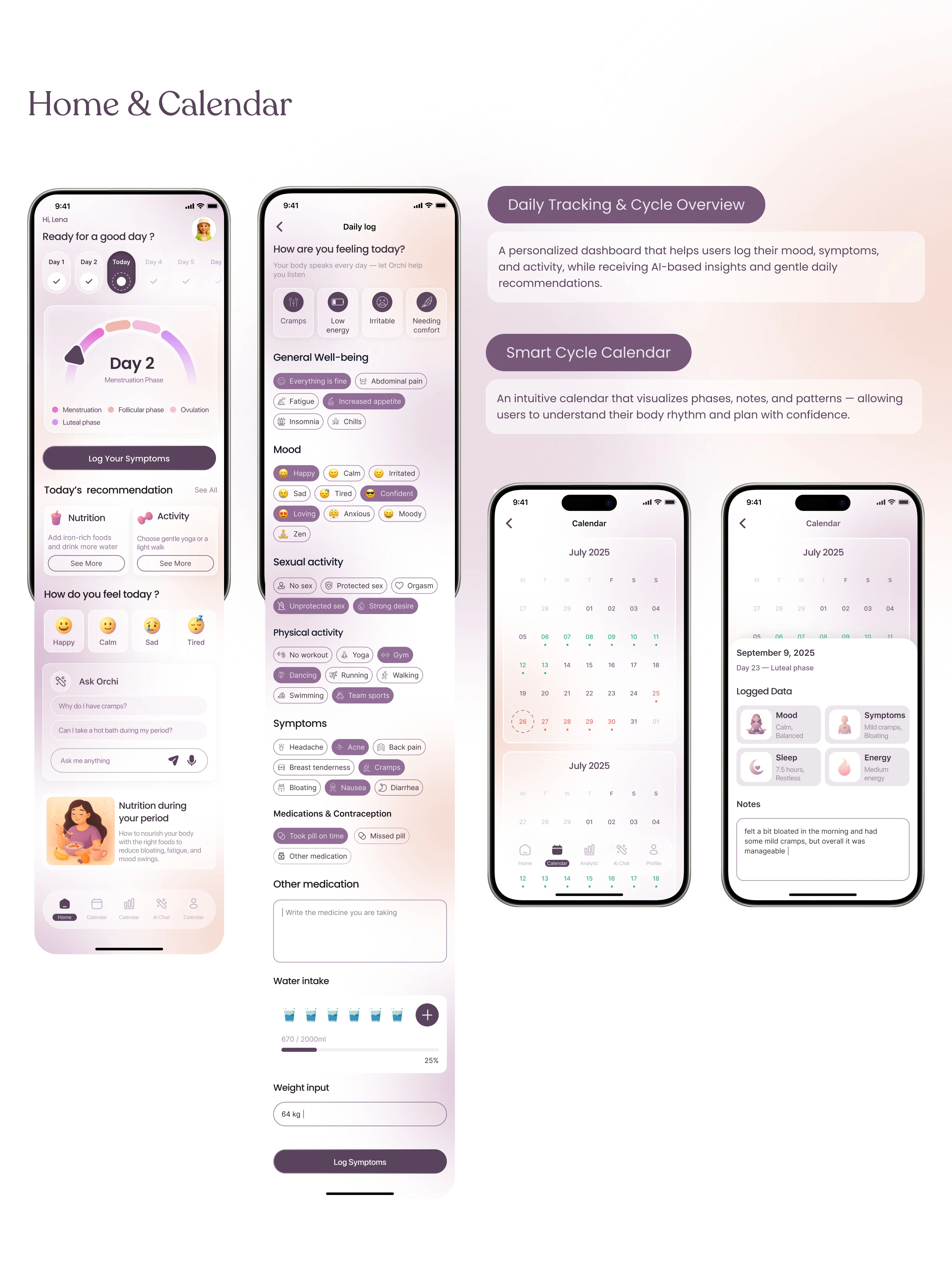 An AI-powered app that helps women understand their bodies and emotions through personalized insights into their menstrual cycles.