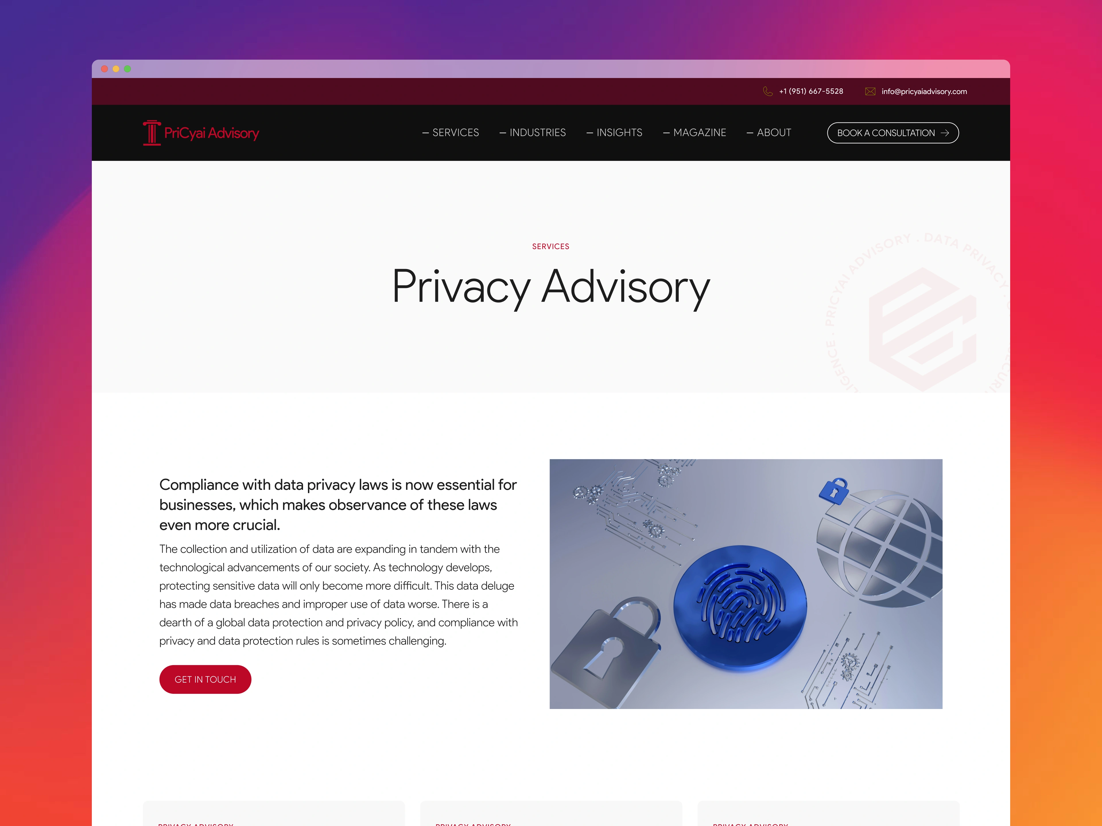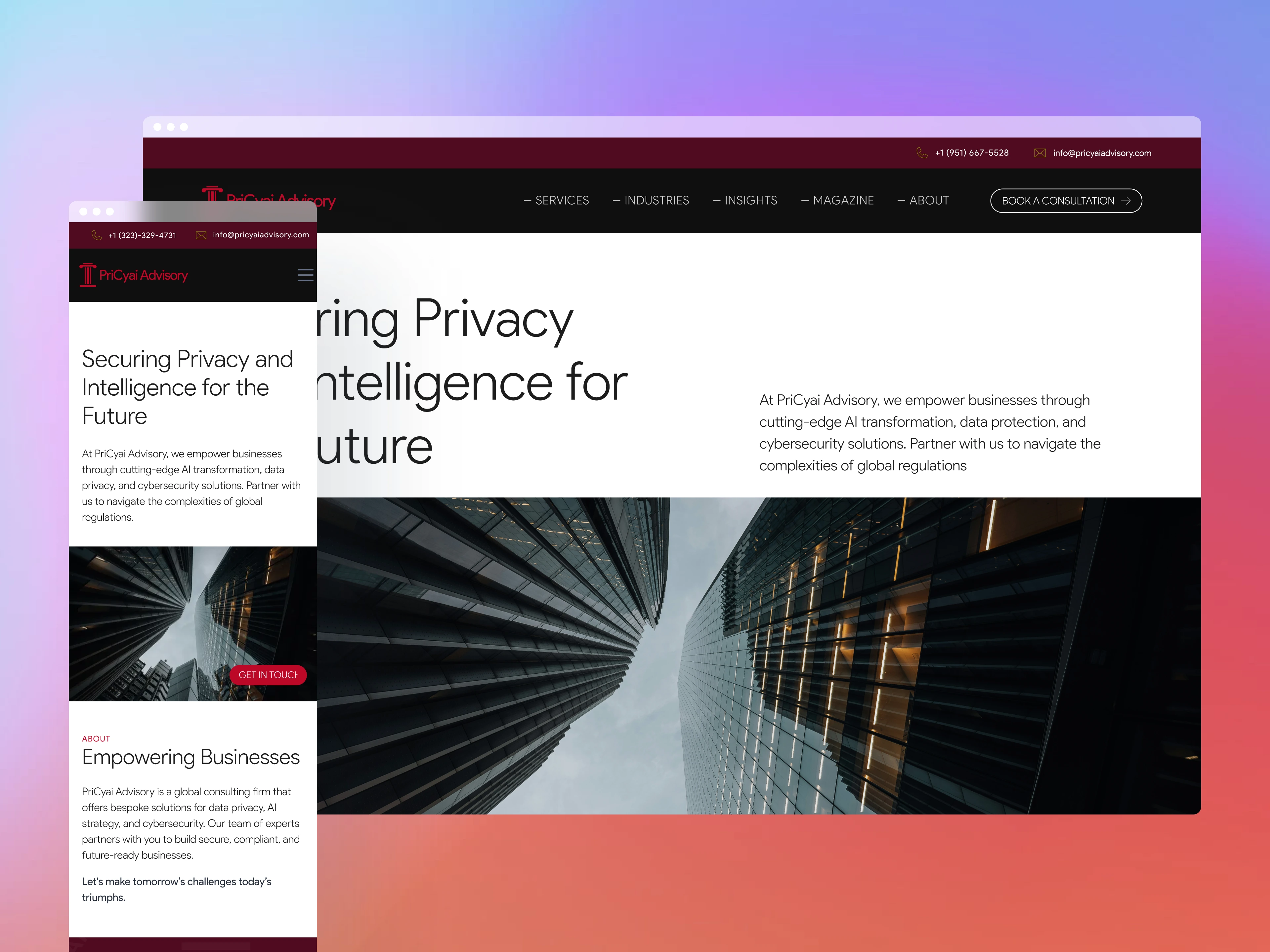 PricyAI Advisory provides AI transformation, data protection, and regulatory compliance solutions for businesses. The goal of this project was to design and develop a professional website that clearly communicates trust, expertise, and innovation.